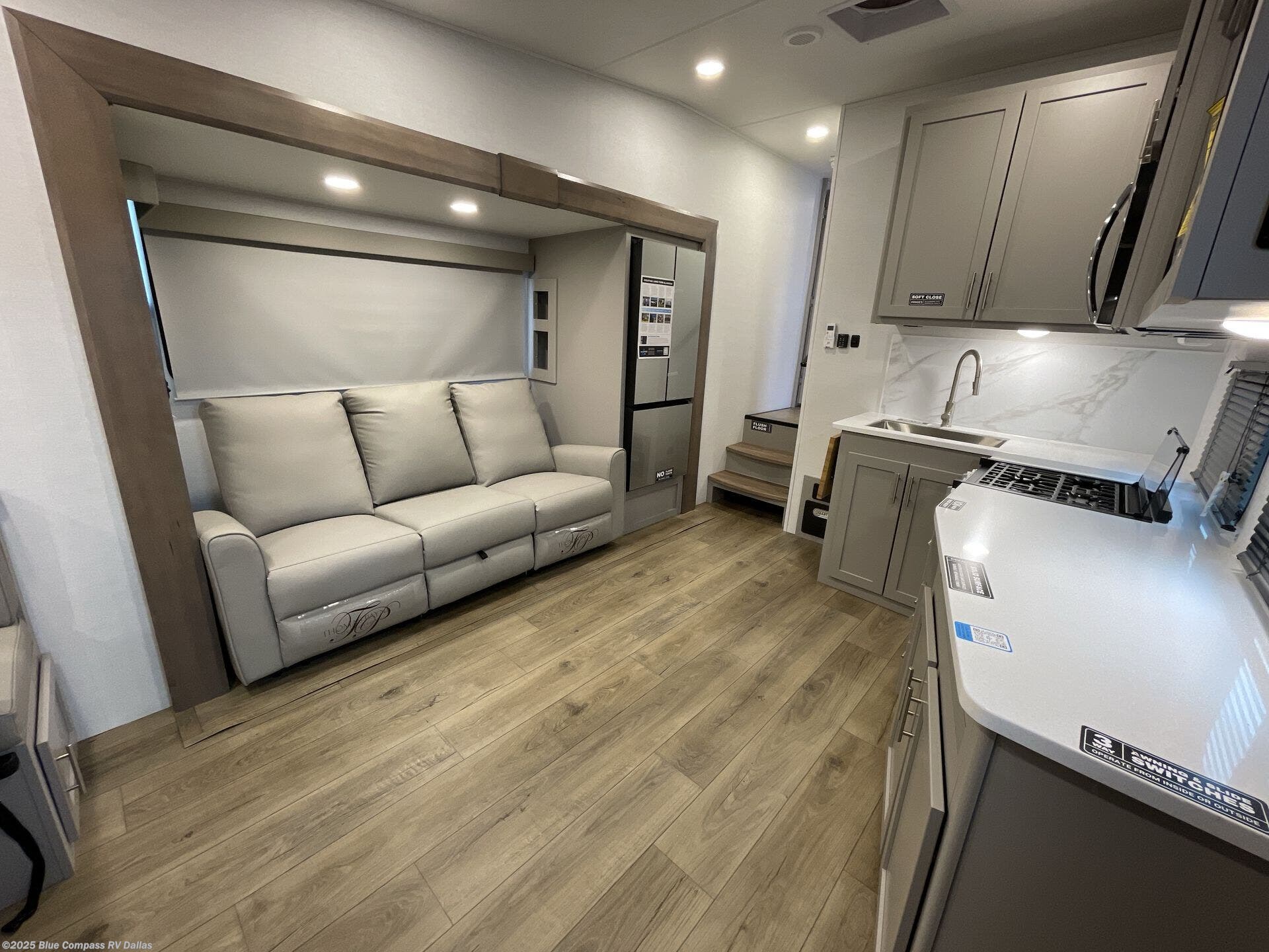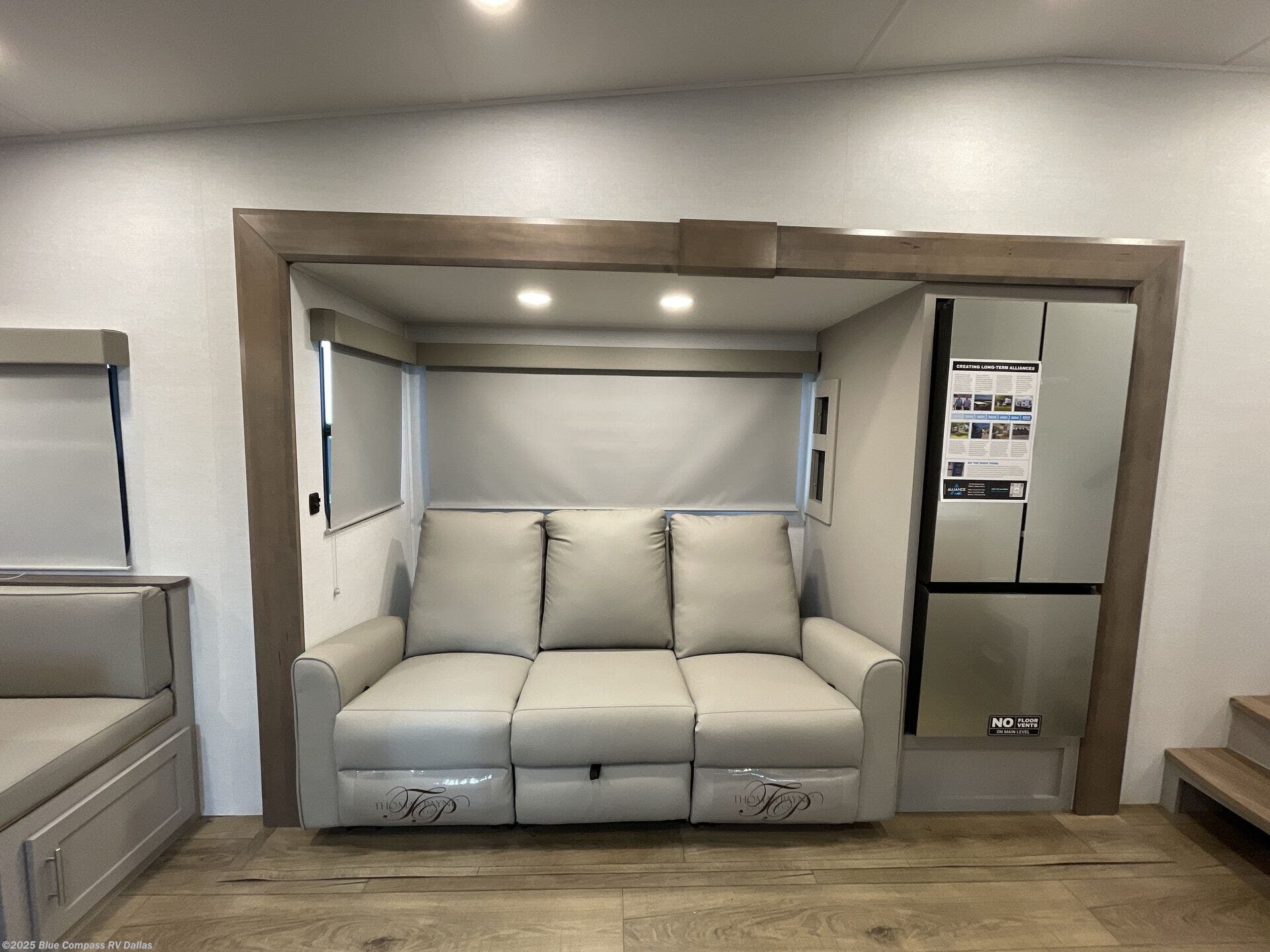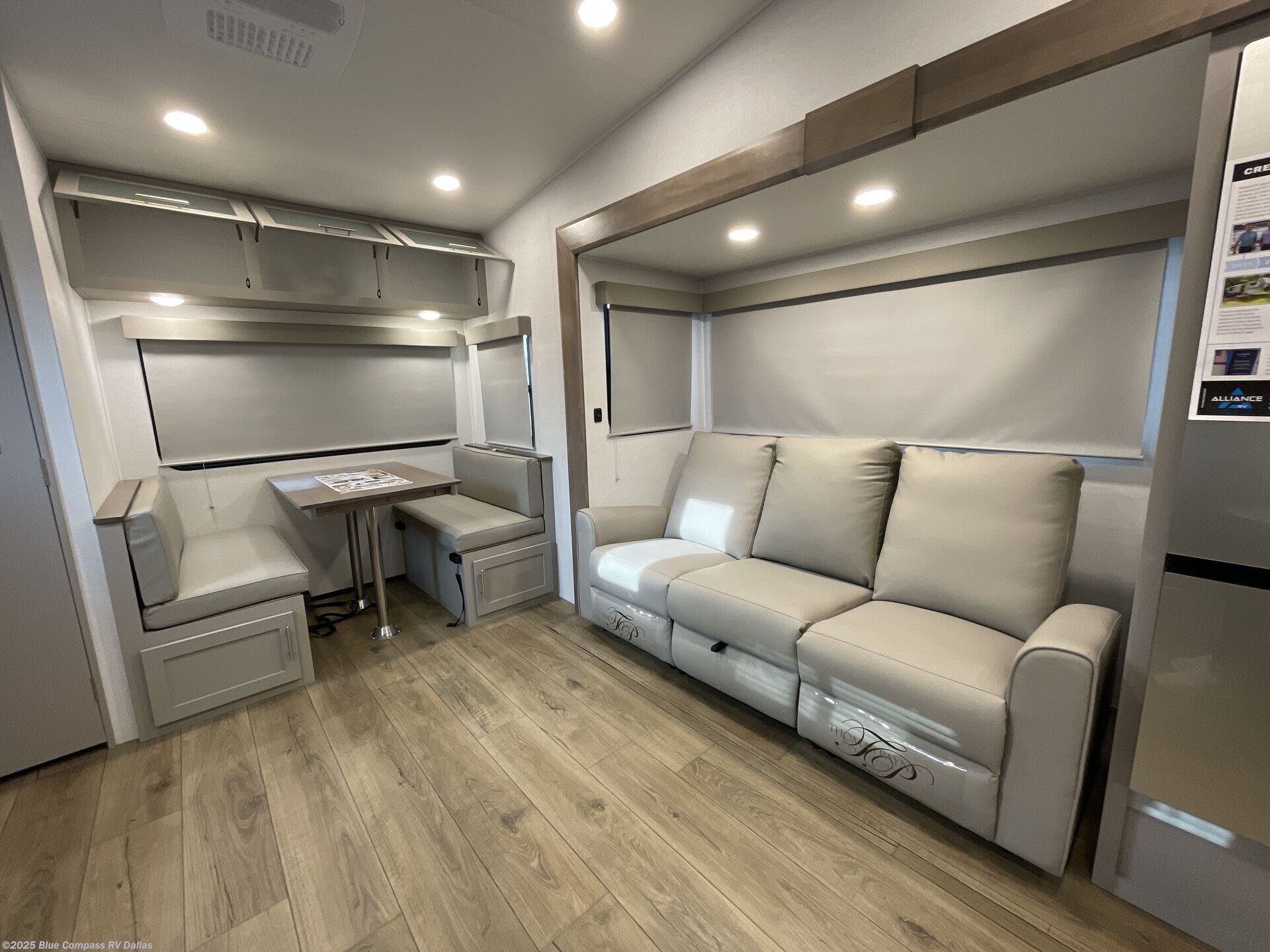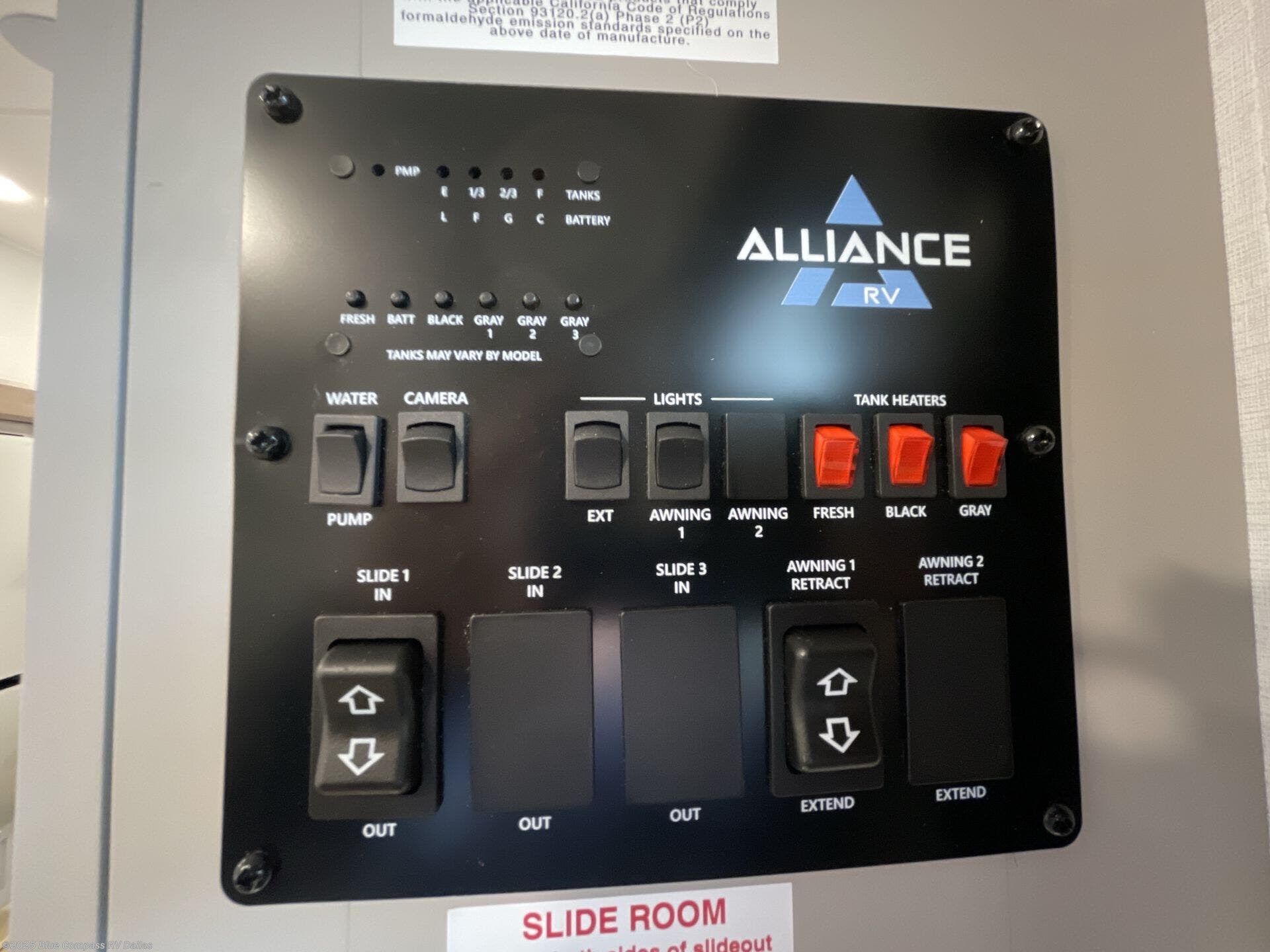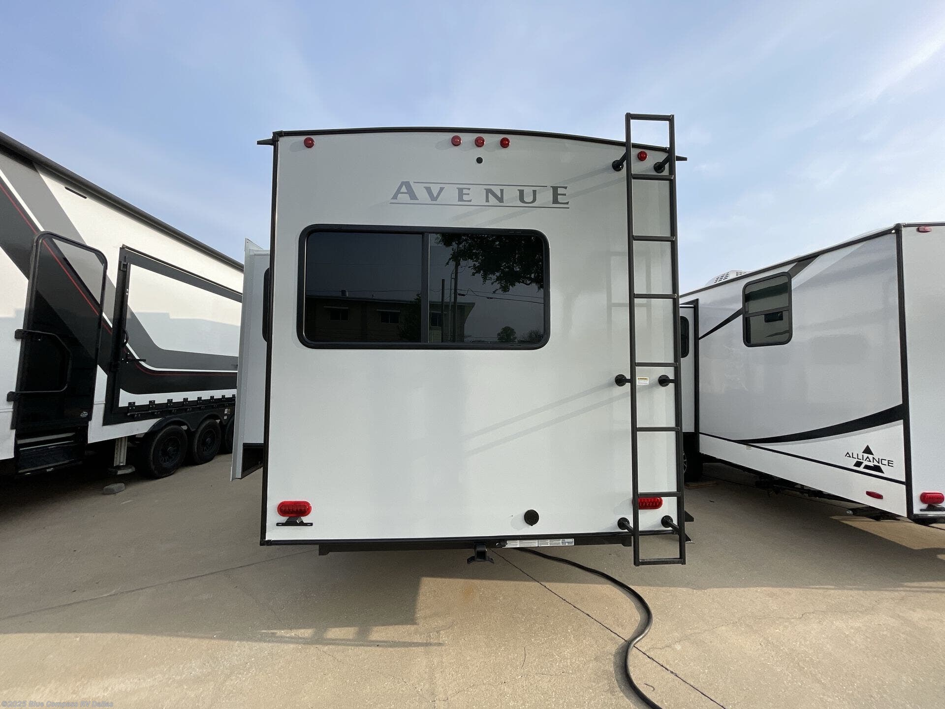 A benchmark chassis creates a space saver upper deck with each one of these Avenue All-Access fifth wheels by Alliance RV! The 101 in. wide-body construction gives you more room to walk around and the flush slide out floors throughout prevent any tripping. There are Azdel composite sidewalls inside and out, and a seamless fully walkable PVC roof for extreme durability and zero maintenance. You are sure to love the "no carpet zone" making each Avenue easy to clean and allergen free, not to mention pet friendly. You can maximize your space throughout with innovative storage solutions like the hidden storage behind the TV, inside the end tables, ottoman, and dinette chairs. These units also include the OTG Solar Package with a 200 watt solar panel, 15 amp MPPT charger, multiple outlets, and more to keep you powered up!