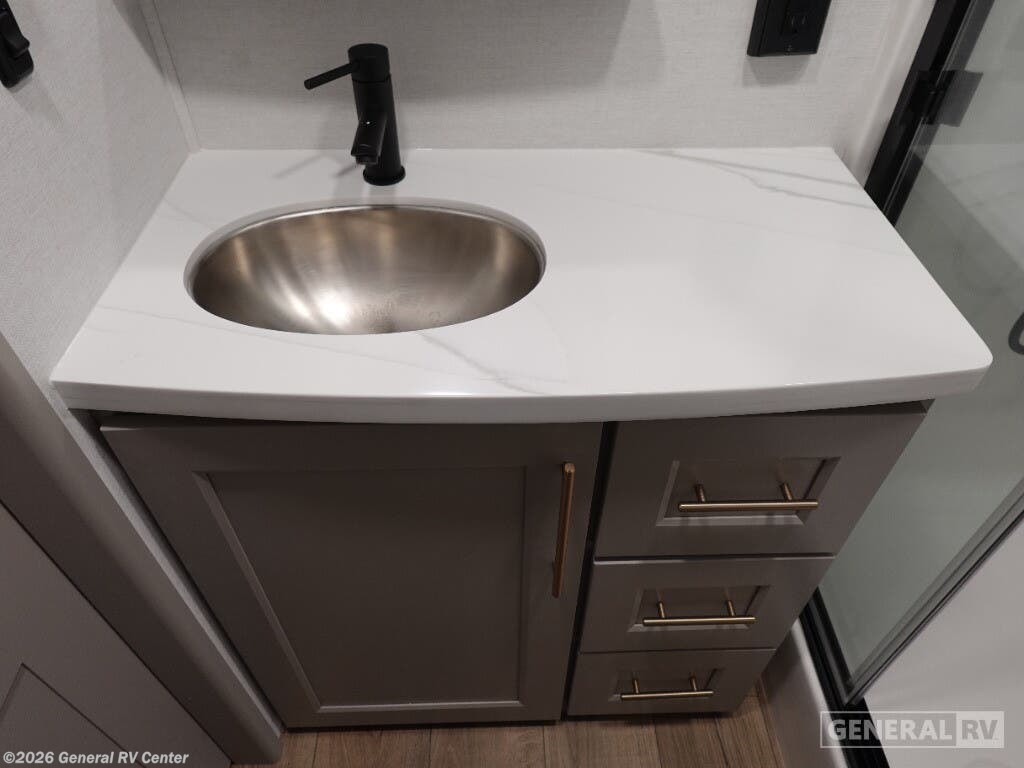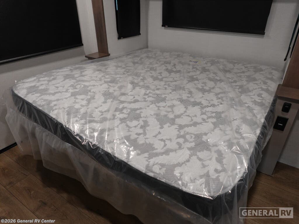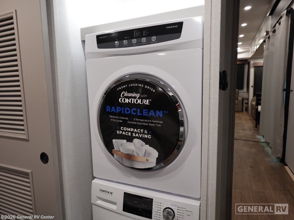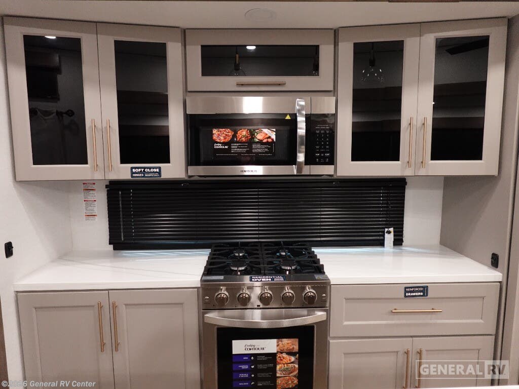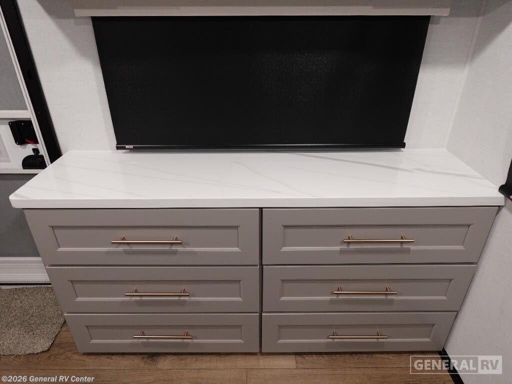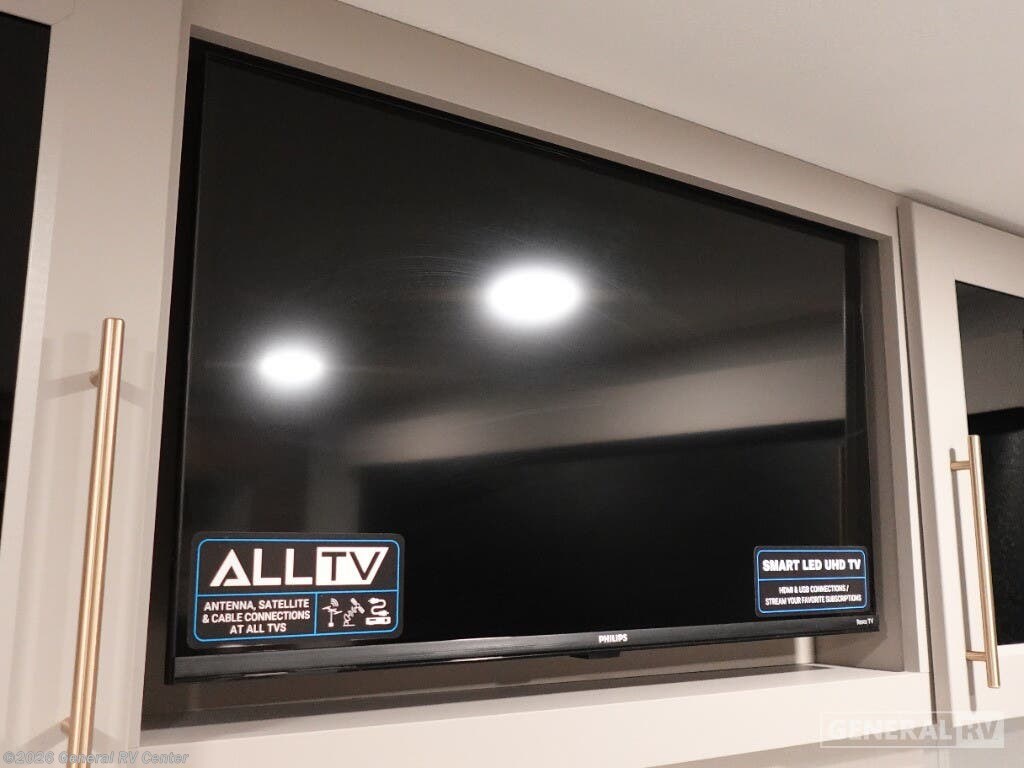Step into the future of luxurious travel with the 2025 Alliance RV Benchmark 42LFT. This stunning fifth wheel is designed for those who crave both adventure and comfort. With a spacious layout that can comfortably sleep six, it's perfect for family trips or entertaining friends. The front living area is a masterpiece of design, featuring dual recliner theater seating and a cozy fireplace, creating an inviting space to relax after a day of exploration. The central kitchen is equipped with a full-size electric refrigerator and a four-burner cooktop, ensuring you have everything you need to whip up a gourmet meal on the road. The Benchmark 42LFT doesn't just offer style; it delivers on functionality too. The rear bedroom boasts a king-sized bed with a power-tilting feature, ensuring restful nights wherever you park. Above, the loft area provides additional sleeping space with bunks, making it ideal for kids or guests. Convenience is at the heart of this design, with features like a washer/dryer and a 22 ft. powered retractable awning for outdoor enjoyment. With ample fresh, gray, and black water capacities, you can venture off the beaten path with confidence. Visit your nearest General RV dealership to explore this remarkable RV in person and start your journey today!