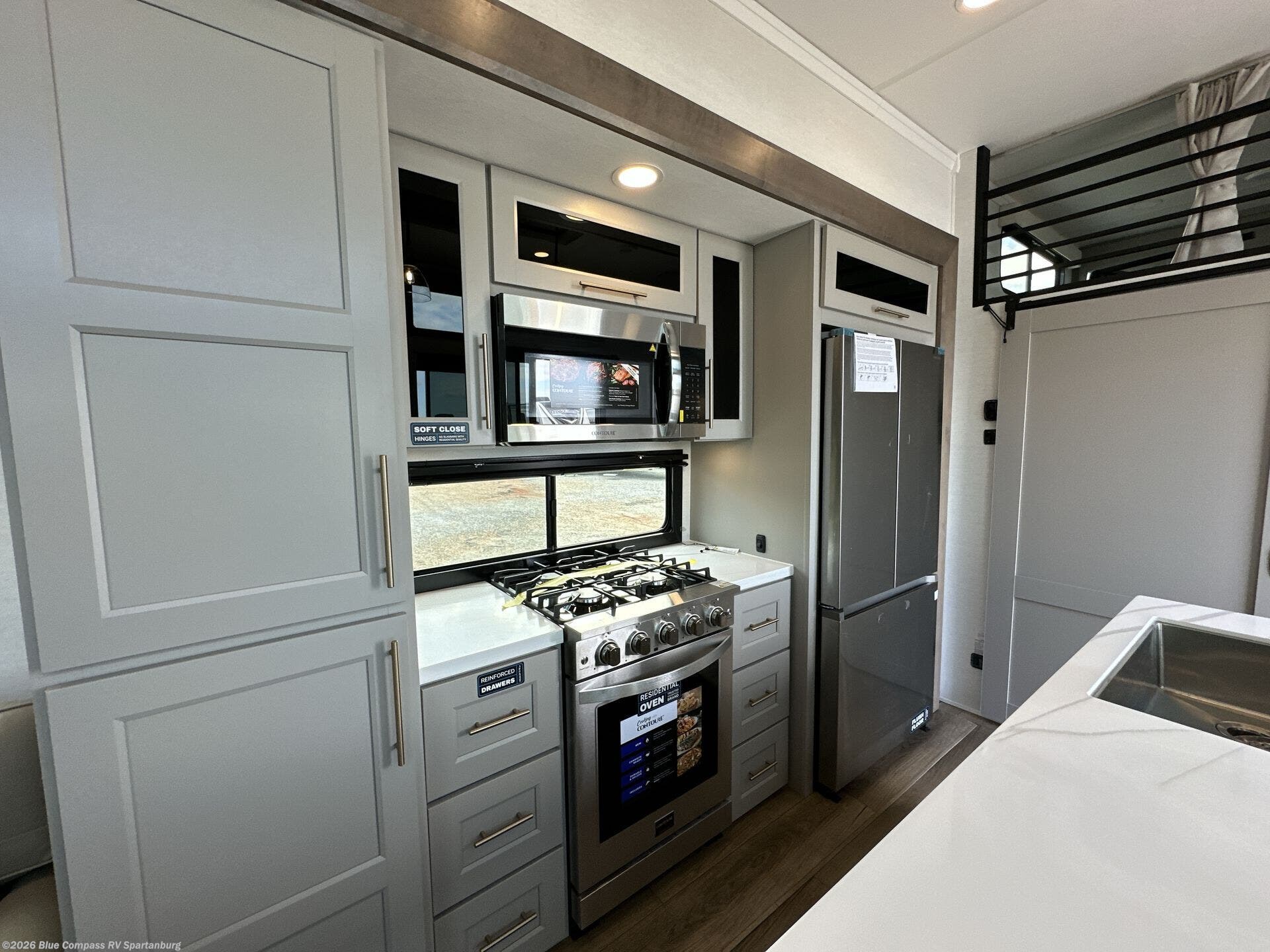 With any Benchmark destination trailer by Alliance RV, you will enjoy luxury features at every turn! The high gloss fiberglass exterior is ultra sleek, and the Azdel composite fiberglass sidewalls add durability so you can camp for years to come. You'll also find a residential exterior garden hose connection outside, along with a powder coated aluminum rear ladder, and an auxiliary LP tank hook up if you want to bring your grill along. Head inside to find hardwood cabinetry, solid surface countertops throughout, oversized windows in all rooms, and MCD roller shades throughout. The 45,000 BTU A/C and 60,000 BTU furnace will keep you comfortable year around, and there is a stackable washer and dryer to make full-time RV living easier than ever!