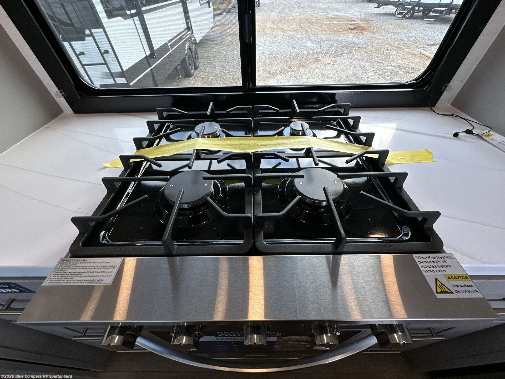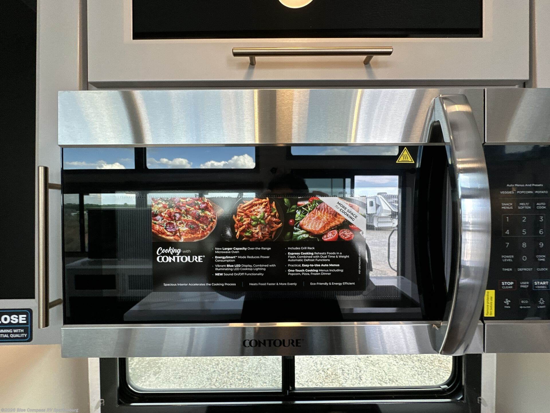 With any Benchmark destination trailer by Alliance RV, you will enjoy luxury features at every turn! The high gloss fiberglass exterior is ultra sleek, and the Azdel composite fiberglass sidewalls add durability so you can camp for years to come. You'll also find a residential exterior garden hose connection outside, along with a powder coated aluminum rear ladder, and an auxiliary LP tank hook up if you want to bring your grill along. Head inside to find hardwood cabinetry, solid surface countertops throughout, oversized windows in all rooms, and MCD roller shades throughout. The 45,000 BTU A/C and 60,000 BTU furnace will keep you comfortable year around, and there is a stackable washer and dryer to make full-time RV living easier than ever!