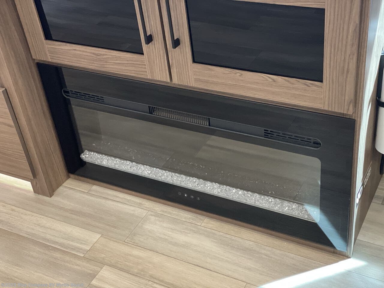 Grab your hiking boots and your sense of adventure for fun camping trips in this single slide out travel trailer. The rear booth dinette includes overhead storage for your things and the sofa slide out is in great view of the 40" HDTV. There is also a fireplace here that will make your space feel more like home plus more storage space, including an entryway closet and storage above the 10 cu. ft. 12V refrigerator. A walk-through bath will take you to the front master bedroom with a queen bed, wardrobe nightstands, plus its own exterior entry door!