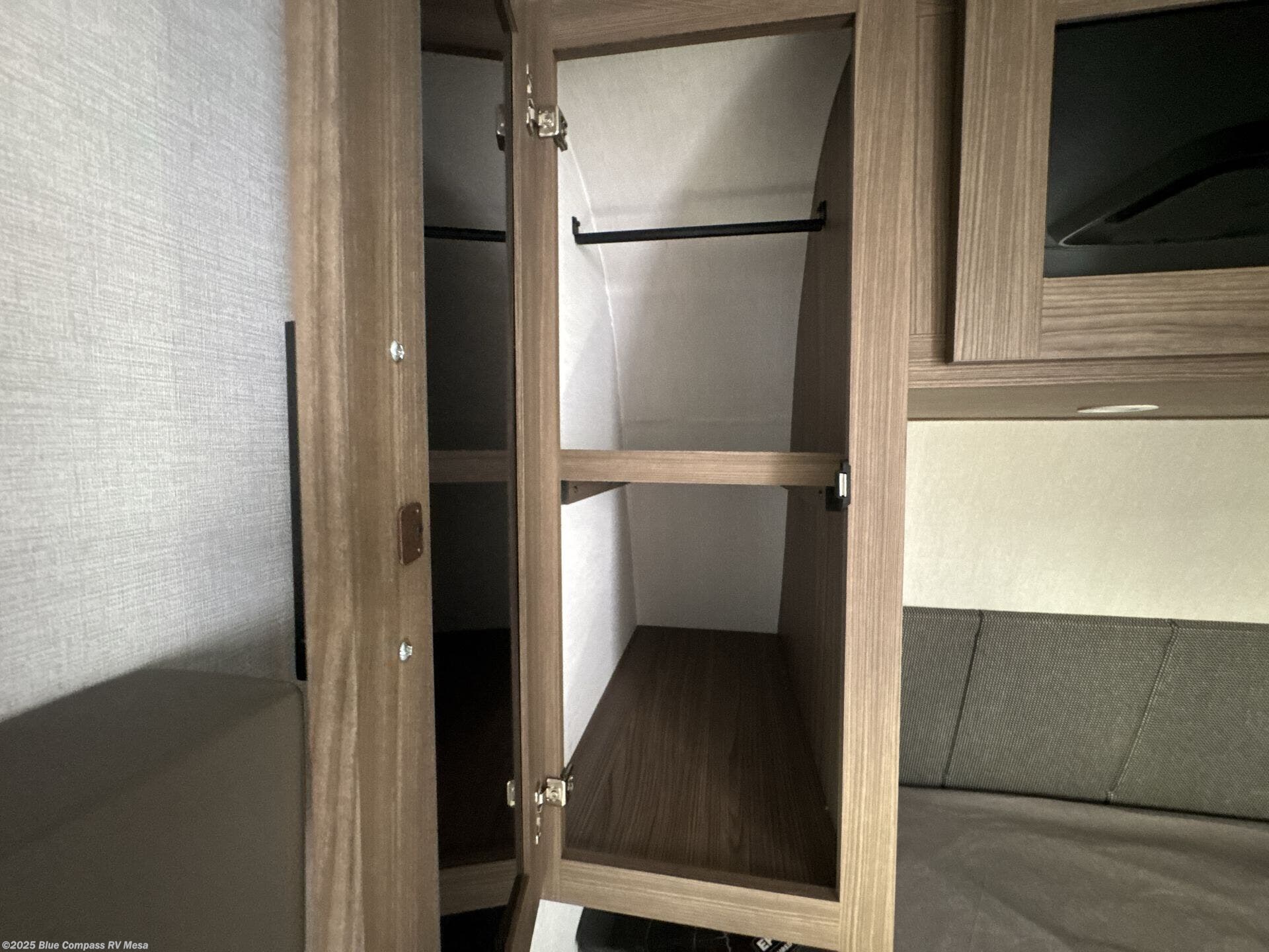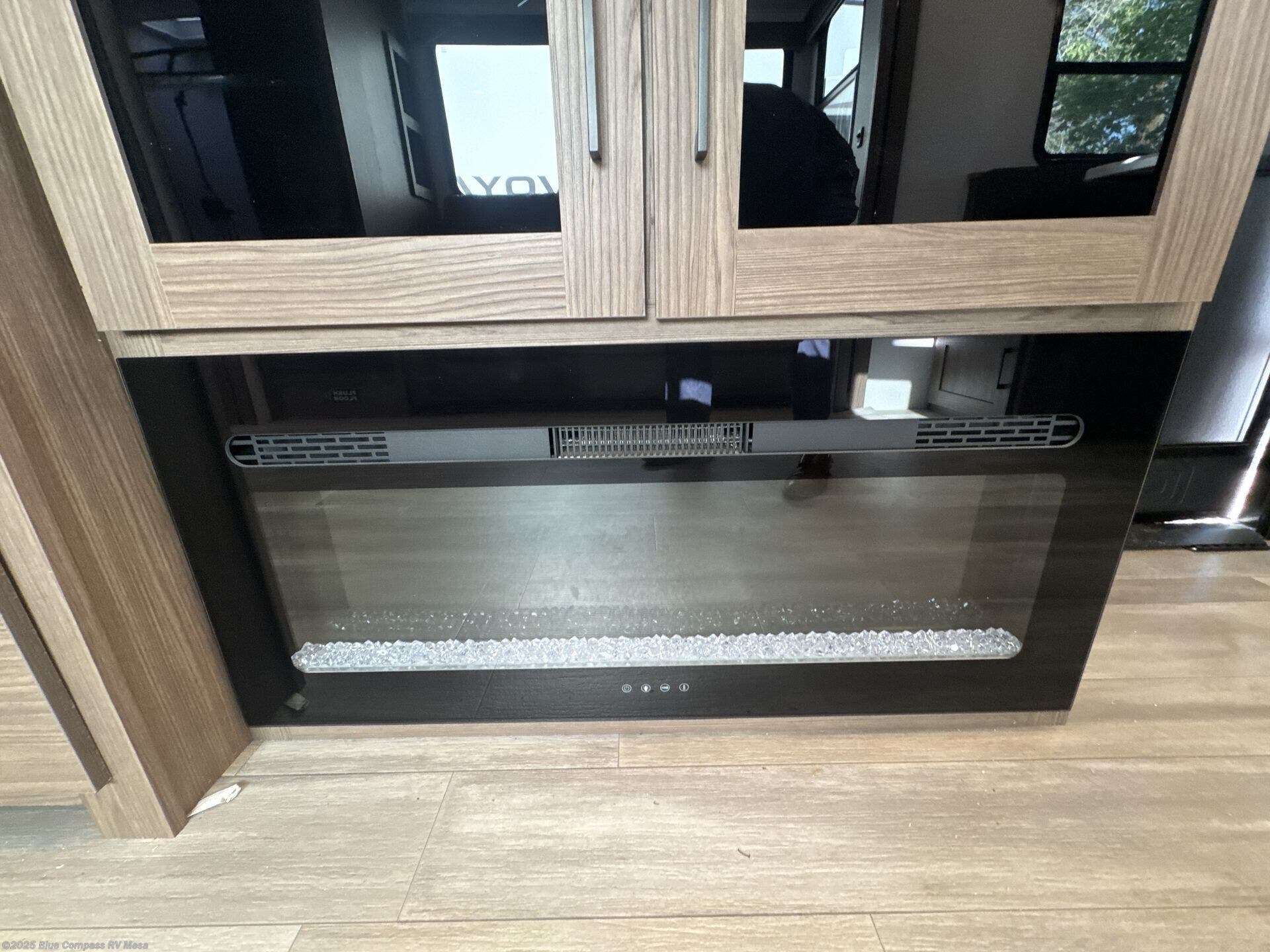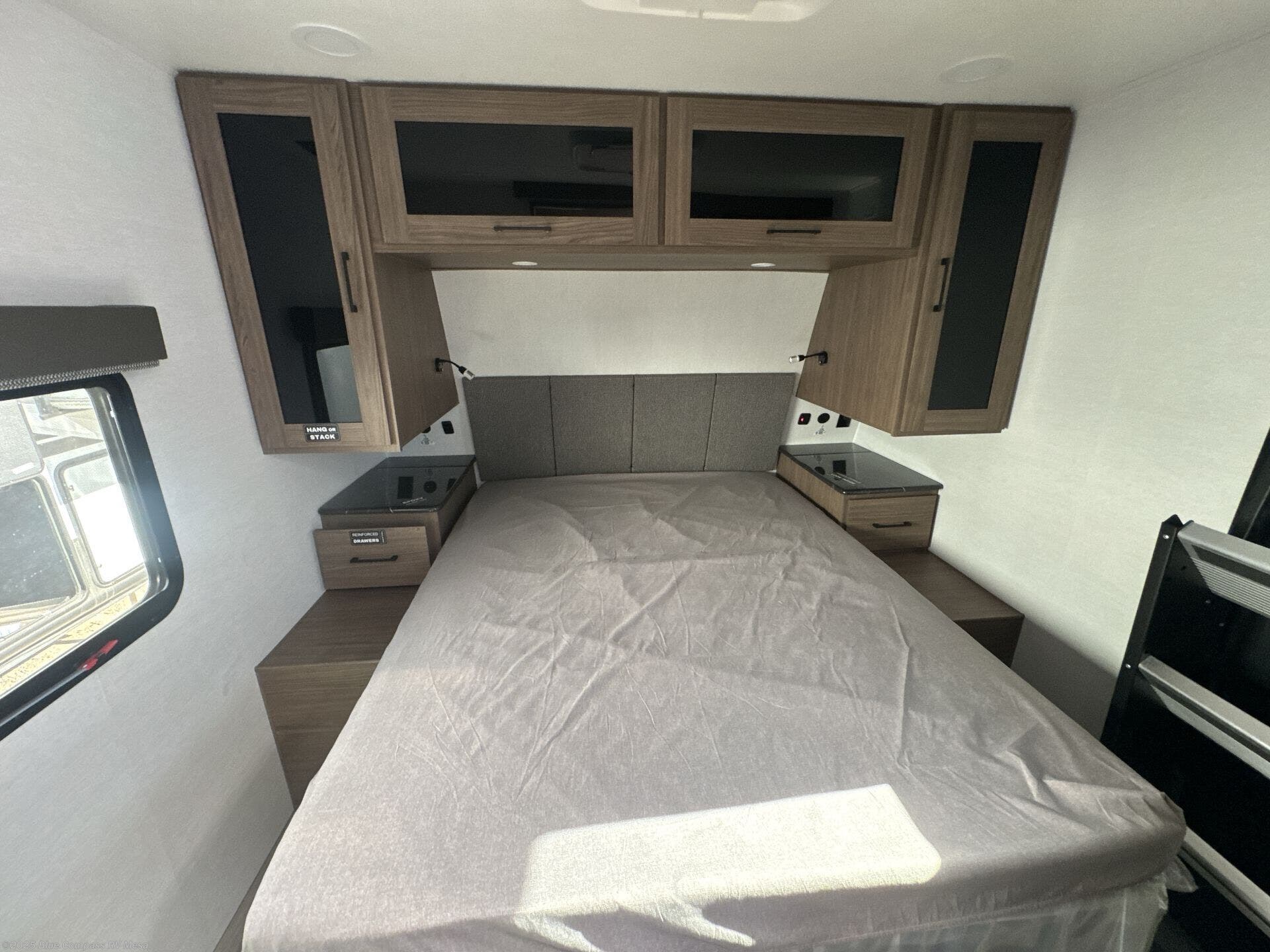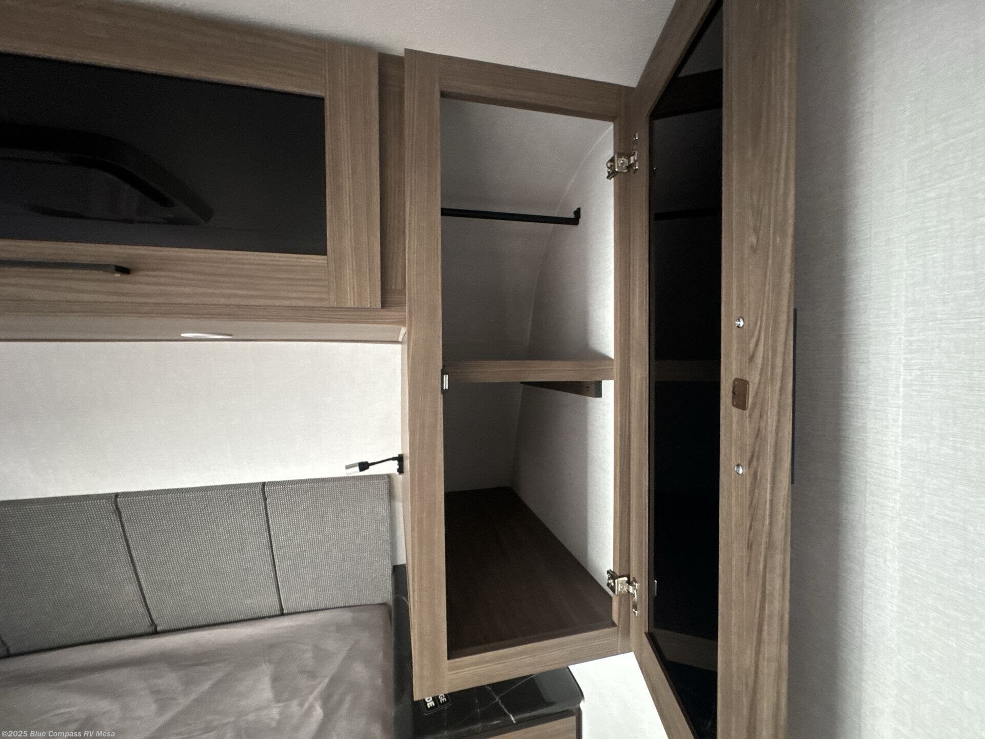 Grab your hiking boots and your sense of adventure for fun camping trips in this single slide out travel trailer. The rear booth dinette includes overhead storage for your things and the sofa slide out is in great view of the 40" HDTV. There is also a fireplace here that will make your space feel more like home plus more storage space, including an entryway closet and storage above the 10 cu. ft. 12V refrigerator. A walk-through bath will take you to the front master bedroom with a queen bed, wardrobe nightstands, plus its own exterior entry door!