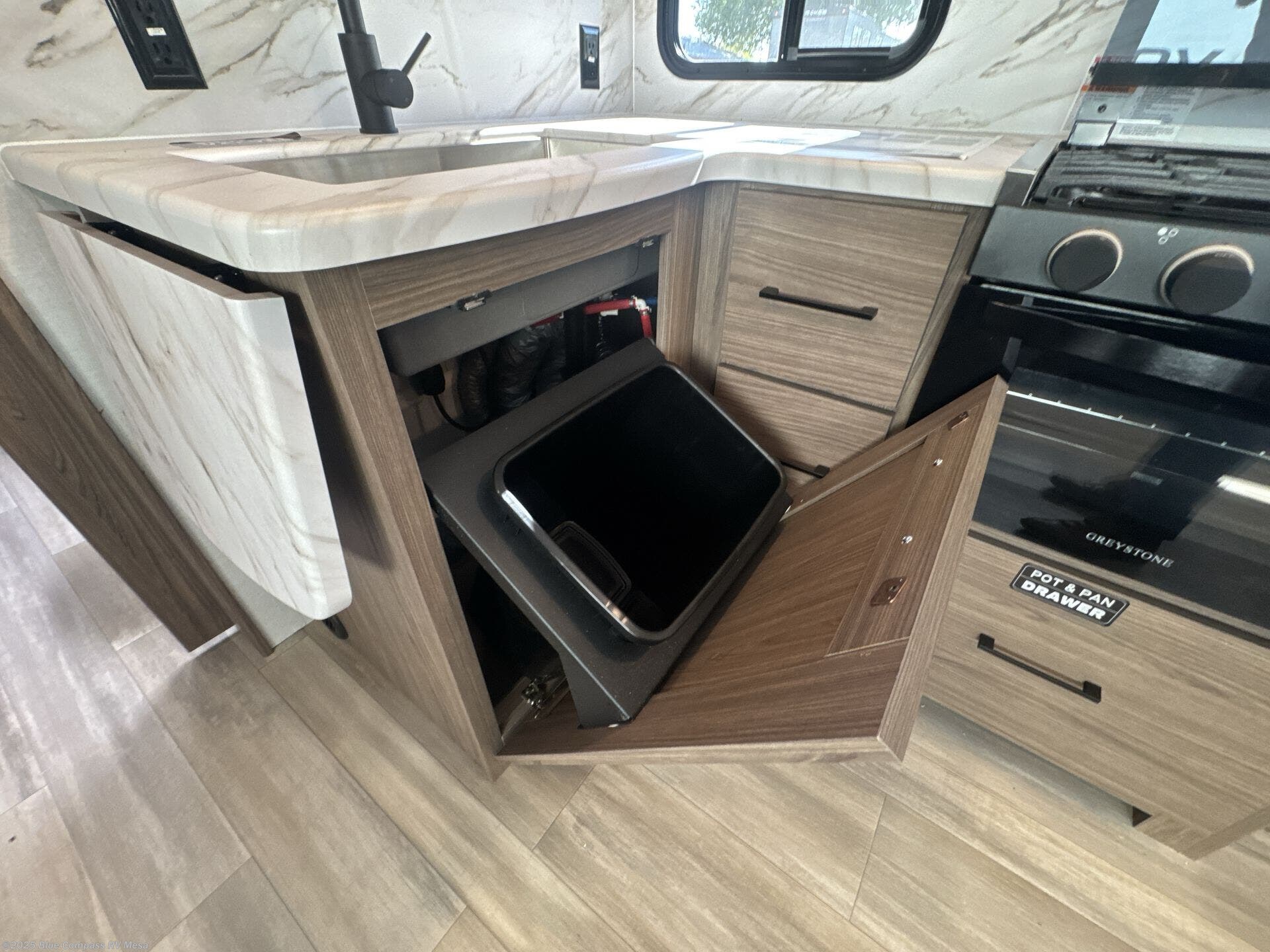 Form and function works together with every one of these Alliance RV Delta travel trailers! They are built with a walk-on roof with a seamless PVC roof covering, Mylar reinforced exterior seals, and a heated and enclosed underbelly to protect your unit in all seasons. The commercial grade vinyl flooring will be easy to clean and the oversized atrium windows throughout let in plenty of natural sunlight. With 62 cu. ft. of drop frame pass-through storage, you can bring along all of your essential camping gear plus it has USB charging for more convenience. There are many at home interior conveniences including a Bluetooth speaker, USB charging throughout, and even a pull-out kitchen trash can. Come find your favorite model today!