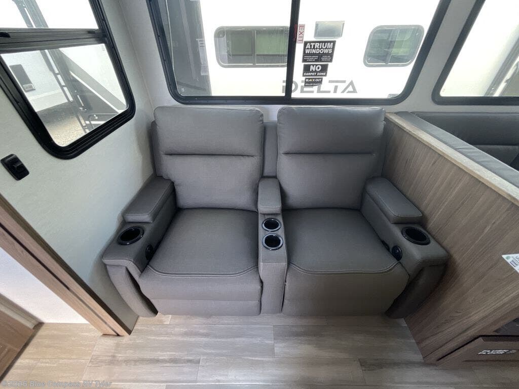 Form and function works together with every one of these Alliance RV Delta travel trailers! They are built with a walk-on roof with a seamless PVC roof covering, Mylar reinforced exterior seals, and a heated and enclosed underbelly to protect your unit in all seasons. The commercial grade vinyl flooring will be easy to clean and the oversized atrium windows throughout let in plenty of natural sunlight. With 62 cu. ft. of drop frame pass-through storage, you can bring along all of your essential camping gear plus it has USB charging for more convenience. There are many at home interior conveniences including a Bluetooth speaker, USB charging throughout, and even a pull-out kitchen trash can. Come find your favorite model today!