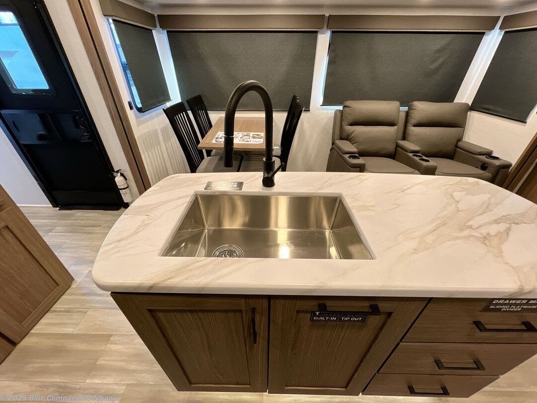 Form and function works together with every one of these Alliance RV Delta travel trailers! They are built with a walk-on roof with a seamless PVC roof covering, Mylar reinforced exterior seals, and a heated and enclosed underbelly to protect your unit in all seasons. The commercial grade vinyl flooring will be easy to clean and the oversized atrium windows throughout let in plenty of natural sunlight. With 62 cu. ft. of drop frame pass-through storage, you can bring along all of your essential camping gear plus it has USB charging for more convenience. There are many at home interior conveniences including a Bluetooth speaker, USB charging throughout, and even a pull-out kitchen trash can. Come find your favorite model today!
