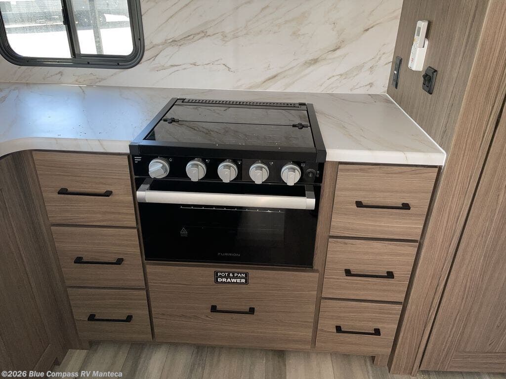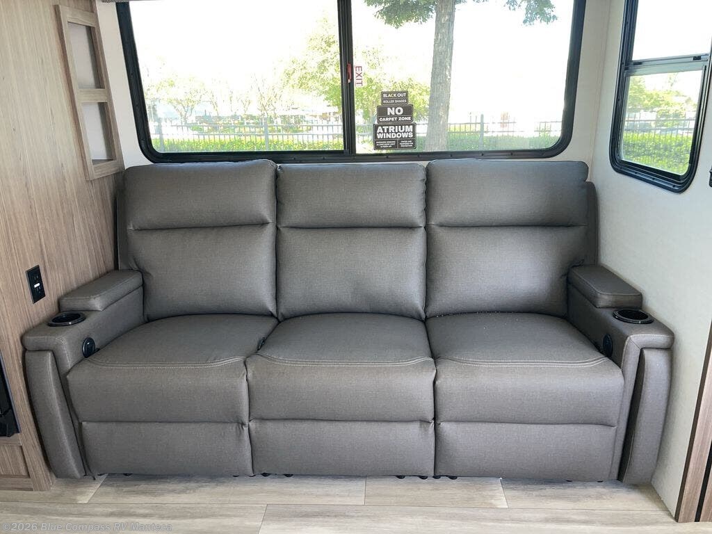 Form and function works together with every one of these Alliance RV Delta travel trailers! They are built with a walk-on roof with a seamless PVC roof covering, Mylar reinforced exterior seals, and a heated and enclosed underbelly to protect your unit in all seasons. The commercial grade vinyl flooring will be easy to clean and the oversized atrium windows throughout let in plenty of natural sunlight. With 62 cu. ft. of drop frame pass-through storage, you can bring along all of your essential camping gear plus it has USB charging for more convenience. There are many at home interior conveniences including a Bluetooth speaker, USB charging throughout, and even a pull-out kitchen trash can. Come find your favorite model today!