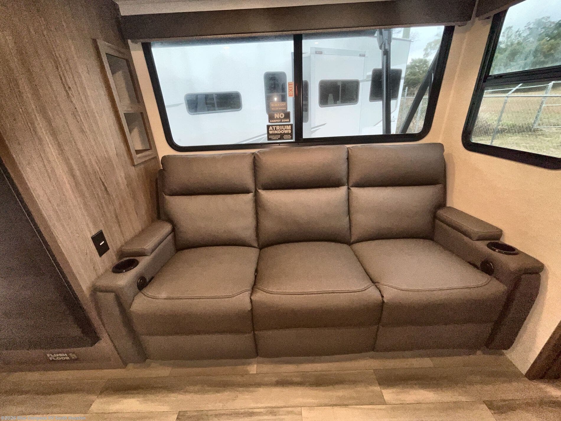 Form and function works together with every one of these Alliance RV Delta travel trailers! They are built with a walk-on roof with a seamless PVC roof covering, Mylar reinforced exterior seals, and a heated and enclosed underbelly to protect your unit in all seasons. The commercial grade vinyl flooring will be easy to clean and the oversized atrium windows throughout let in plenty of natural sunlight. With 62 cu. ft. of drop frame pass-through storage, you can bring along all of your essential camping gear plus it has USB charging for more convenience. There are many at home interior conveniences including a Bluetooth speaker, USB charging throughout, and even a pull-out kitchen trash can. Come find your favorite model today!