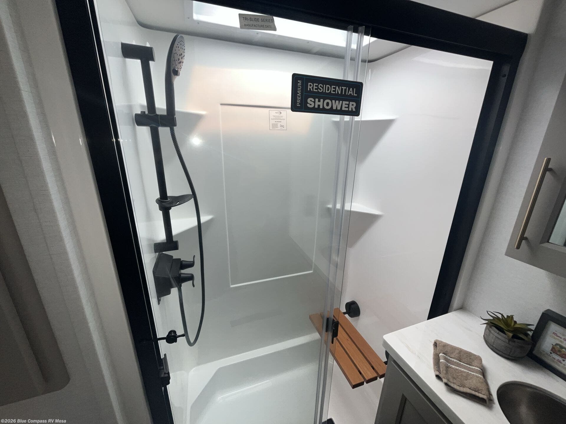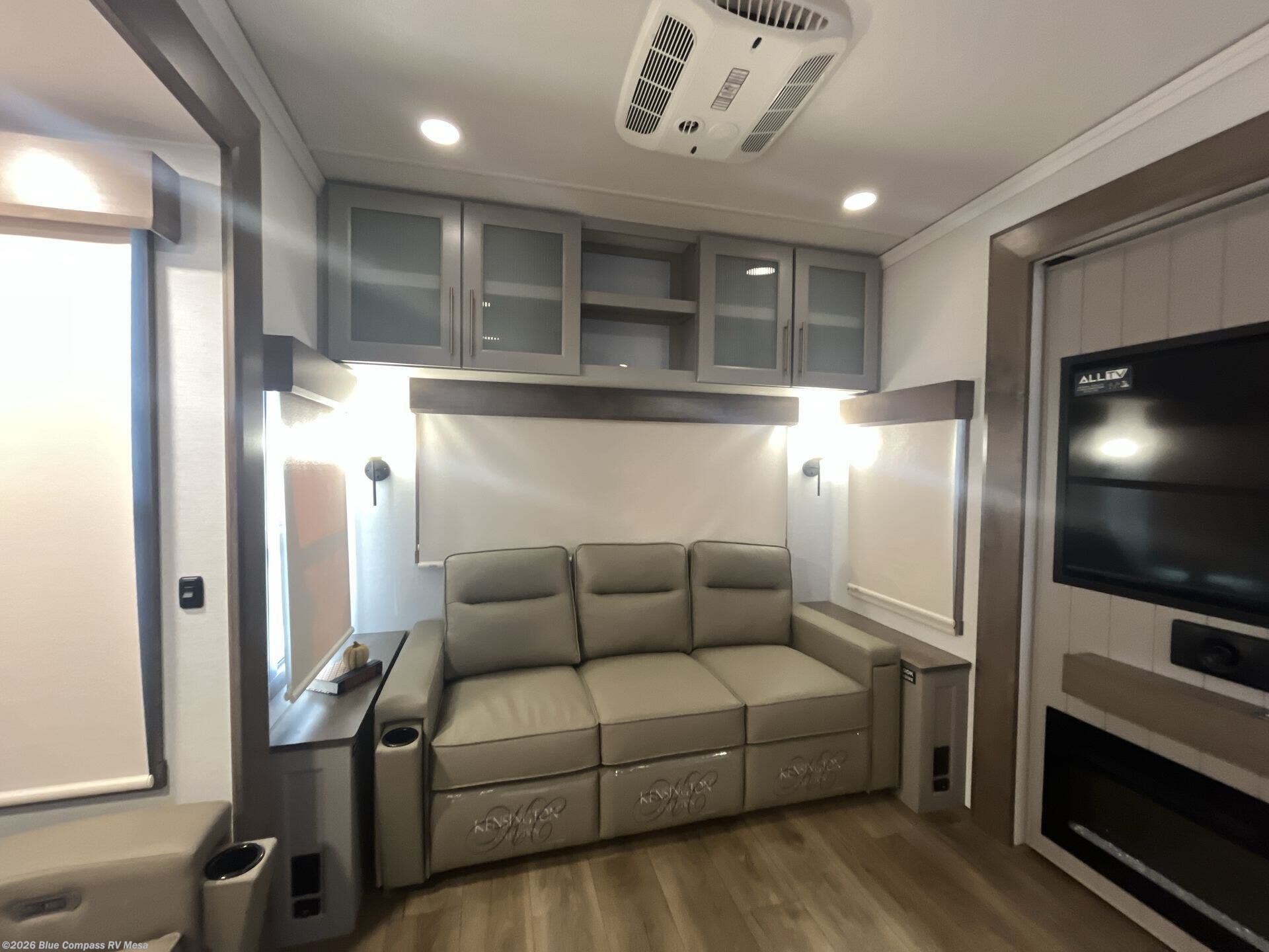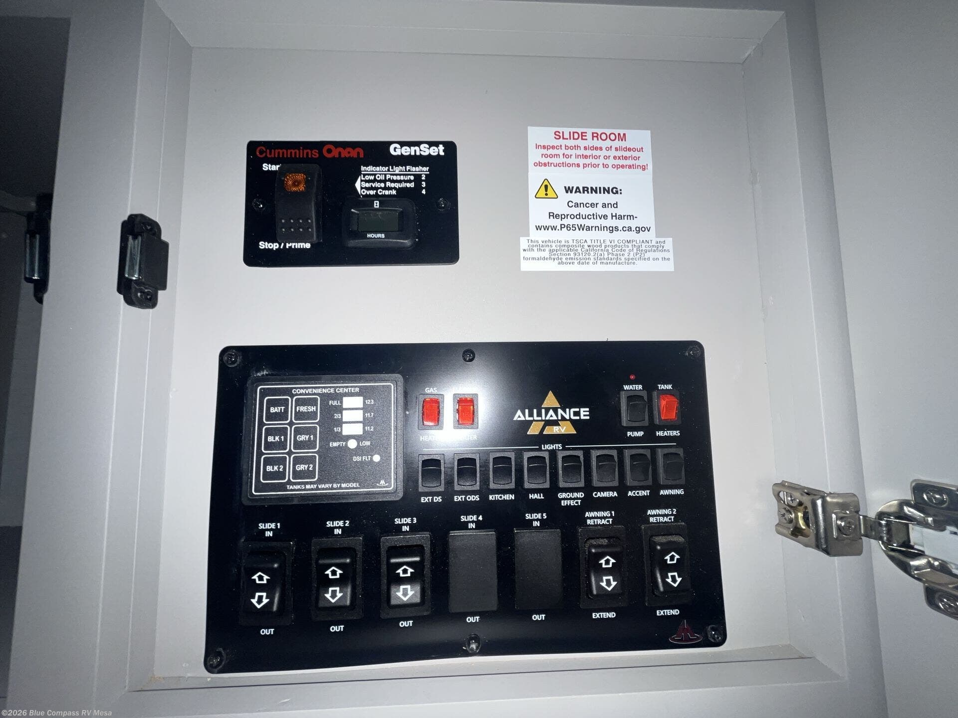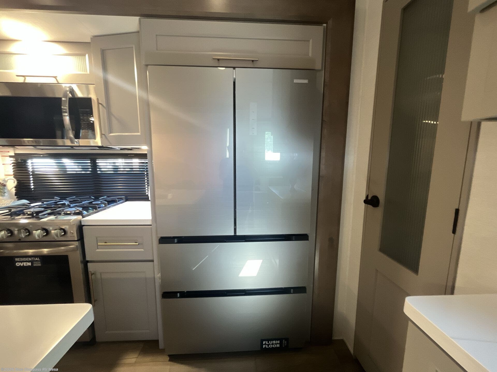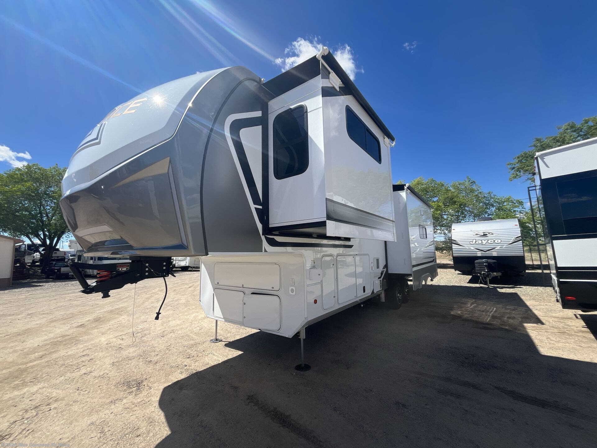 The Paradigm fifth wheels by Alliance RV are functional, high-quality, and luxurious for an unforgettable camping experience. There are three A/C units and a 40K BTU furnace to keep you comfortable year around, and you'll appreciate additional convenient amenities, like the all-in-one enclosed/heated utility center and the color coded and numbered wiring. A Rota-Flex pin box comes standard for hassle-free towing, along with Super-G 4,400 lb. rated tires and Dexter 7,000 lb. axles. You'll love the kitchen with its LG solid surface countertops and Lusso range, plus there is LED motion lighting in the pantry and a Maxx fan with a rain sensor to keep everything fresh when making dinner. Each model also includes an HD Smart TV in the living room and bedroom, plus a Winegard Air 360 antenna to keep you connected to the outside world. And of course there are a variety of options you can choose from to further customize your fifth wheel; dual pane windows, Super Solar Plus, slide out awning toppers, and generator prep or a generator to name a few!