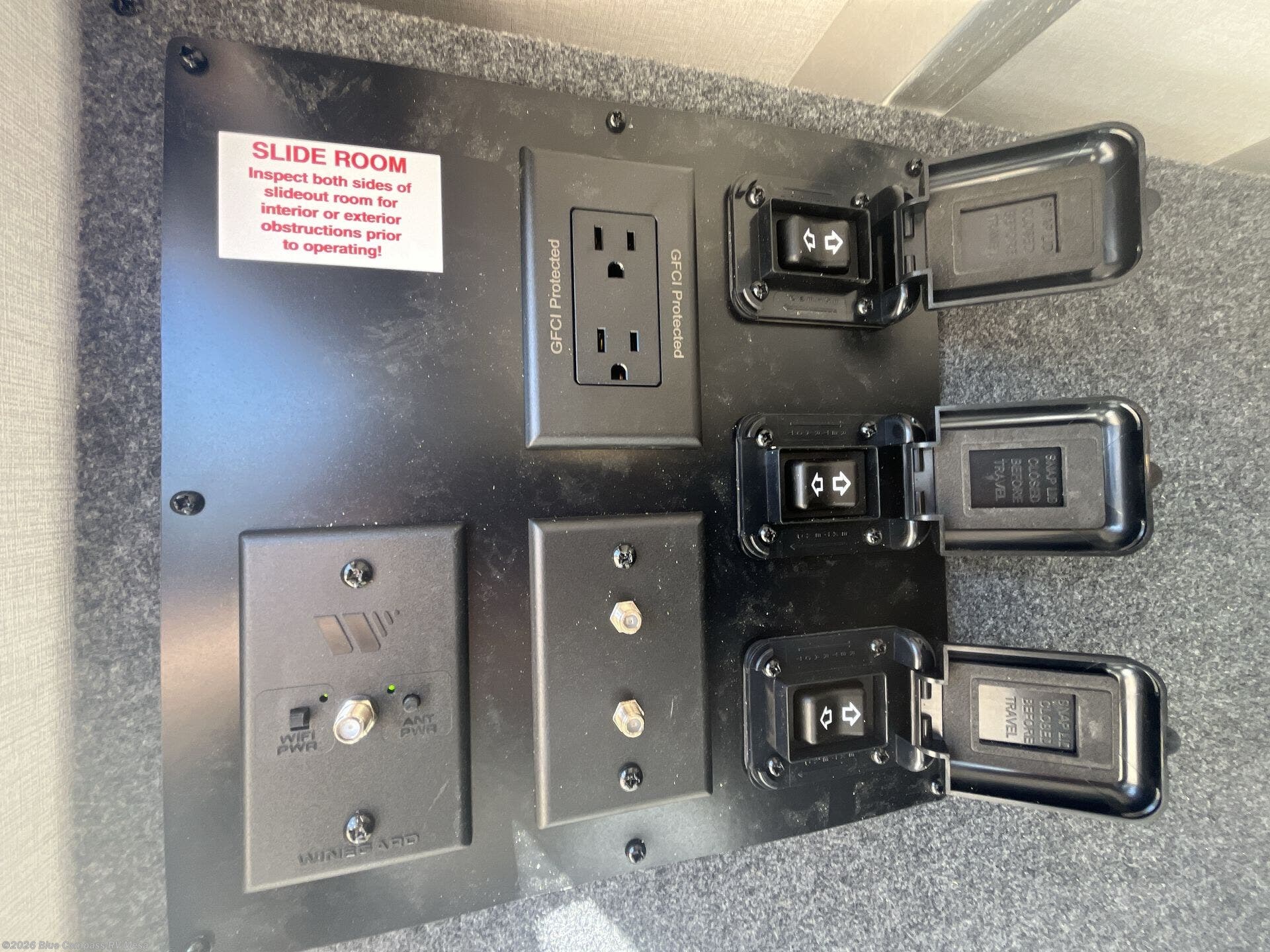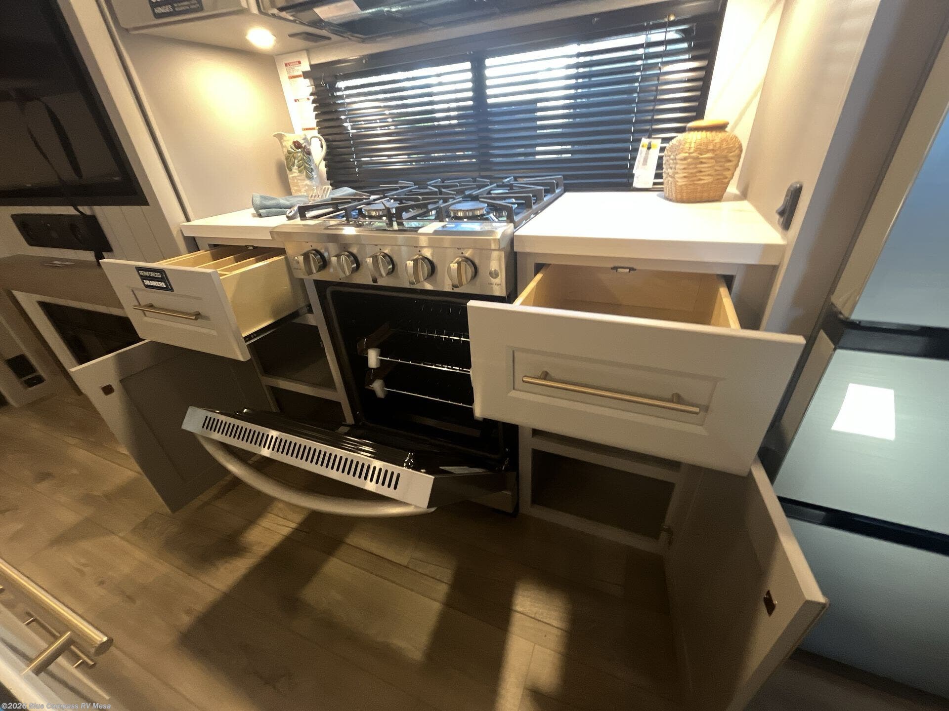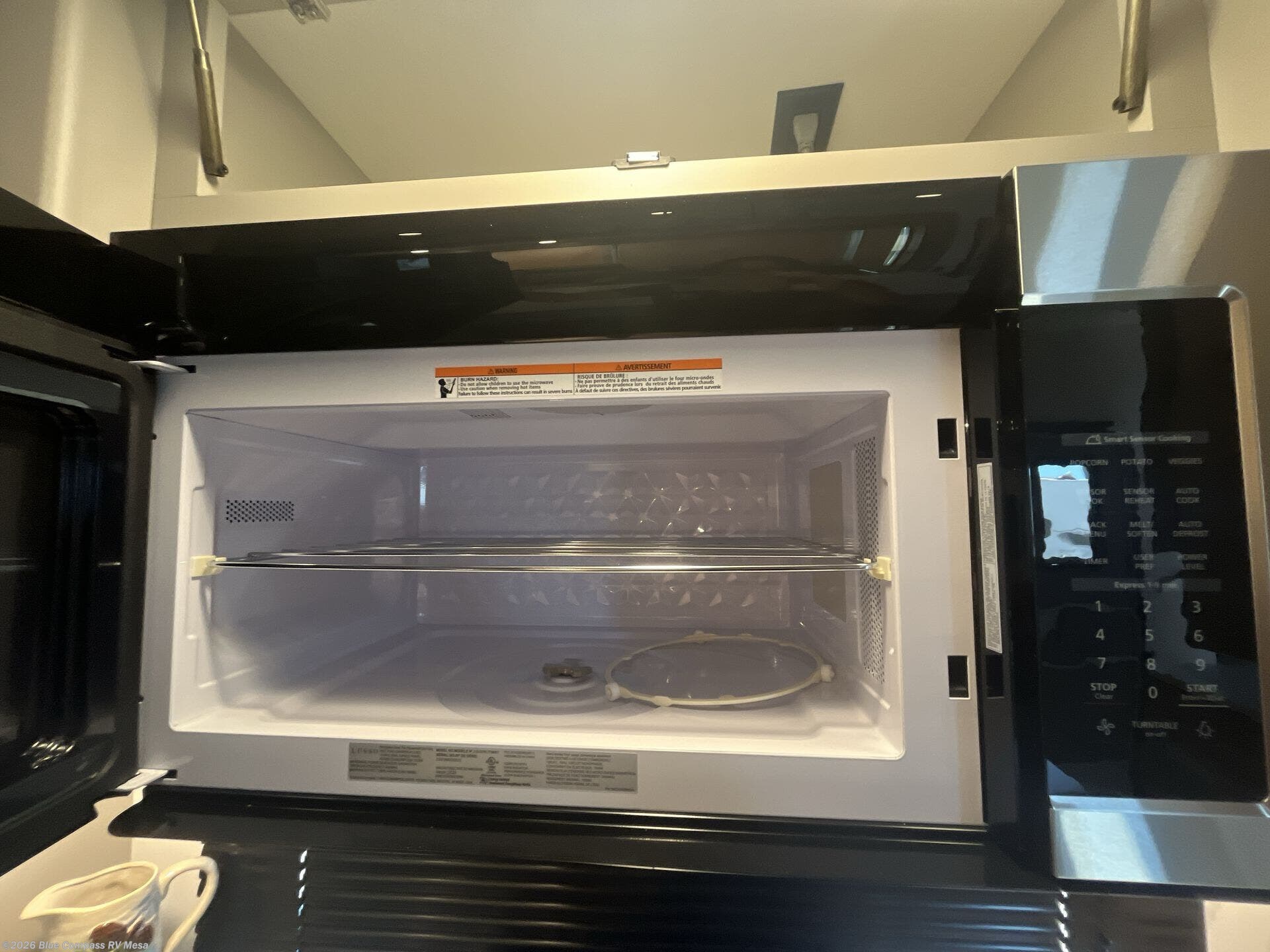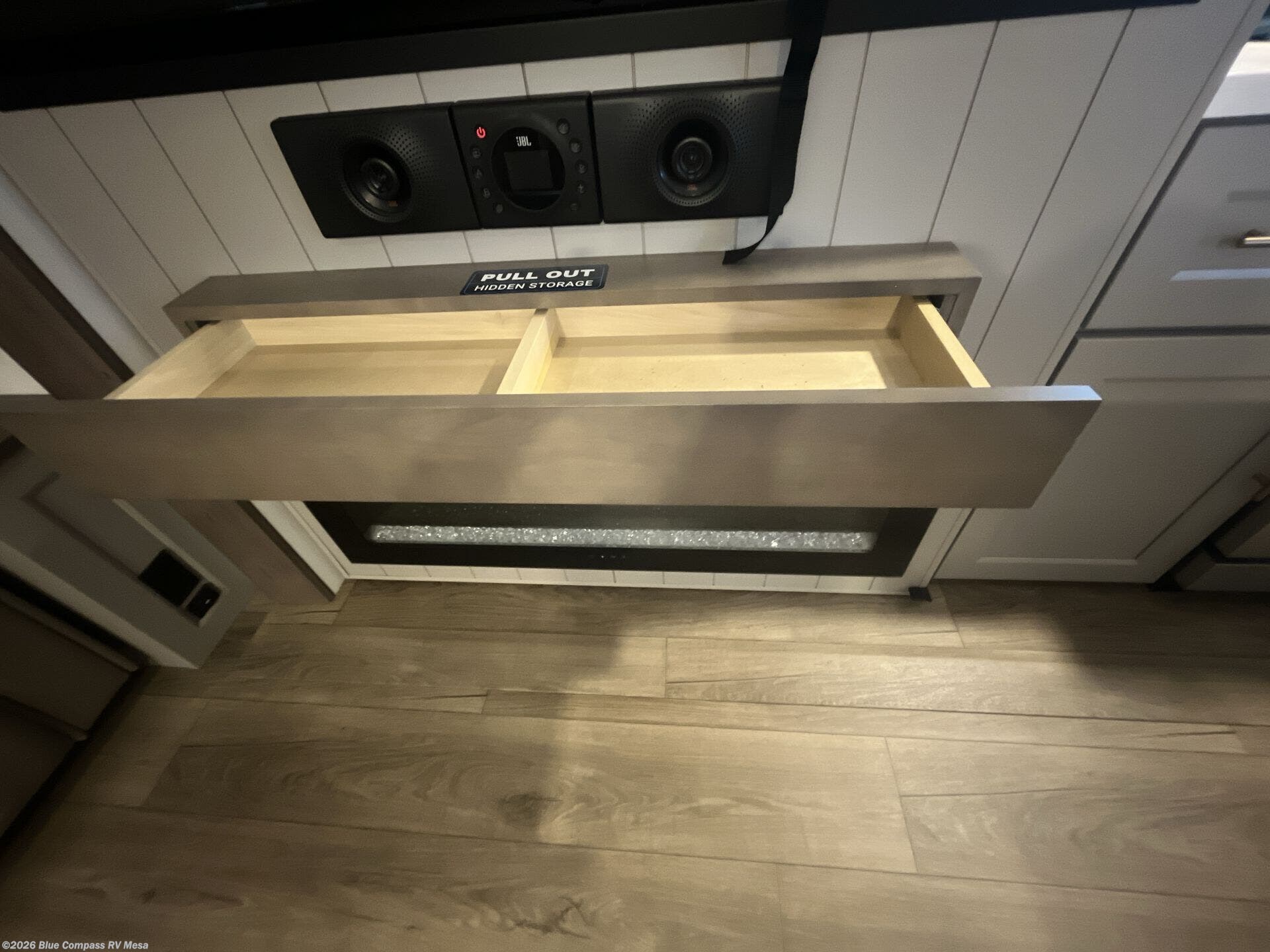 Search for the best views, the nicest RV park, or a place you haven't seen for years with this Paradigm in tow! There is a king bed slide in the master bedroom, a Smart TV, and a dresser with flip-up hidden storage for your belongings. The full bathroom offers a large residential shower, a porcelain toilet with a soft close seat, and storage for your linens, while the kitchen gives you two pantries, an island with a large undermount single basin sink and dishwasher prep if you want the option for easy clean up. You will also have a residential microwave and range, plus a 3.73 cu. ft. oven to make meals. When you're ready to relax for the evening, head to the rear living area to enjoy the dual recliner love seat across from the 50" Smart TV and fireplace!