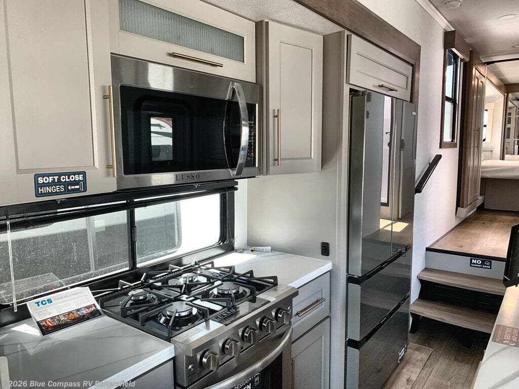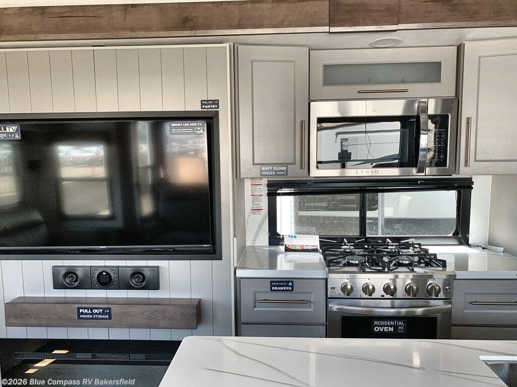 The Paradigm fifth wheels by Alliance RV are functional, high-quality, and luxurious for an unforgettable camping experience. There are three A/C units and a 40K BTU furnace to keep you comfortable year around, and you'll appreciate additional convenient amenities, like the all-in-one enclosed/heated utility center and the color coded and numbered wiring. A Rota-Flex pin box comes standard for hassle-free towing, along with Super-G 4,400 lb. rated tires and Dexter 7,000 lb. axles. You'll love the kitchen with its LG solid surface countertops and Lusso range, plus there is LED motion lighting in the pantry and a Maxx fan with a rain sensor to keep everything fresh when making dinner. Each model also includes an HD Smart TV in the living room and bedroom, plus a Winegard Air 360 antenna to keep you connected to the outside world. And of course there are a variety of options you can choose from to further customize your fifth wheel; dual pane windows, Super Solar Plus, slide out awning toppers, and generator prep or a generator to name a few!