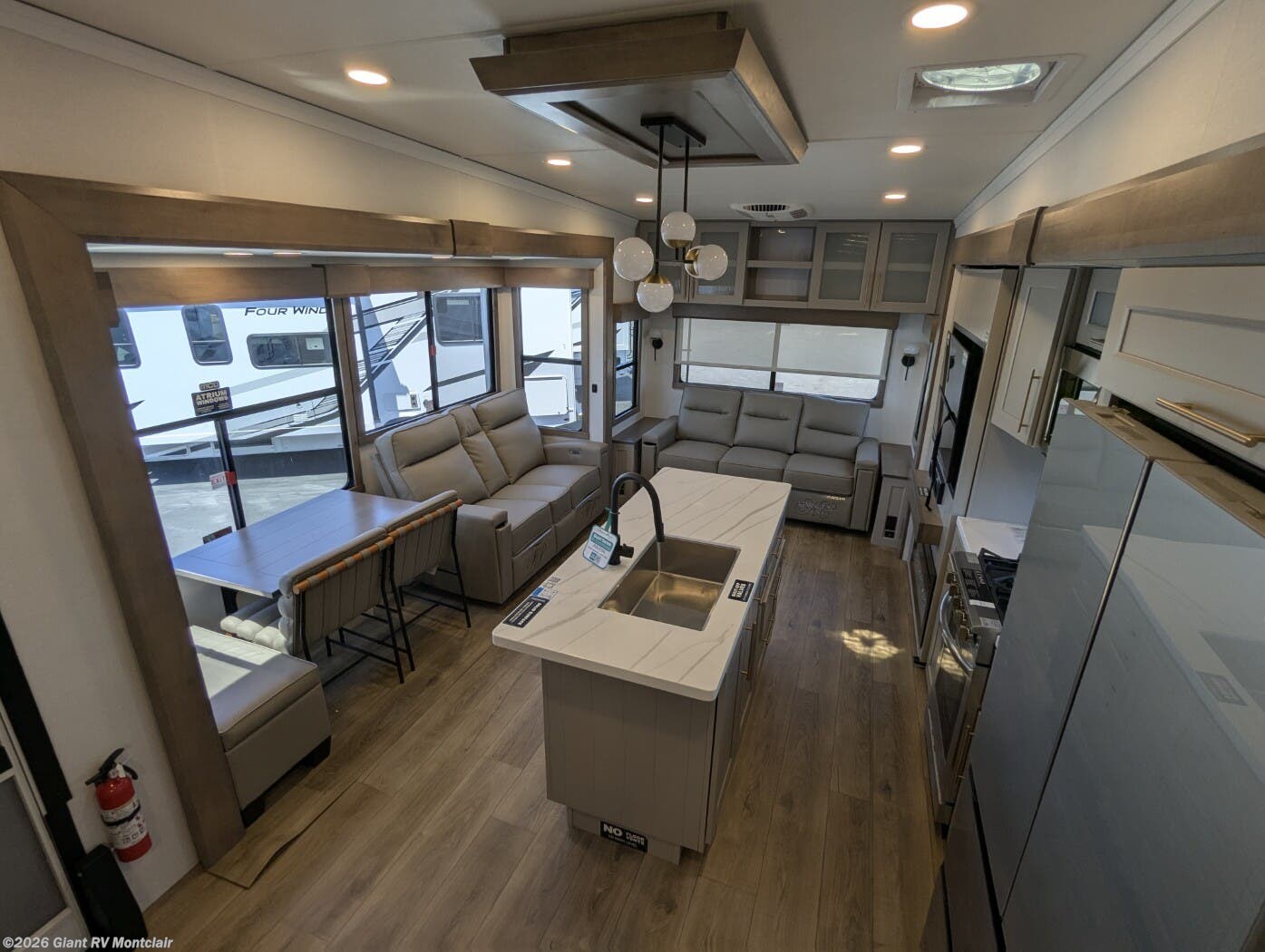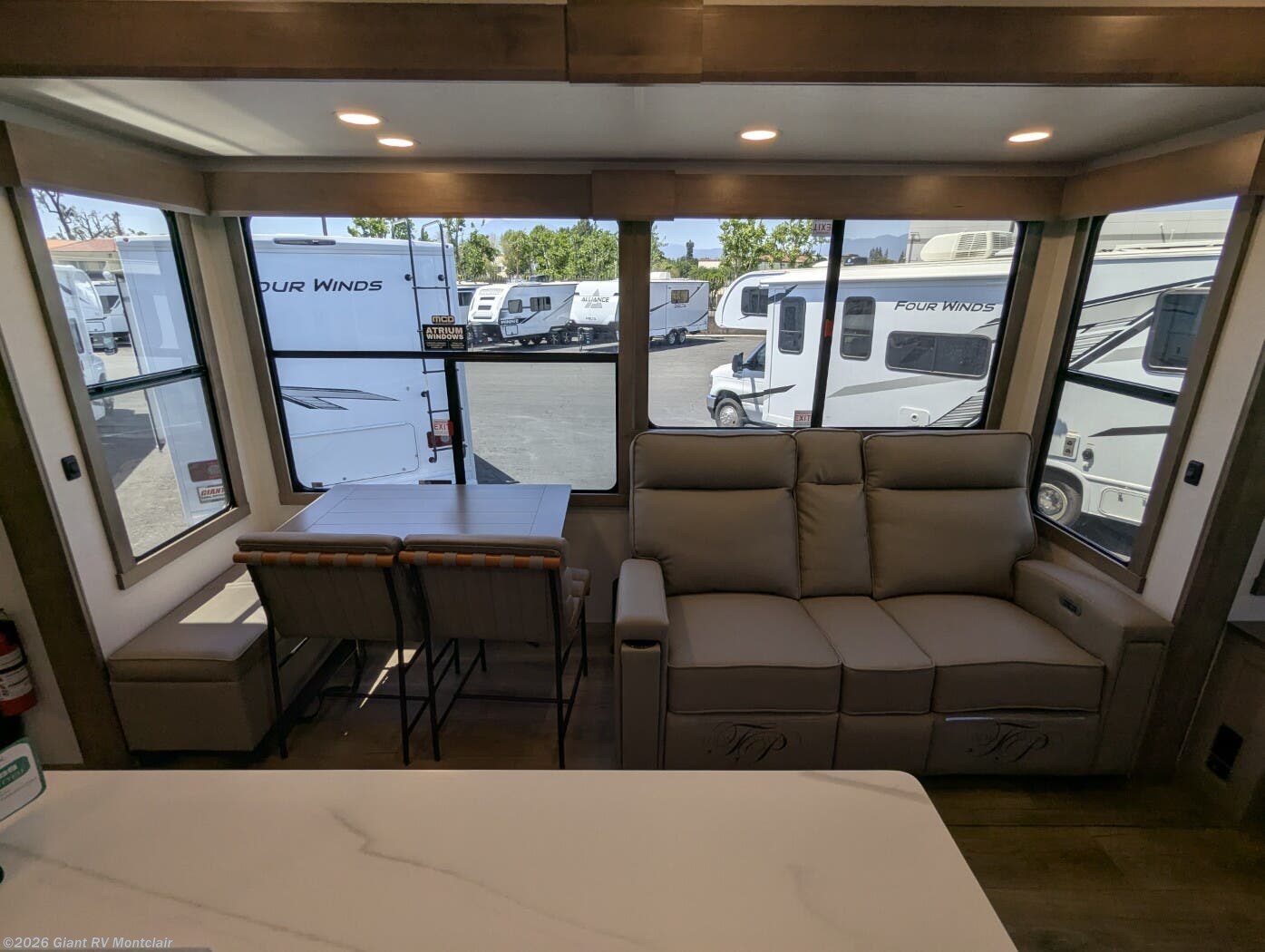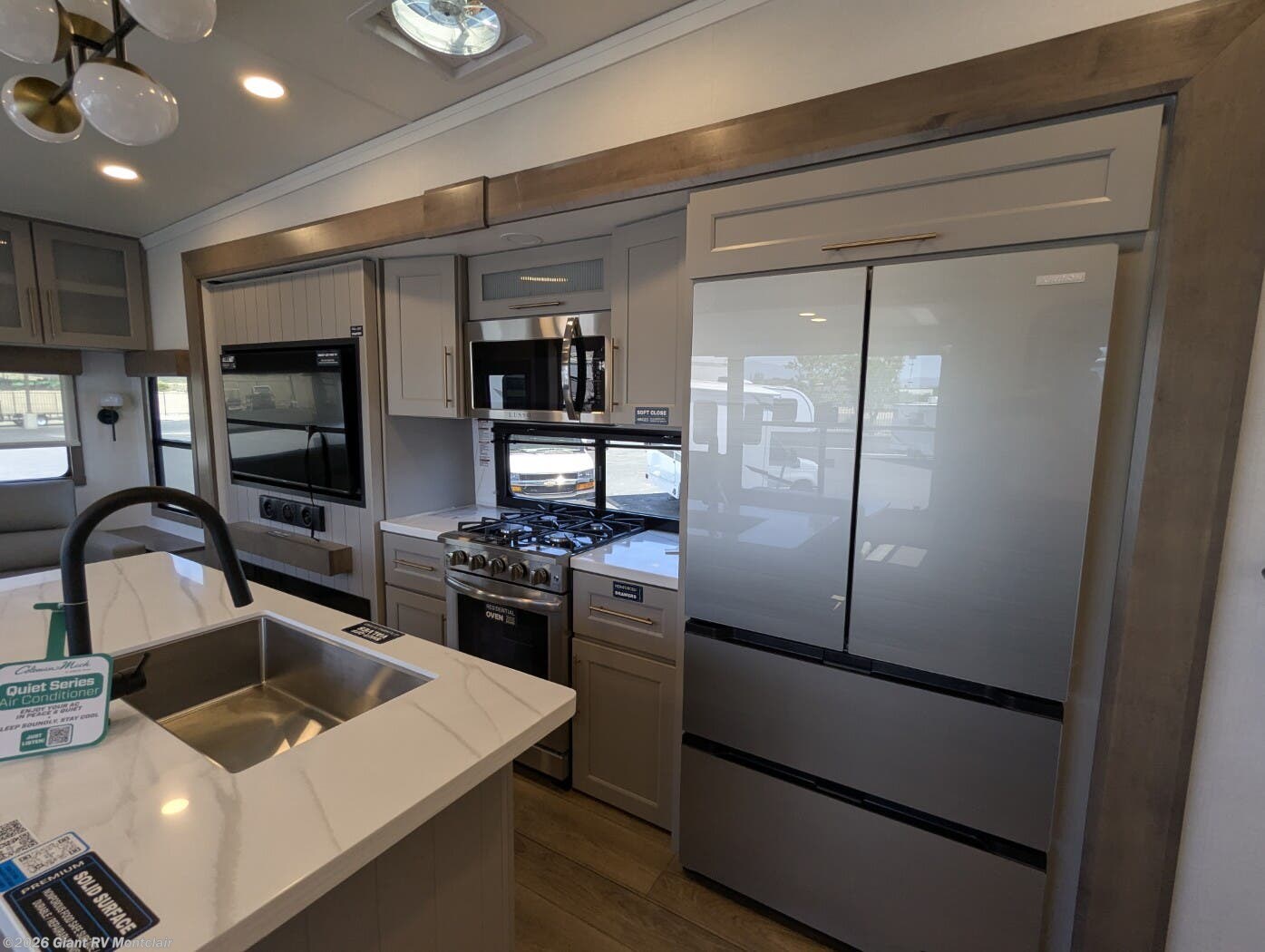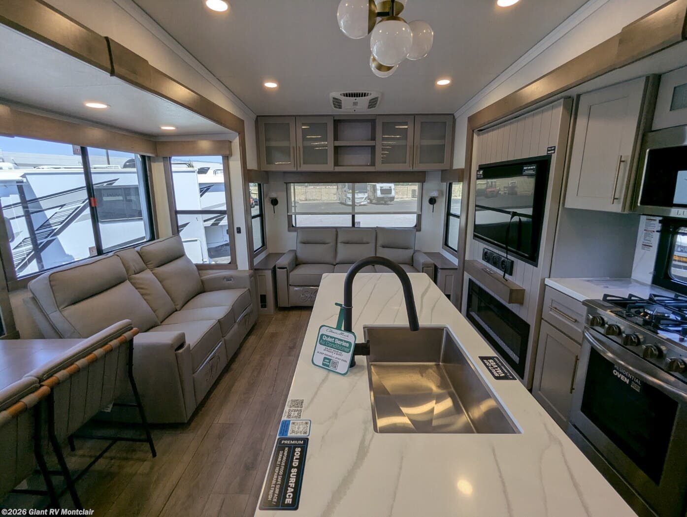 Experience premium RV camping with the 2025 Alliance RV Paradigm 340RL fifth wheel at Giant RV in California! Ideal for couples, this RV features a rear living area with dual opposing slide-outs, theater seating, a tri-fold sofa, and 50” LED TV, plus a front king bedroom. The kitchen boasts a 19 cu. ft. fridge, Insignia range, and island. A full bath with shower ensures comfort. Enjoy a 16’ power awning, exterior storage, and a 98.3-gal fresh water tank. Equipped with three 13,500 BTU A/Cs, a 40,000 BTU furnace, and 6-point hydraulic leveling for off-grid luxury.