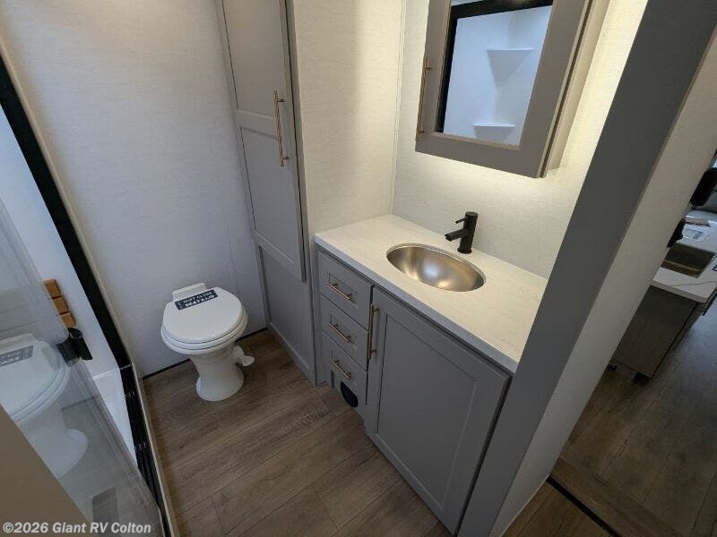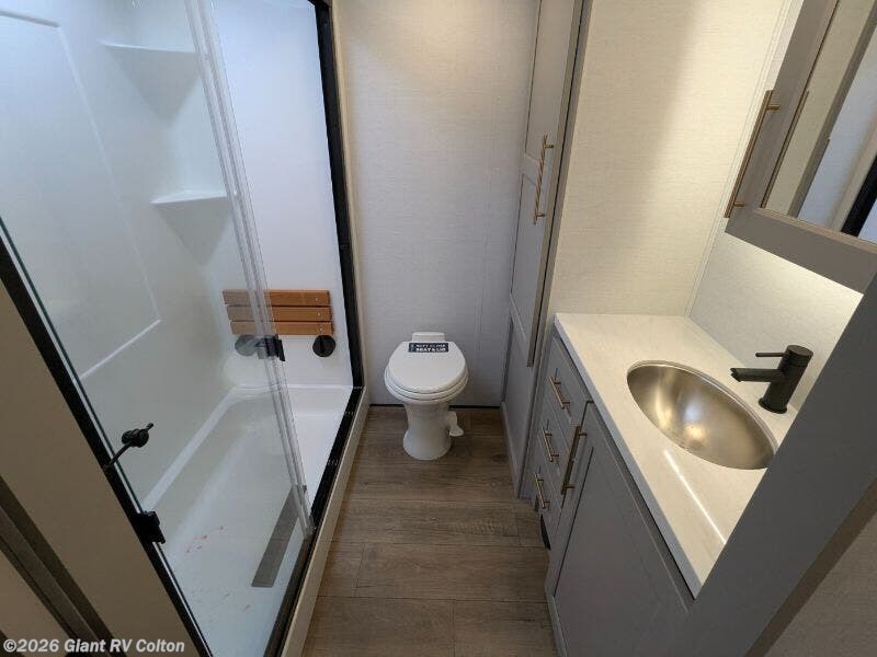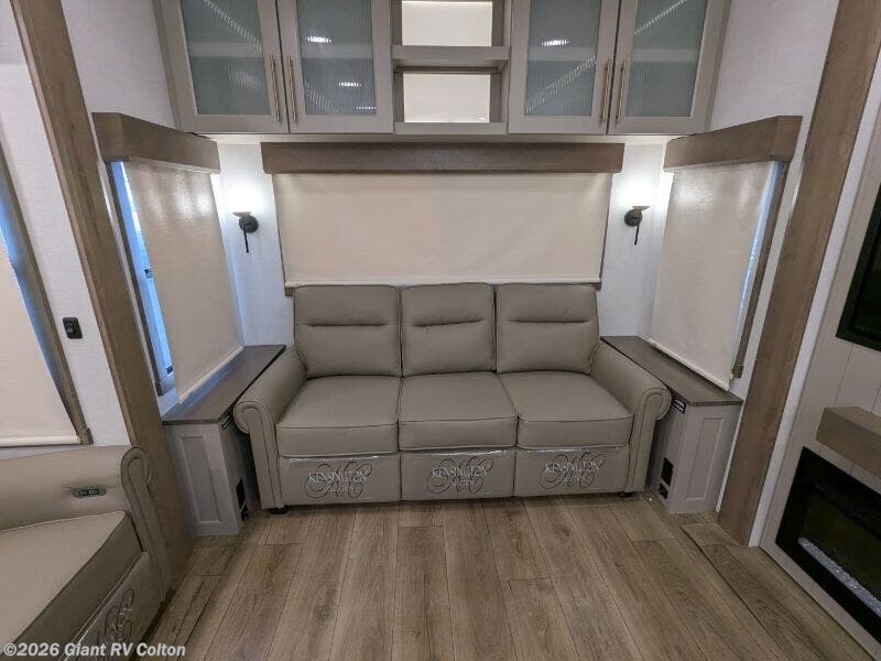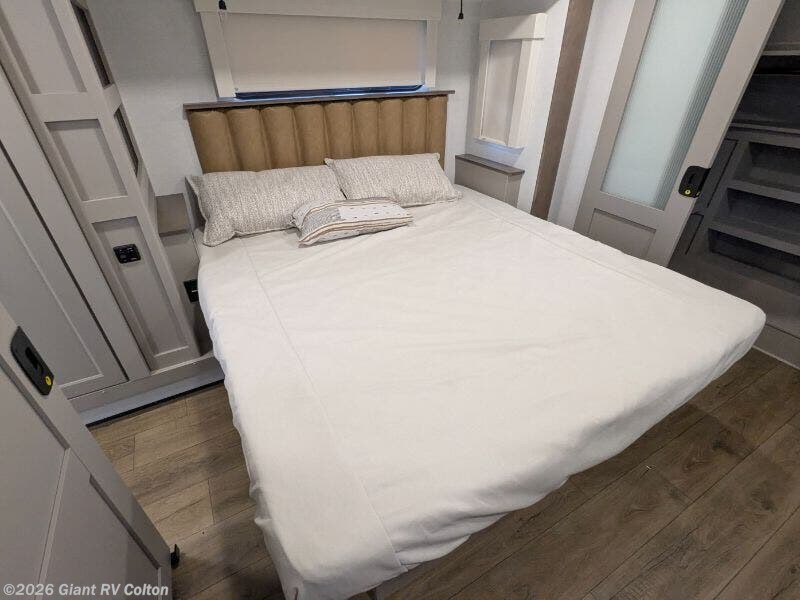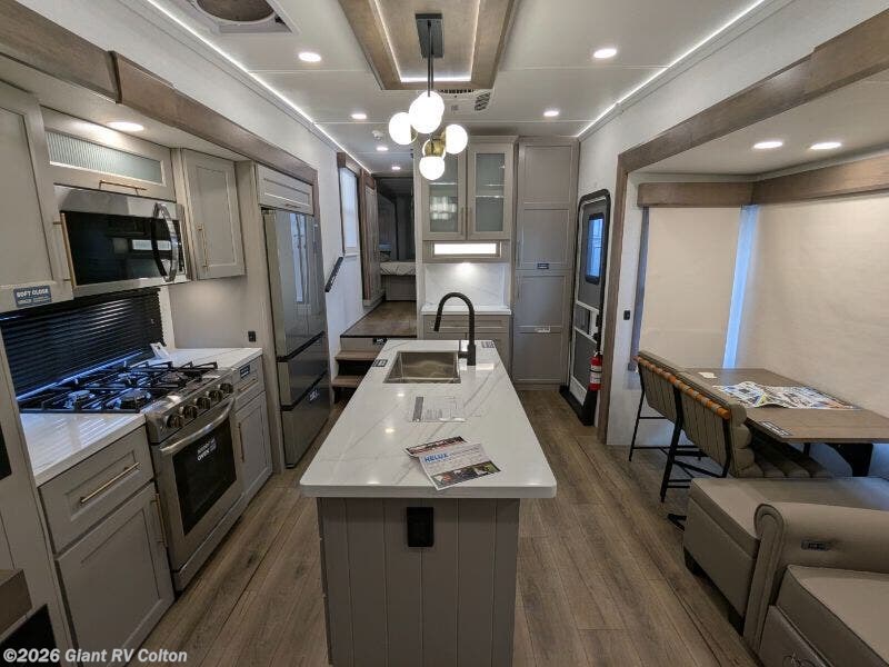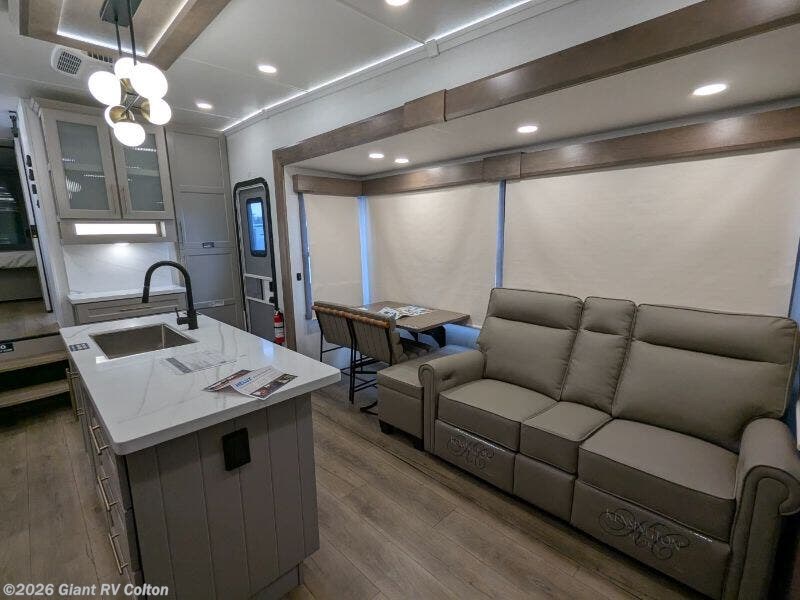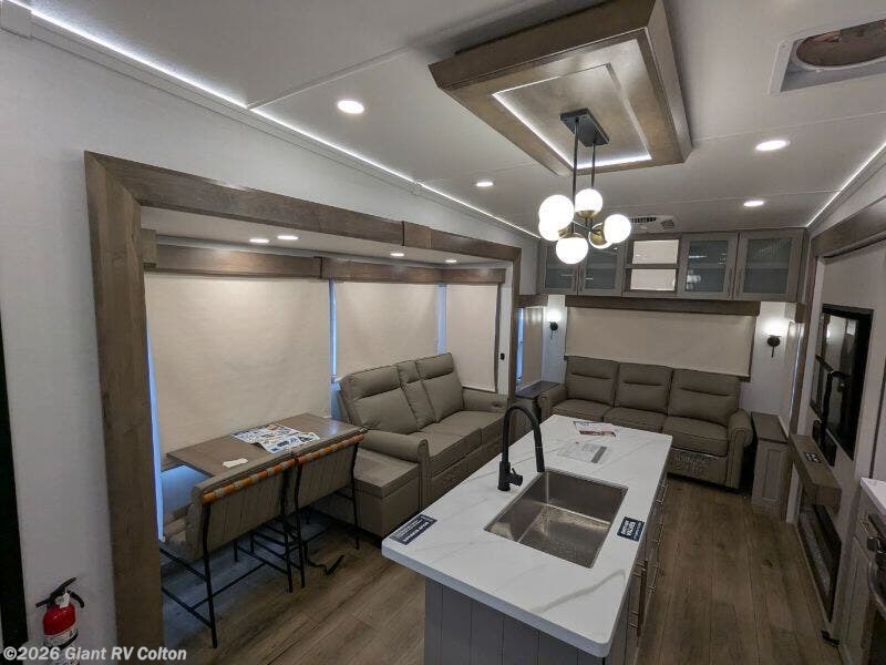 Experience premium RV camping with the 2025 Alliance RV Paradigm 340RL fifth wheel at Giant RV in California! Ideal for couples, this RV features a rear living area with dual opposing slide-outs, theater seating, a tri-fold sofa, and 50” LED TV, plus a front king bedroom. The kitchen boasts a 19 cu. ft. fridge, Insignia range, and island. A full bath with shower ensures comfort. Enjoy a 16’ power awning, exterior storage, and a 98.3-gal fresh water tank. Equipped with three 13,500 BTU A/Cs, a 40,000 BTU furnace, and 6-point hydraulic leveling for off-grid luxury.