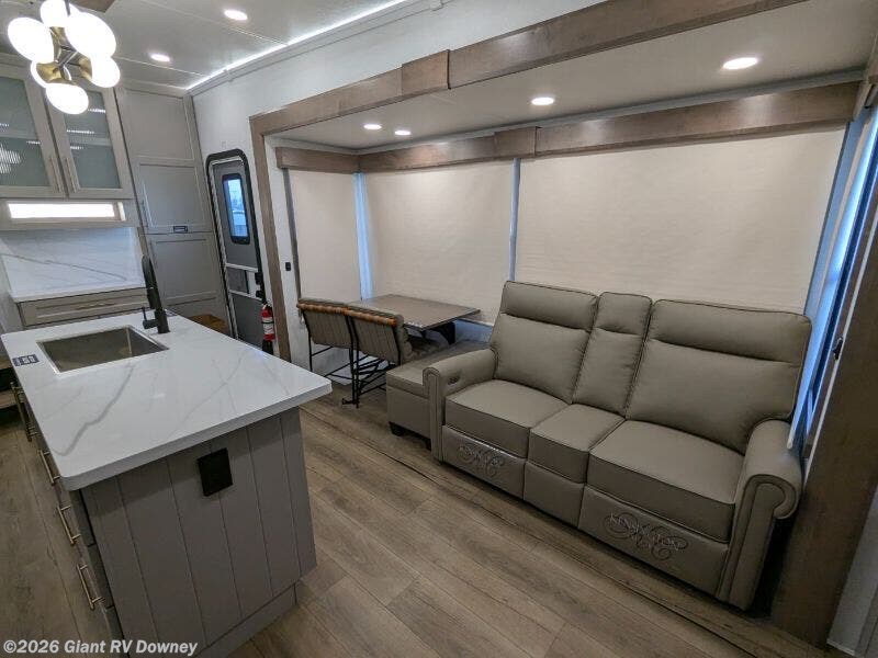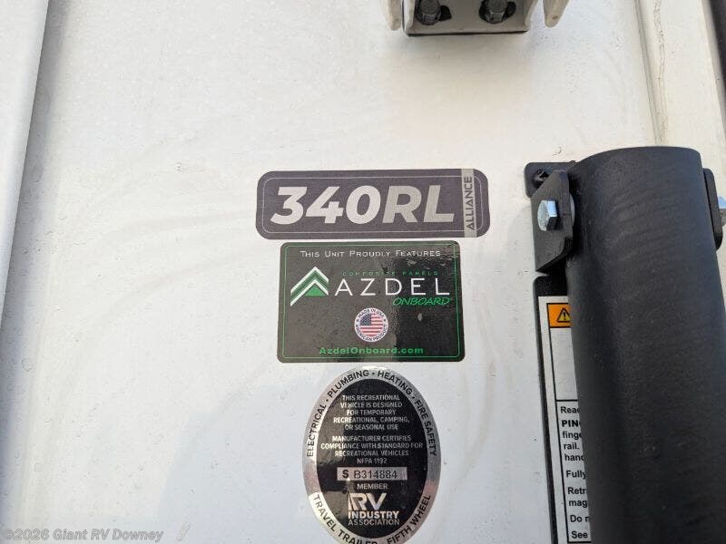 Experience premium RV camping with the 2025 Alliance RV Paradigm 340RL fifth wheel at Giant RV in California! Ideal for couples, this RV features a rear living area with dual opposing slide-outs, theater seating, a tri-fold sofa, and 50” LED TV, plus a front king bedroom. The kitchen boasts a 19 cu. ft. fridge, Insignia range, and island. A full bath with shower ensures comfort. Enjoy a 16’ power awning, exterior storage, and a 98.3-gal fresh water tank. Equipped with three 13,500 BTU A/Cs, a 40,000 BTU furnace, and 6-point hydraulic leveling for off-grid luxury.