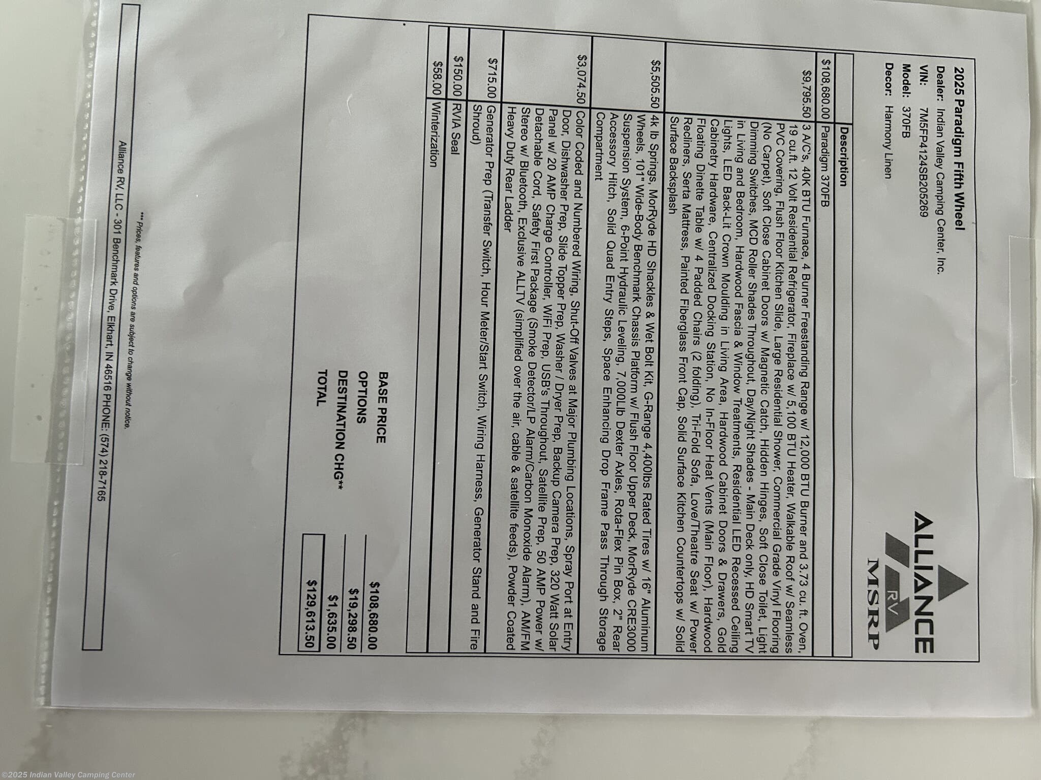 Request More Info on this 2025 Alliance RV Paradigm 370FB Offered for sale by Indian Valley Camping Center
