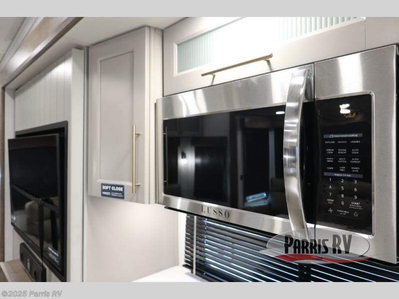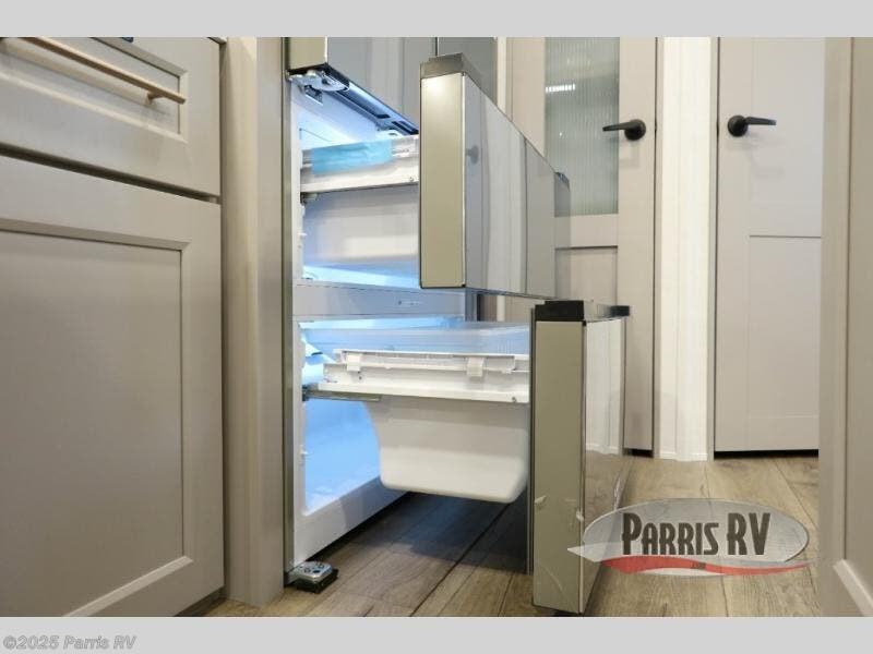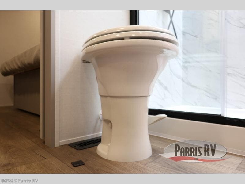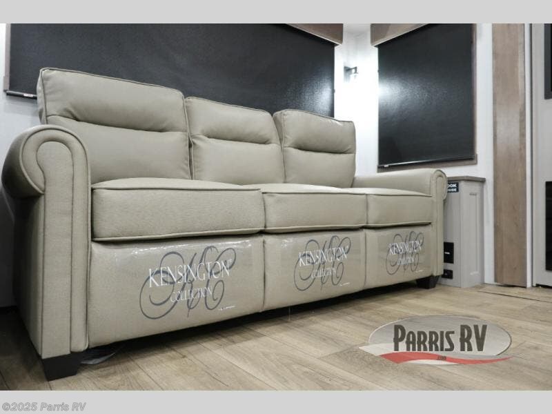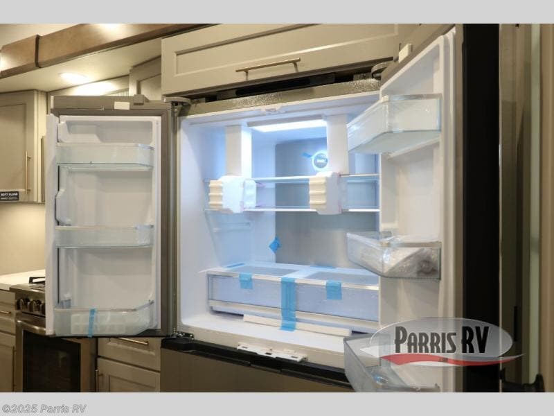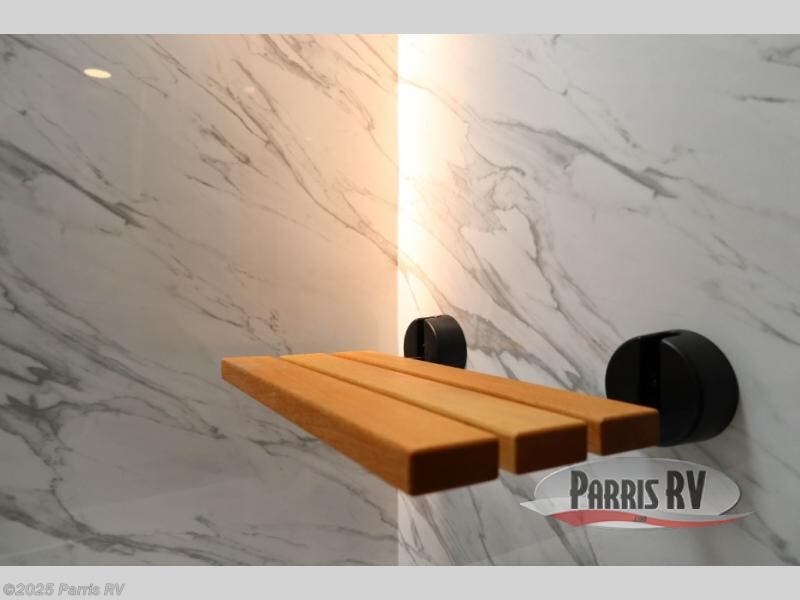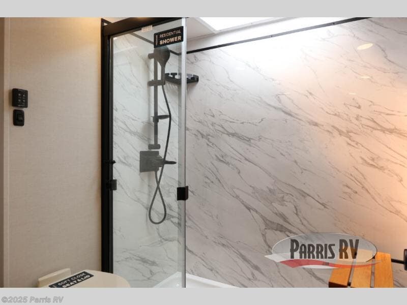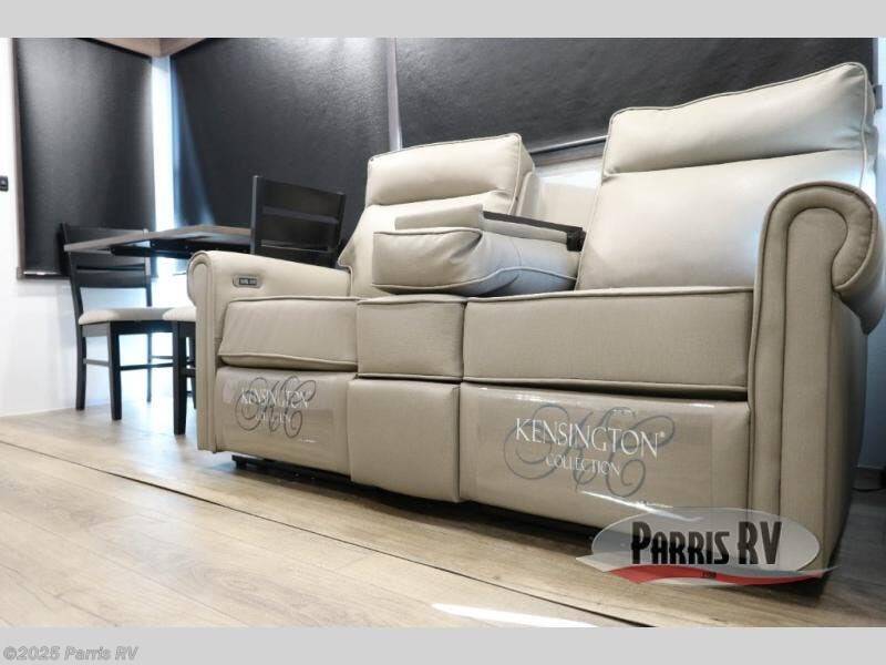 Whether you decide to be a full-timer or a long-trip traveler, this Paradigm offers so many comforts and conveniences you will love! The large full bathroom might be the reason you decide to be a new owner because you will have a large 61" x 30" shower to get cleaned up in, linen storage, and a walk-in closet with a hamper, shelves, and a space prepped for an optional washer/dryer. The bedroom allows you to sleep like a king and gives you extra floor space with the two slides, and there is storage in the flip-top dresser and under the seat, plus you can watch the Smart TV. The space saving sliding doors offer style as well. The cook will love all the residential appliances, including a residential refrigerator. The kitchen island gives you a large sink and dishwasher prep also. The half bath is super convenient just like the entry sitting bench/coat rack and closet. And you can relax on the sleeper sofa or the dual recliner love seat.