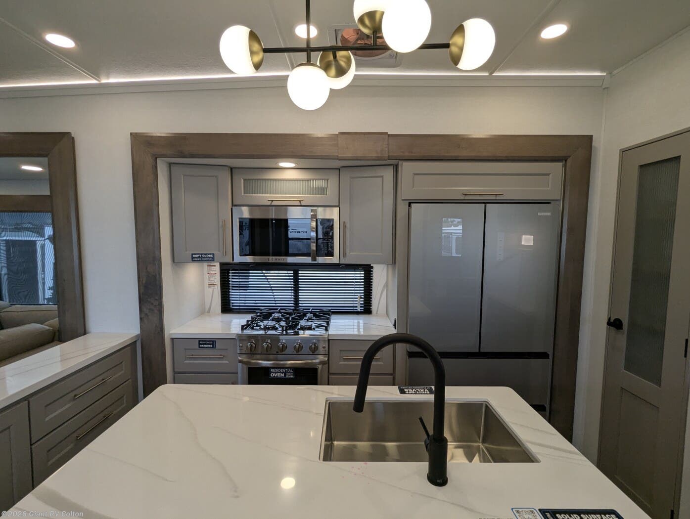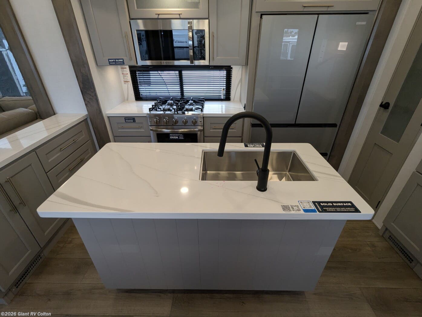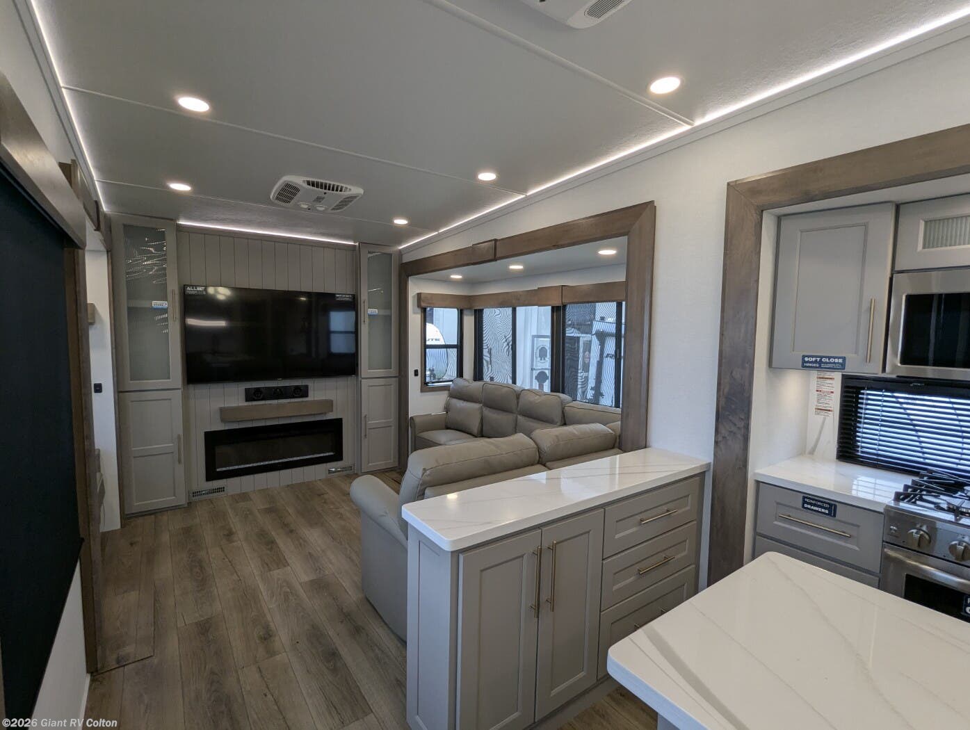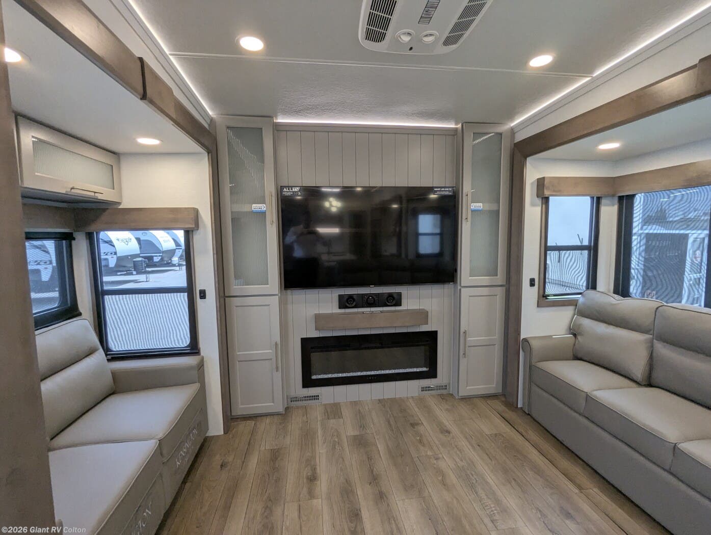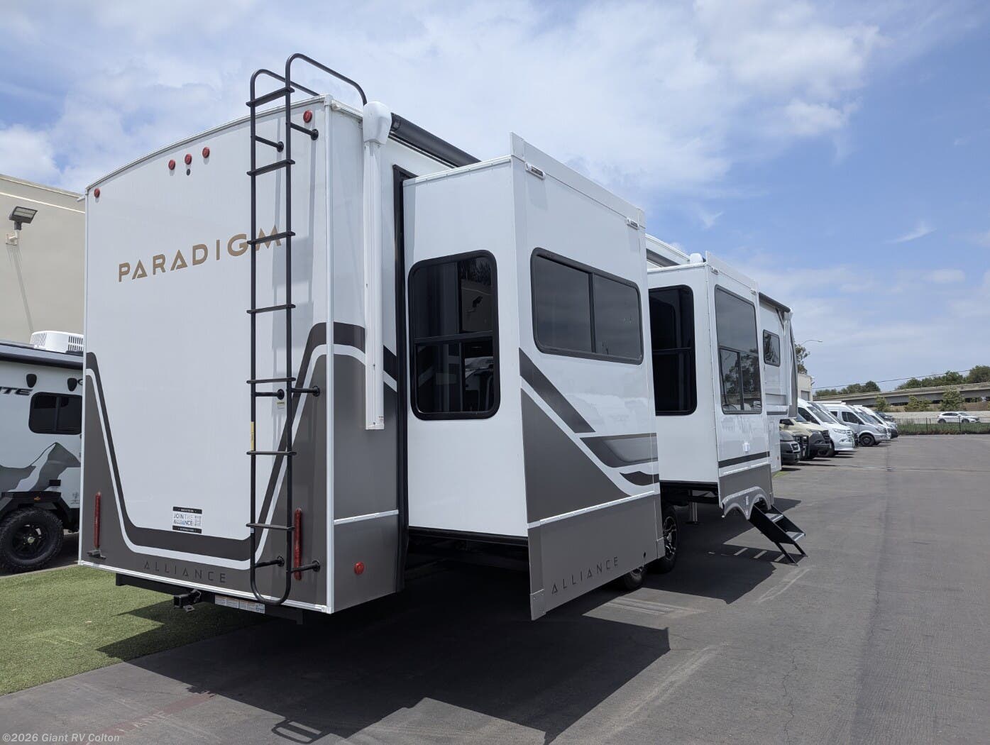 Embark on luxury RV getaways with the 2025 Alliance RV Paradigm 375RD fifth wheel at Giant RV in California! Perfect for families, this RV features a rear den with theater seating, a tri-fold sofa, and 50” LED TV, plus a front king bedroom. Five slide-outs expand the living area, with a kitchen boasting a 19 cu. ft. fridge, Insignia range, and island. A full bath with shower ensures comfort. Enjoy a 16’ power awning, exterior storage, and a 98.3-gal fresh water tank. Equipped with three 13,500 BTU A/Cs, a 40,000 BTU furnace, and 6-point hydraulic leveling.