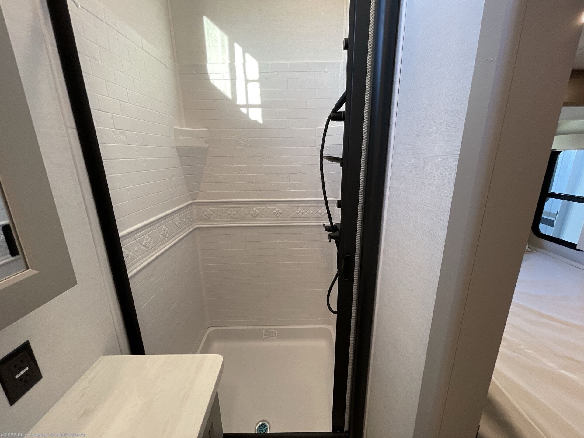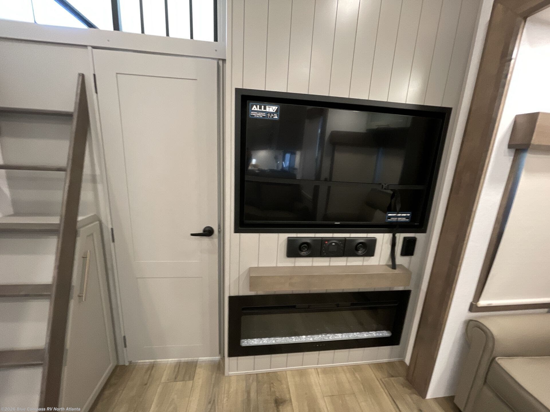 A spacious unit with sleeping for eight with plenty of choices to suit everyone! There is a front private bedroom with a king size bed that offers a large full front closet that has also been prepped for a washer and dryer if you choose that option. The front bath features a 40" x 30" shower and dual entry. Head down to the kitchen and living space at the bottom of the stairs to find a curbside slide that houses the 19 cu. ft. residential refrigerator, a pantry, and a swivel table and desk. As you continue on toward the rear of this coach, you will find a spacious living area along the roadside with a 50" Smart TV and a fireplace, a sofa sleeper slide, and a dual reclining loveseat. This makes a great gathering place for television watching, game playing, and even added sleeping space if needed at night. The rear private bedroom with its own private bath features a queen bed, two closets, and a Smart TV as well. The multipurpose loft area above can be accessed just before this rear bedroom entry by a ladder, and it is perfect for extra storage, or it can be used for added sleeping that the kiddos are sure to love.