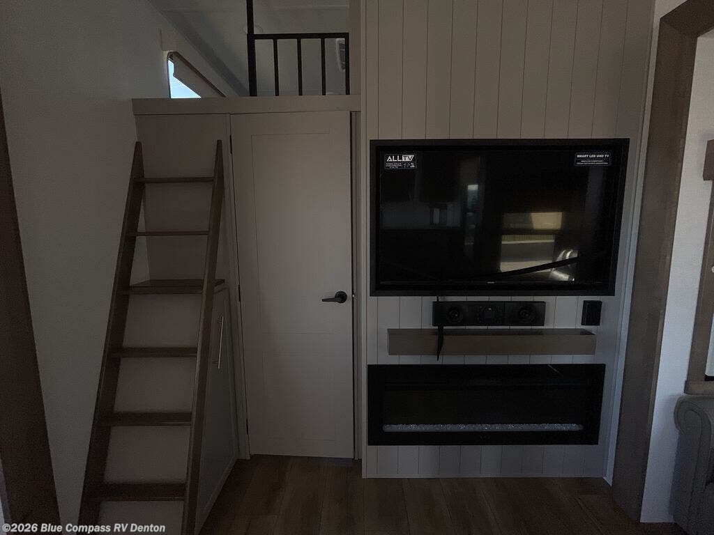 A spacious unit with sleeping for eight with plenty of choices to suit everyone! There is a front private bedroom with a king size bed that offers a large full front closet that has also been prepped for a washer and dryer if you choose that option. The front bath features a 40" x 30" shower and dual entry. Head down to the kitchen and living space at the bottom of the stairs to find a curbside slide that houses the 19 cu. ft. residential refrigerator, a pantry, and a swivel table and desk. As you continue on toward the rear of this coach, you will find a spacious living area along the roadside with a 50" Smart TV and a fireplace, a sofa sleeper slide, and a dual reclining loveseat. This makes a great gathering place for television watching, game playing, and even added sleeping space if needed at night. The rear private bedroom with its own private bath features a queen bed, two closets, and a Smart TV as well. The multipurpose loft area above can be accessed just before this rear bedroom entry by a ladder, and it is perfect for extra storage, or it can be used for added sleeping that the kiddos are sure to love.