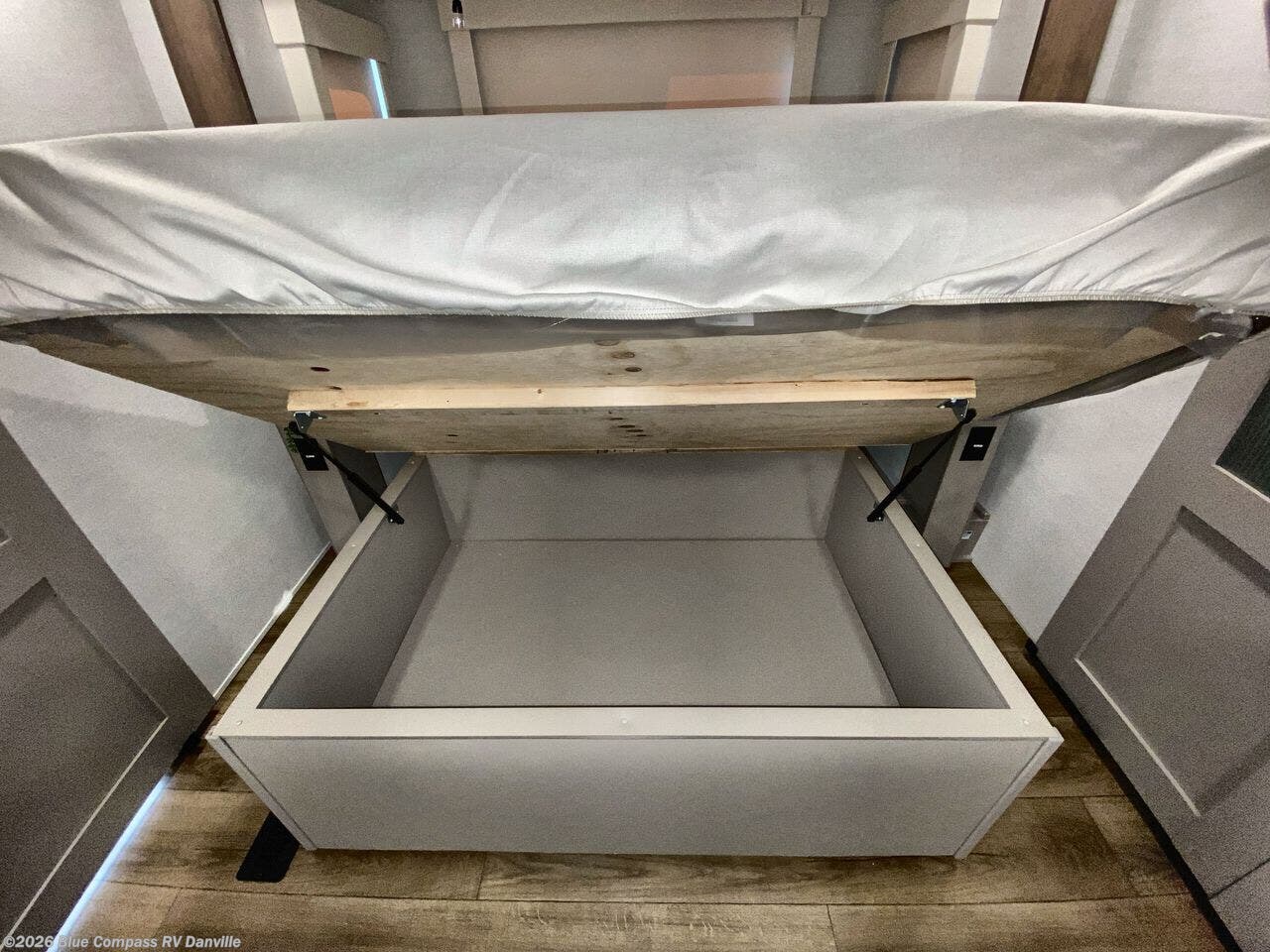 A spacious unit with sleeping for eight with plenty of choices to suit everyone! There is a front private bedroom with a king size bed that offers a large full front closet that has also been prepped for a washer and dryer if you choose that option. The front bath features a 40" x 30" shower and dual entry. Head down to the kitchen and living space at the bottom of the stairs to find a curbside slide that houses the 19 cu. ft. residential refrigerator, a pantry, and a swivel table and desk. As you continue on toward the rear of this coach, you will find a spacious living area along the roadside with a 50" Smart TV and a fireplace, a sofa sleeper slide, and a dual reclining loveseat. This makes a great gathering place for television watching, game playing, and even added sleeping space if needed at night. The rear private bedroom with its own private bath features a queen bed, two closets, and a Smart TV as well. The multipurpose loft area above can be accessed just before this rear bedroom entry by a ladder, and it is perfect for extra storage, or it can be used for added sleeping that the kiddos are sure to love.