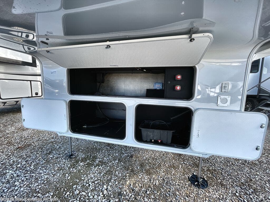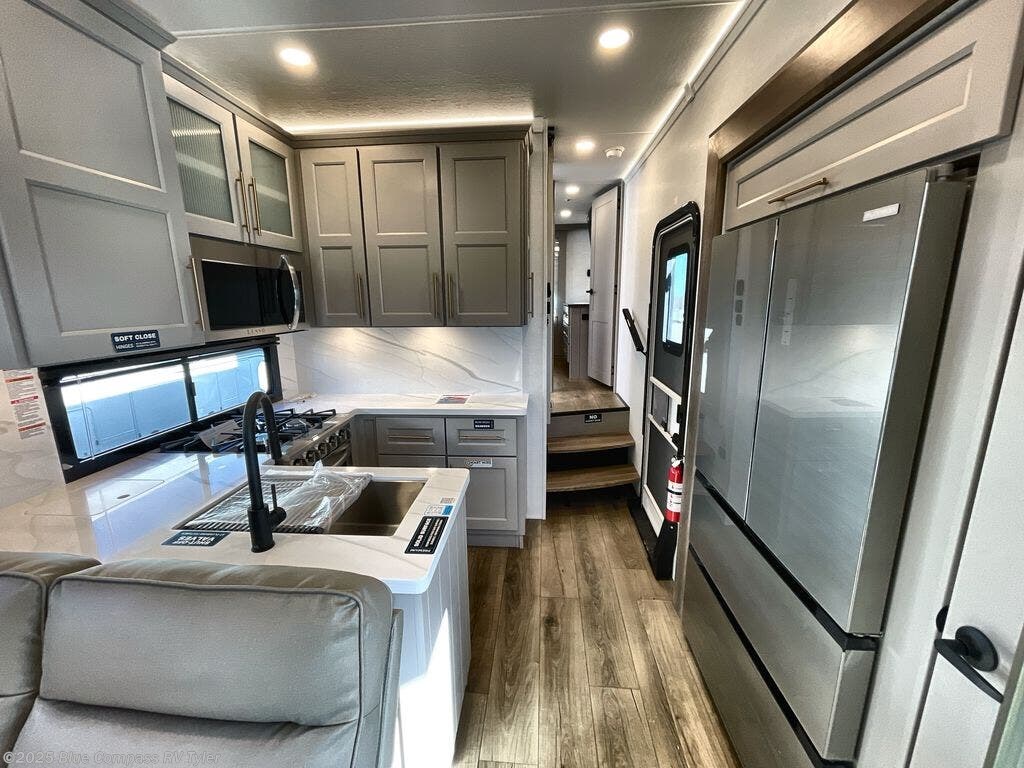 The Paradigm fifth wheels by Alliance RV are functional, high-quality, and luxurious for an unforgettable camping experience. There are three A/C units and a 40K BTU furnace to keep you comfortable year around, and you'll appreciate additional convenient amenities, like the all-in-one enclosed/heated utility center and the color coded and numbered wiring. A Rota-Flex pin box comes standard for hassle-free towing, along with Super-G 4,400 lb. rated tires and Dexter 7,000 lb. axles. You'll love the kitchen with its LG solid surface countertops and Lusso range, plus there is LED motion lighting in the pantry and a Maxx fan with a rain sensor to keep everything fresh when making dinner. Each model also includes an HD Smart TV in the living room and bedroom, plus a Winegard Air 360 antenna to keep you connected to the outside world. And of course there are a variety of options you can choose from to further customize your fifth wheel; dual pane windows, Super Solar Plus, slide out awning toppers, and generator prep or a generator to name a few!