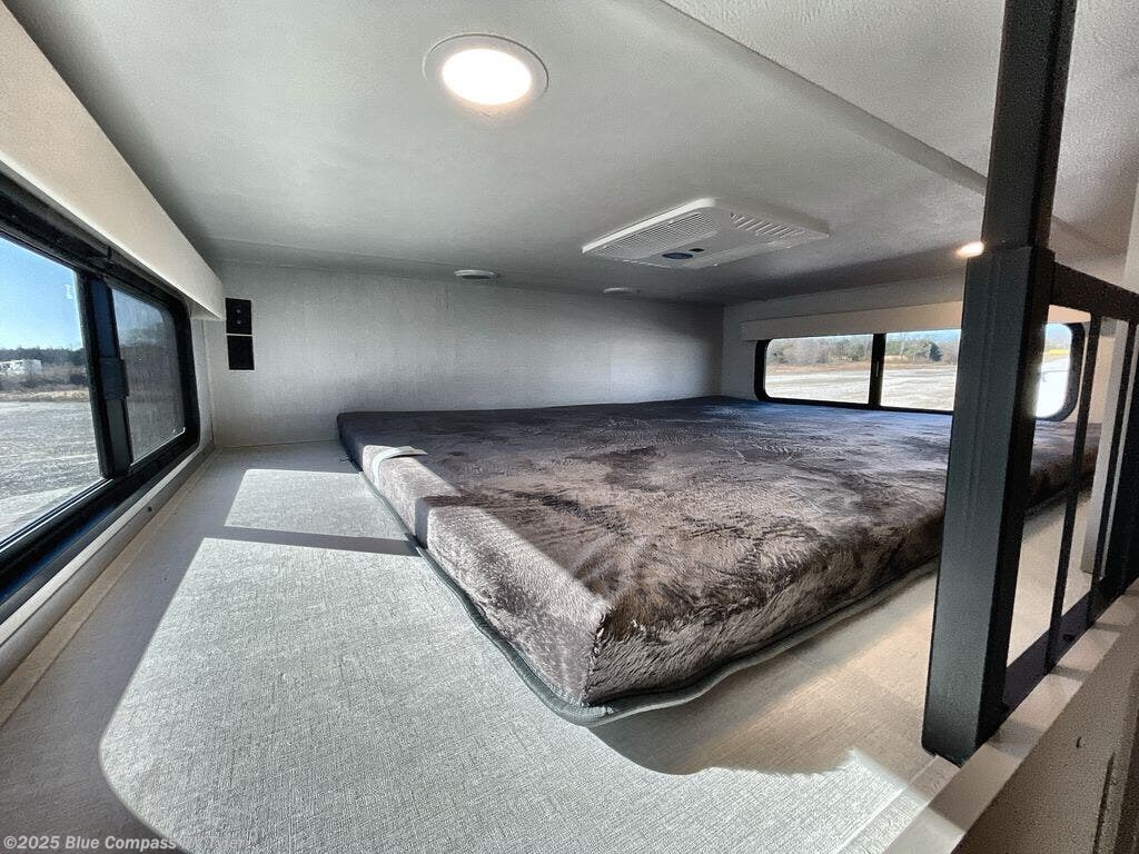 A spacious unit with sleeping for eight with plenty of choices to suit everyone! There is a front private bedroom with a king size bed that offers a large full front closet that has also been prepped for a washer and dryer if you choose that option. The front bath features a 40" x 30" shower and dual entry. Head down to the kitchen and living space at the bottom of the stairs to find a curbside slide that houses the 19 cu. ft. residential refrigerator, a pantry, and a swivel table and desk. As you continue on toward the rear of this coach, you will find a spacious living area along the roadside with a 50" Smart TV and a fireplace, a sofa sleeper slide, and a dual reclining loveseat. This makes a great gathering place for television watching, game playing, and even added sleeping space if needed at night. The rear private bedroom with its own private bath features a queen bed, two closets, and a Smart TV as well. The multipurpose loft area above can be accessed just before this rear bedroom entry by a ladder, and it is perfect for extra storage, or it can be used for added sleeping that the kiddos are sure to love.