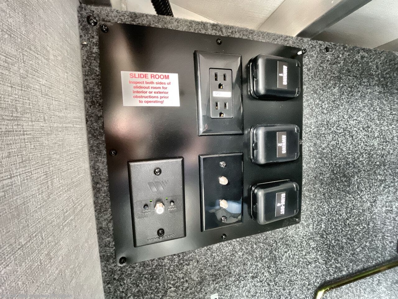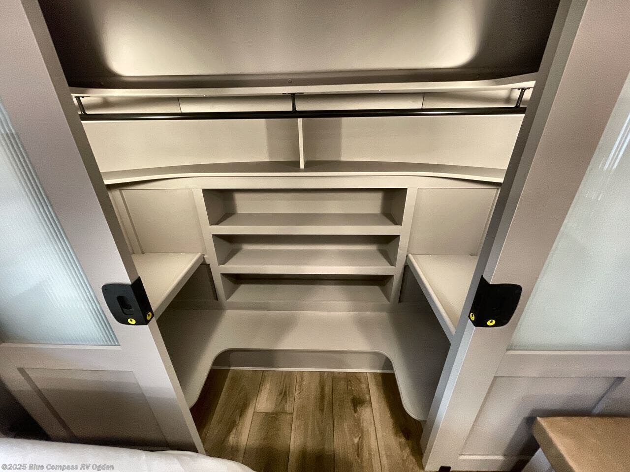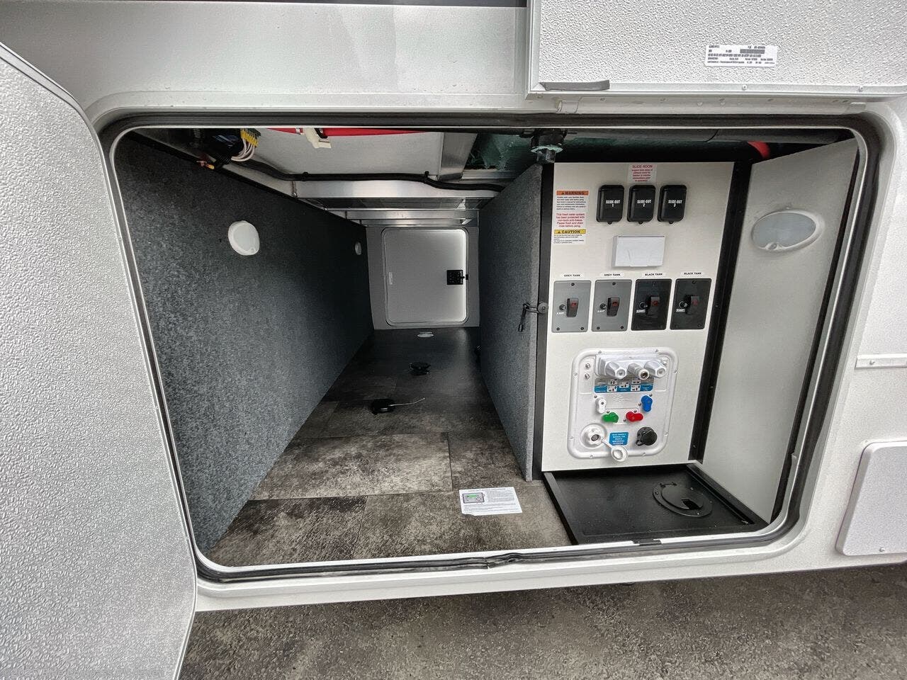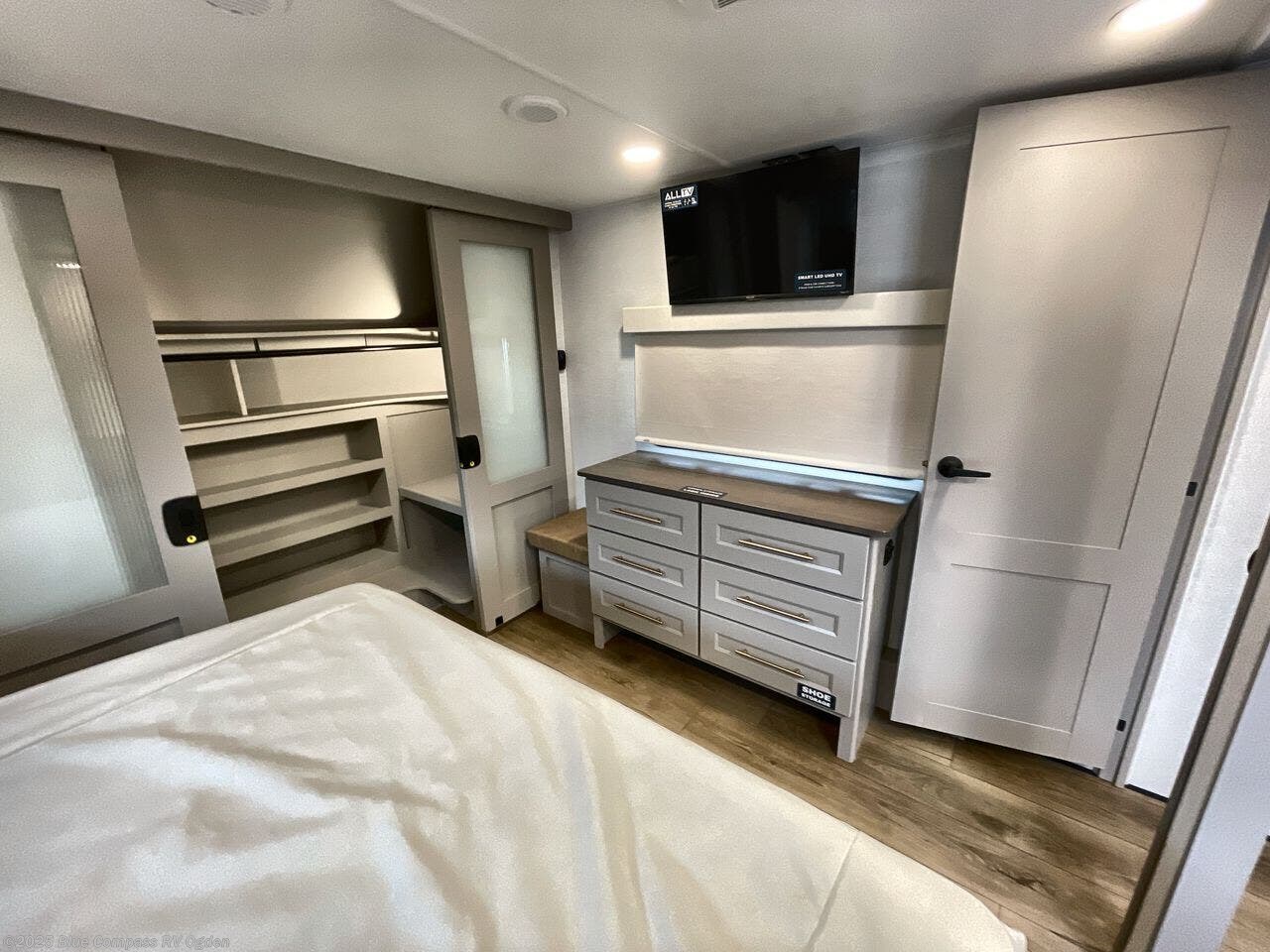 A spacious unit with sleeping for eight with plenty of choices to suit everyone! There is a front private bedroom with a king size bed that offers a large full front closet that has also been prepped for a washer and dryer if you choose that option. The front bath features a 40" x 30" shower and dual entry. Head down to the kitchen and living space at the bottom of the stairs to find a curbside slide that houses the 19 cu. ft. residential refrigerator, a pantry, and a swivel table and desk. As you continue on toward the rear of this coach, you will find a spacious living area along the roadside with a 50" Smart TV and a fireplace, a sofa sleeper slide, and a dual reclining loveseat. This makes a great gathering place for television watching, game playing, and even added sleeping space if needed at night. The rear private bedroom with its own private bath features a queen bed, two closets, and a Smart TV as well. The multipurpose loft area above can be accessed just before this rear bedroom entry by a ladder, and it is perfect for extra storage, or it can be used for added sleeping that the kiddos are sure to love.