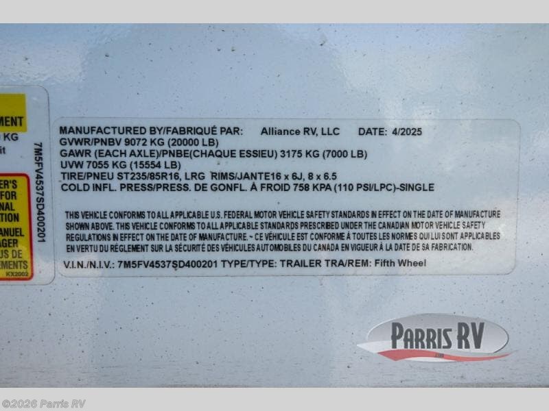Request More Info on this 2025 Alliance RV Valor 40V13 Offered for sale by Parris RV