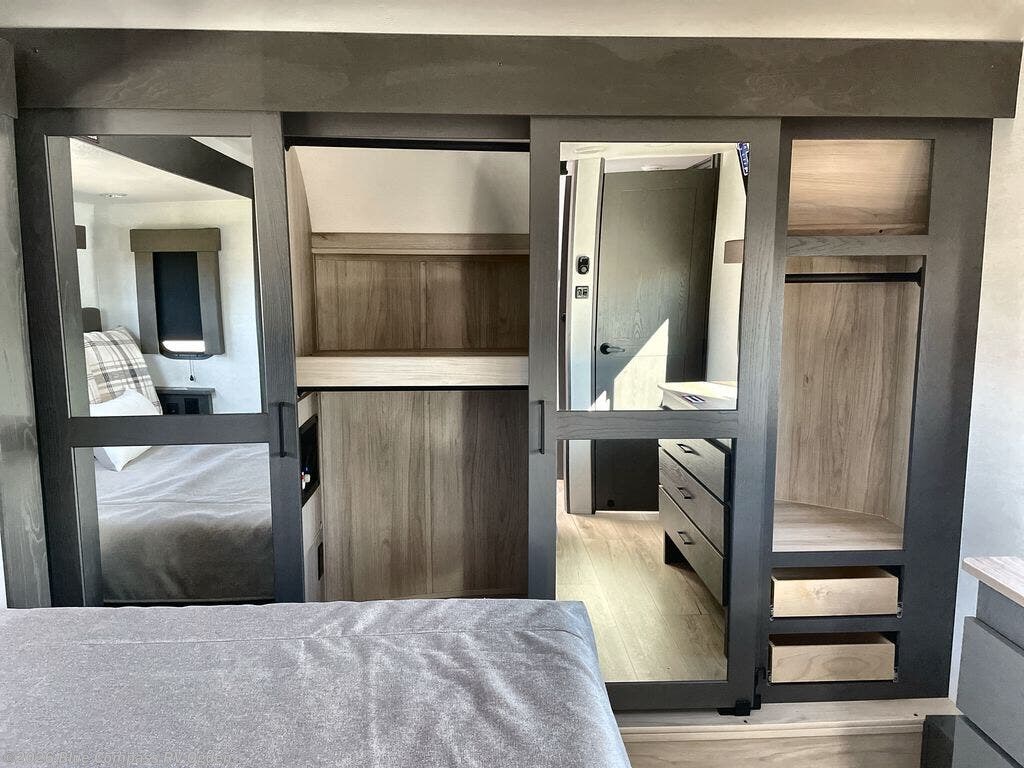 You can bring your toys with you wherever you go with any one of these Alliance RV Valor toy hauler fifth wheels! They are adventure-ready with a quality build from the walk on roof with seamless PVC roof covering to the commercial grade vinyl flooring and MorRyde CRE3000 suspension system. The Performance Running Gear package comes with a 101" wide-body benchmark chassis platform, 7,000 lb. Dexter axles, and a space enhancing drop frame storage compartment to pack in all your riding gear. You can even go off-gridding thanks to the Off the Grid Pack that has two 400 watt solar panels, generator prep, a 40 amp charge controller, and a 100 amp hour lithium iron phosphate battery. Some of the interior comforts you will enjoy are the hardwood cabinet doors and drawers, solid surface kitchen countertops, and commercial grade vinyl flooring with no carpet to make clean up a breeze. The Valor toy haulers are also the Masters of 12 Volt with USB charging station throughout, a stainless steel refrigerator, and more 12 volt features to make camping hassle-free!
