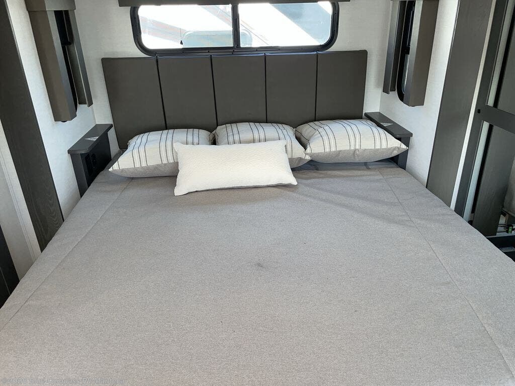 You can bring your toys with you wherever you go with any one of these Alliance RV Valor toy hauler fifth wheels! They are adventure-ready with a quality build from the walk on roof with seamless PVC roof covering to the commercial grade vinyl flooring and MorRyde CRE3000 suspension system. The Performance Running Gear package comes with a 101" wide-body benchmark chassis platform, 7,000 lb. Dexter axles, and a space enhancing drop frame storage compartment to pack in all your riding gear. You can even go off-gridding thanks to the Off the Grid Pack that has two 400 watt solar panels, generator prep, a 40 amp charge controller, and a 100 amp hour lithium iron phosphate battery. Some of the interior comforts you will enjoy are the hardwood cabinet doors and drawers, solid surface kitchen countertops, and commercial grade vinyl flooring with no carpet to make clean up a breeze. The Valor toy haulers are also the Masters of 12 Volt with USB charging station throughout, a stainless steel refrigerator, and more 12 volt features to make camping hassle-free!