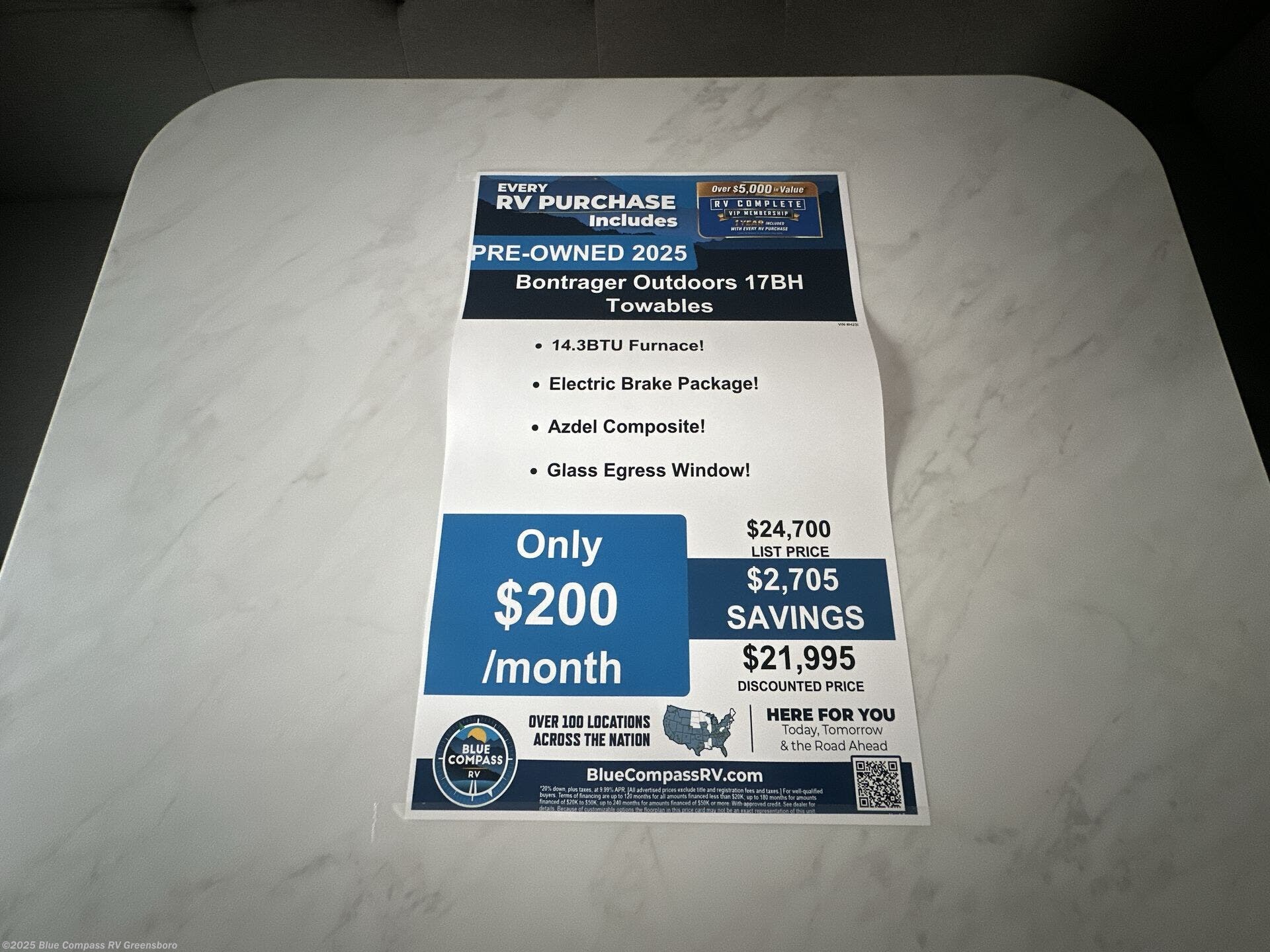 Request More Info on this 2025 Bontrager Outdoors Standard 17BH Offered for sale by Blue Compass RV Greensboro