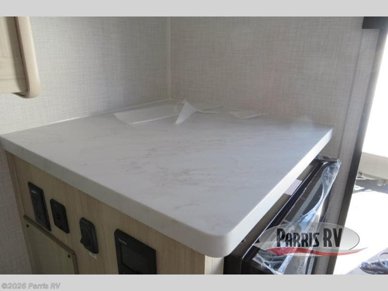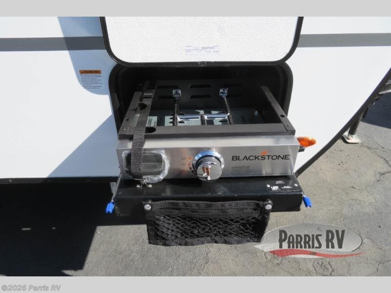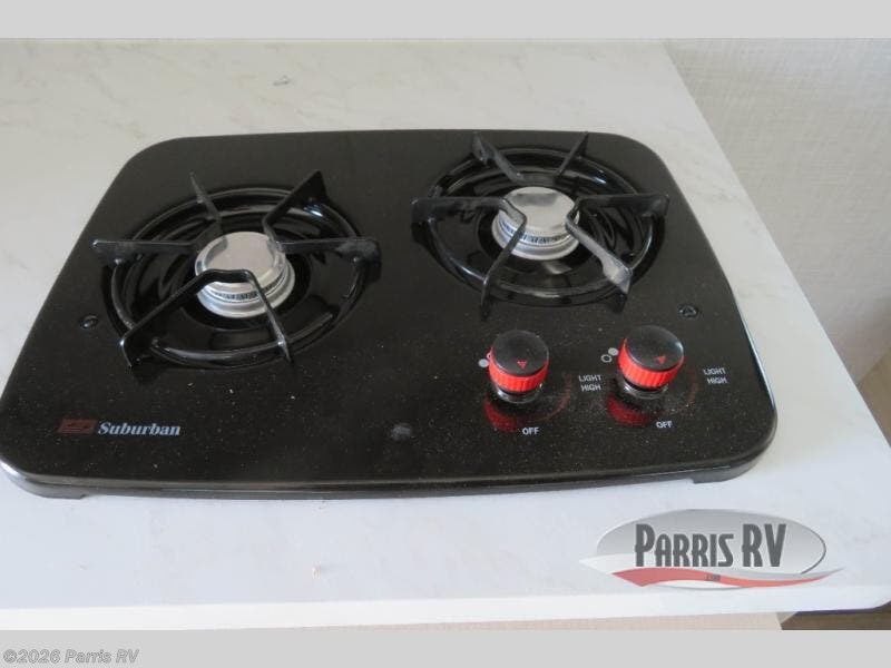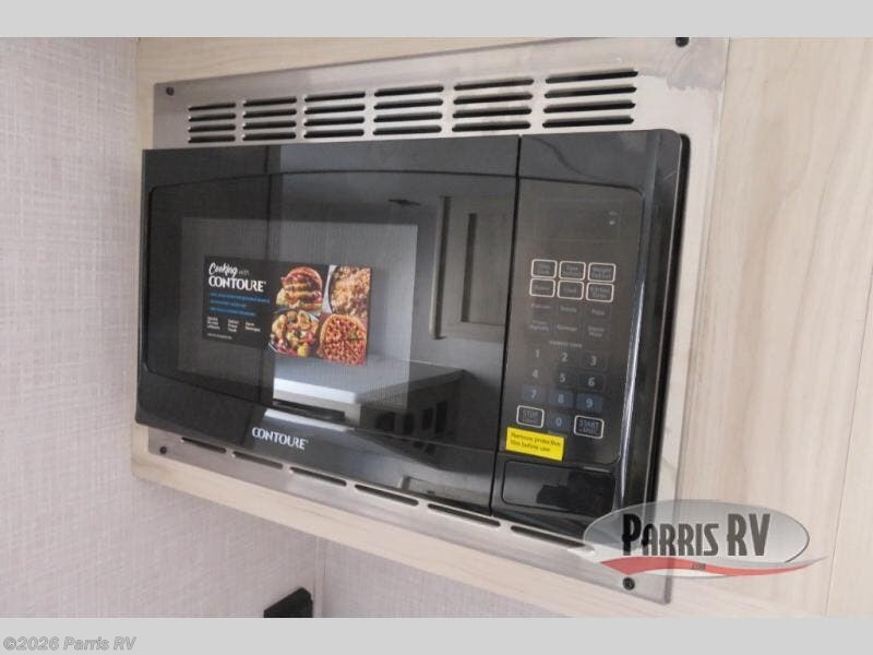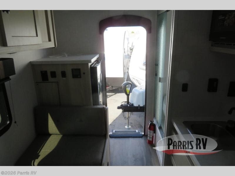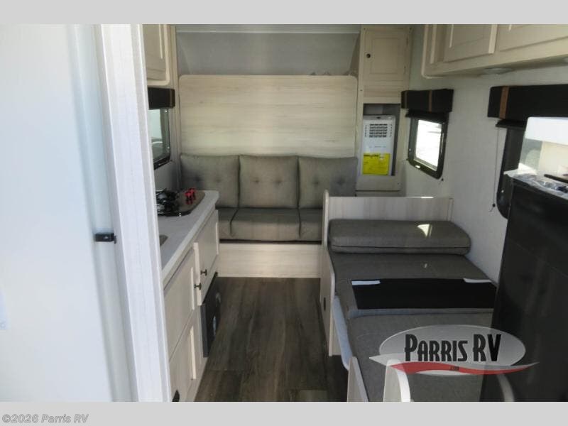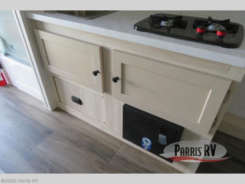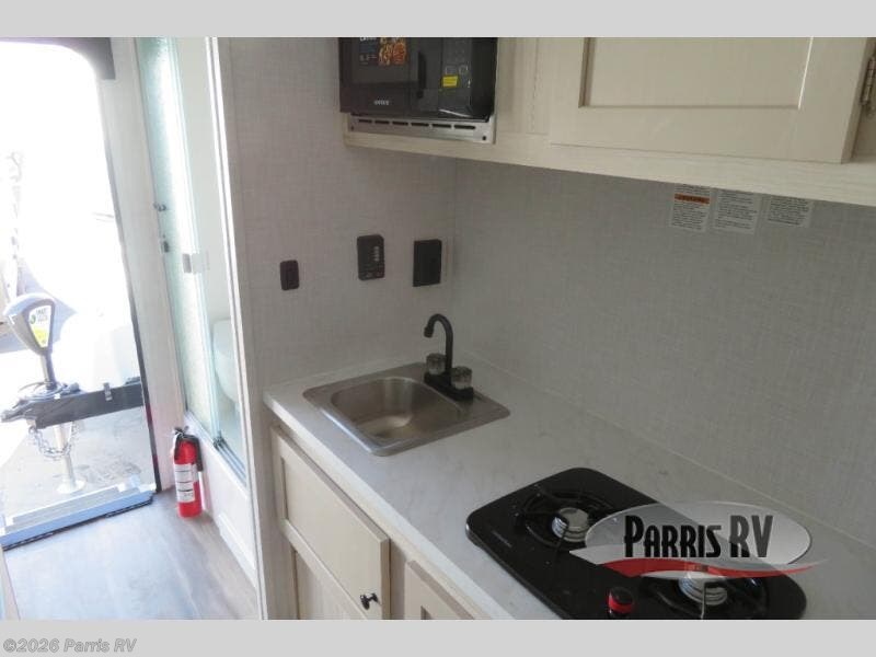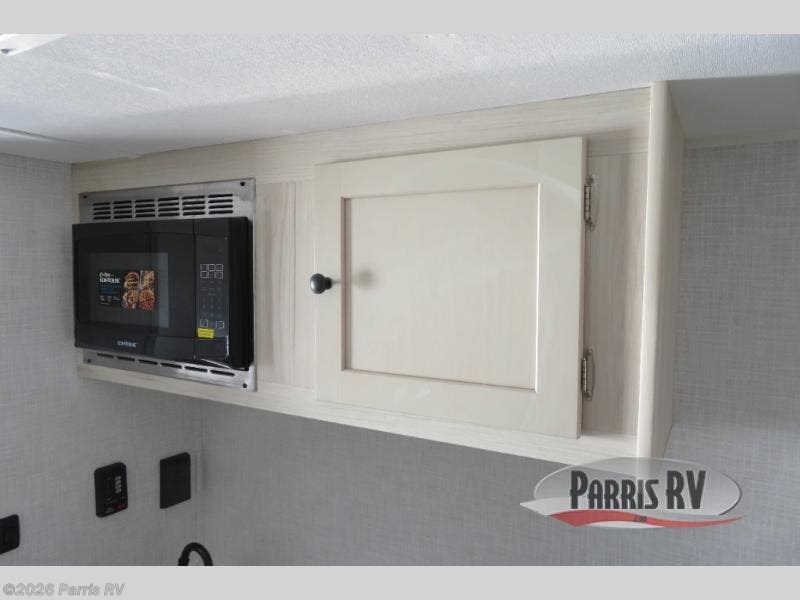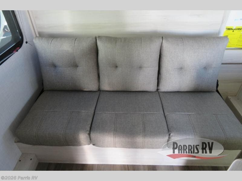 This versatile trailer gives you the amenities you need without having to increase the tow length to accommodate both a bedroom and seating area. With the Murphy bed design, depending on the time of day, you will have a queen bed to sleep on or you will have a sofa in its place adjacent to a nice 28" booth dinette. The dinette can also be made into added sleeping space for one more tired camper. The wet bath makes it easy to keep clean while you are camped and it's always a plus to have bathroom facilities inside your own camp, especially in the middle of the night. And, your cooking can be done either inside or out with the outdoor pull-out griddle and sink. If you prefer to cook indoors, you will find a two burner cooktop, overhead microwave oven, single bowl sink, plus a 12V refrigerator to keep your perishables fresh.