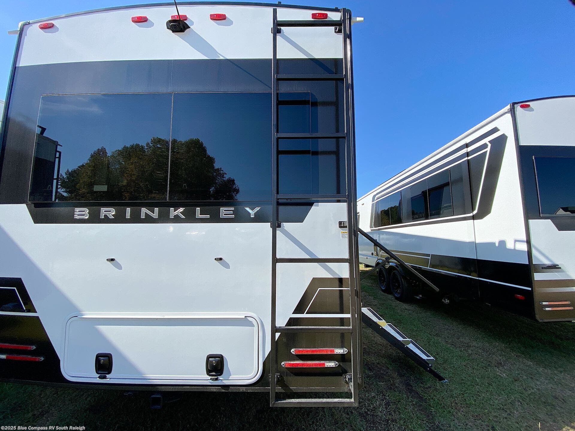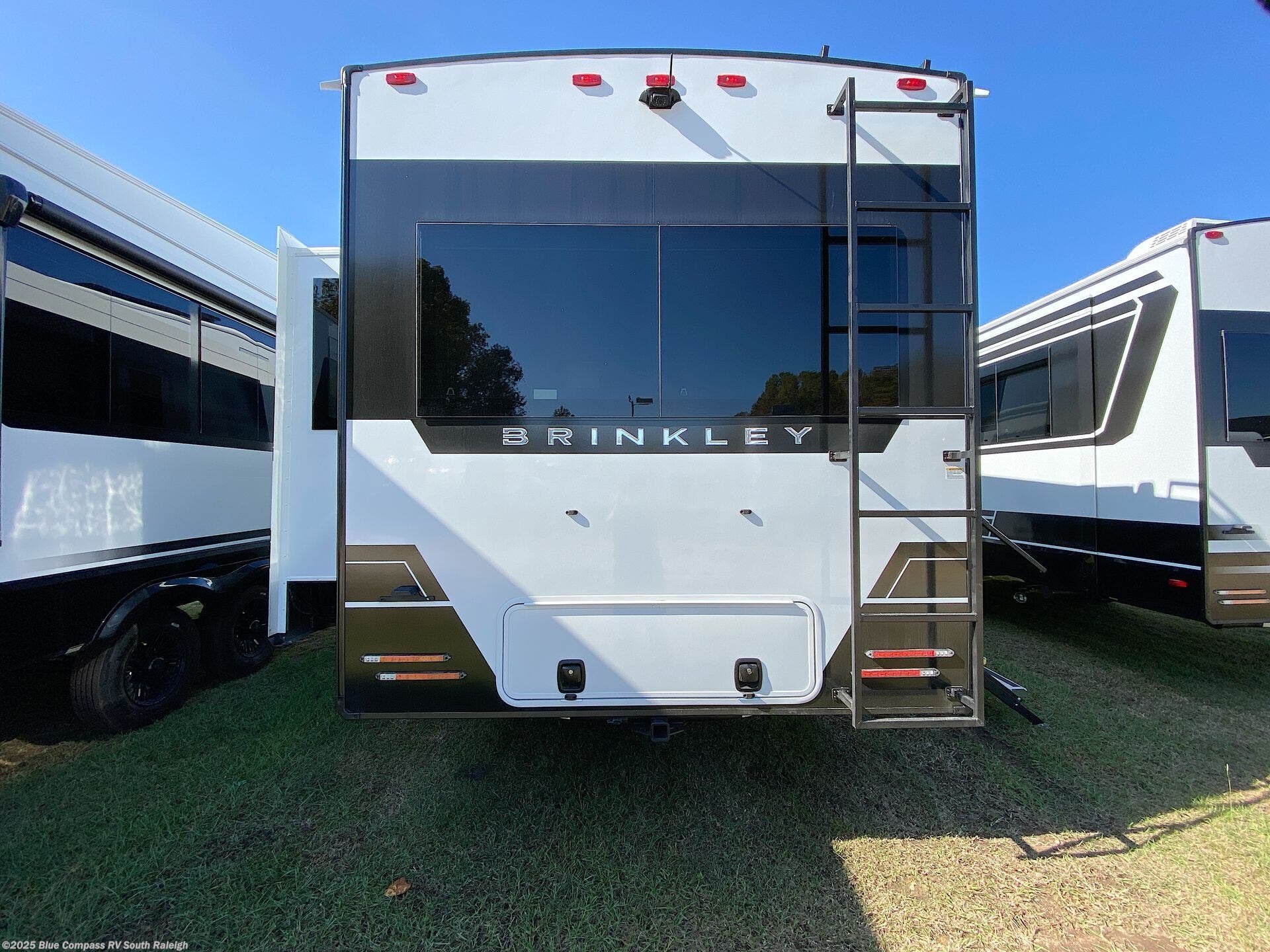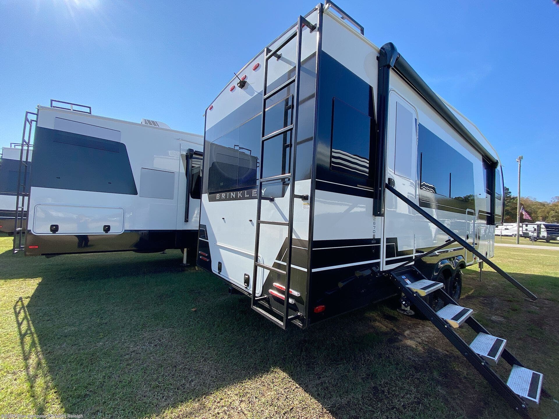 The Brinkley mid-profile Model Z fifth wheels bring you clean lines and an upscale look with plenty of style and exciting new features like the industry first brass plumbing connections. These units also feature an automotive grade front cap, plenty of exterior storage, dual exterior hot and cold showers, and wide stance leveling jacks for easy set up. Residential frameless windows provide a clean look and beautiful views, and ample electrical outlets and USB/USB-C outlets allow all of your electronics and appliances to easily be used and charged.