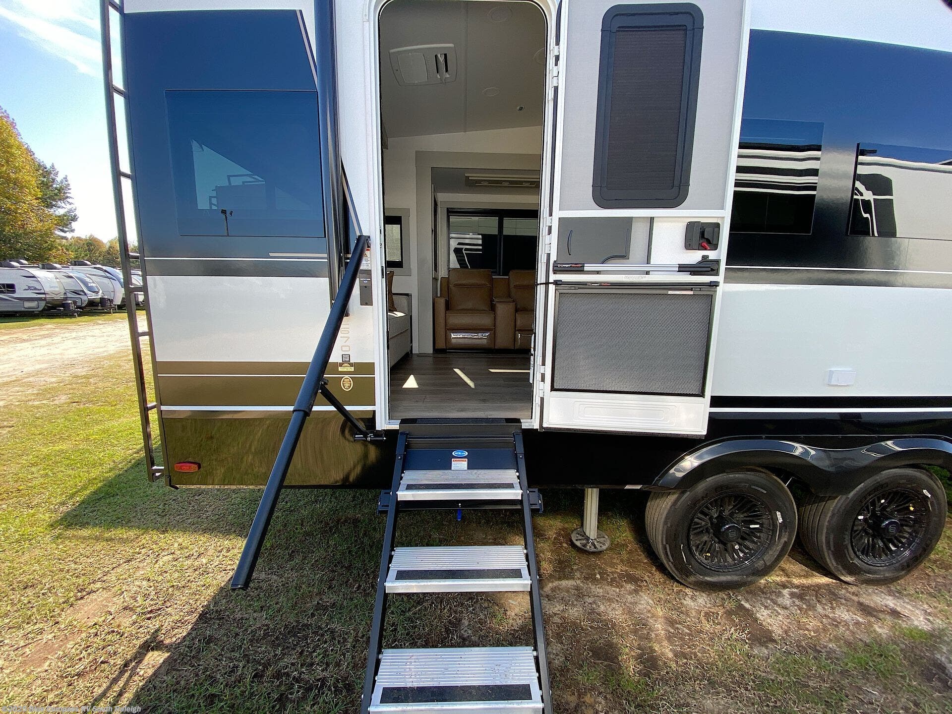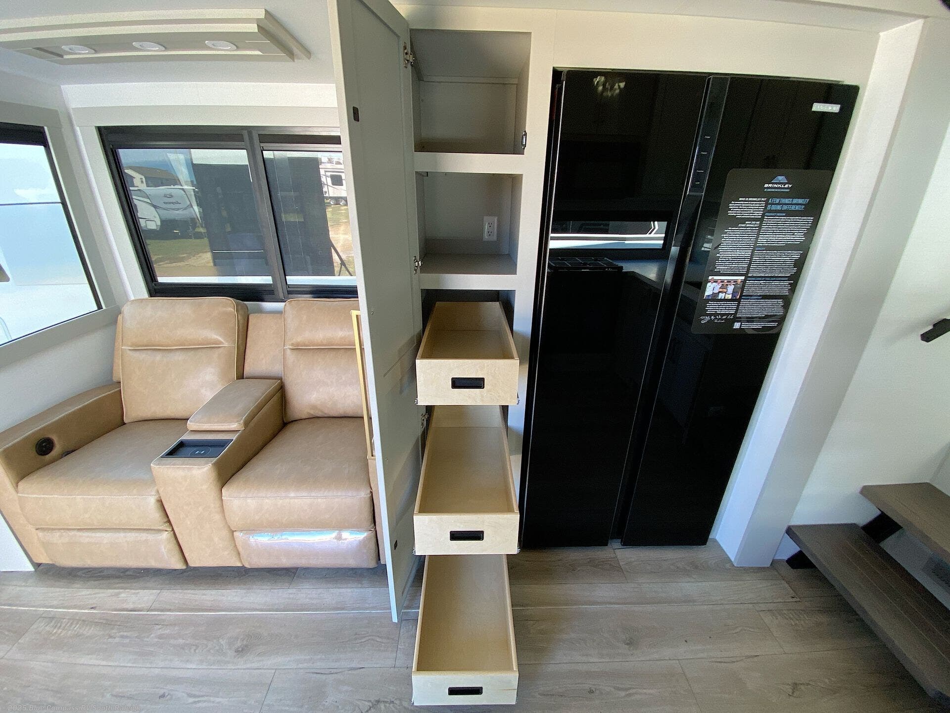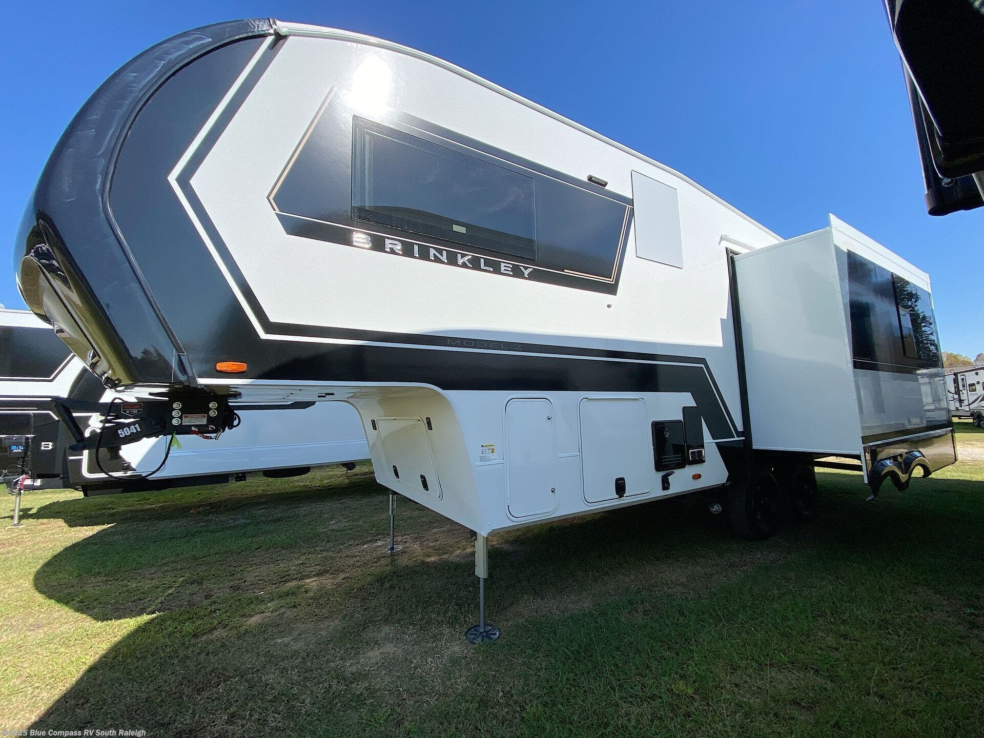 The Brinkley mid-profile Model Z fifth wheels bring you clean lines and an upscale look with plenty of style and exciting new features like the industry first brass plumbing connections. These units also feature an automotive grade front cap, plenty of exterior storage, dual exterior hot and cold showers, and wide stance leveling jacks for easy set up. Residential frameless windows provide a clean look and beautiful views, and ample electrical outlets and USB/USB-C outlets allow all of your electronics and appliances to easily be used and charged.
