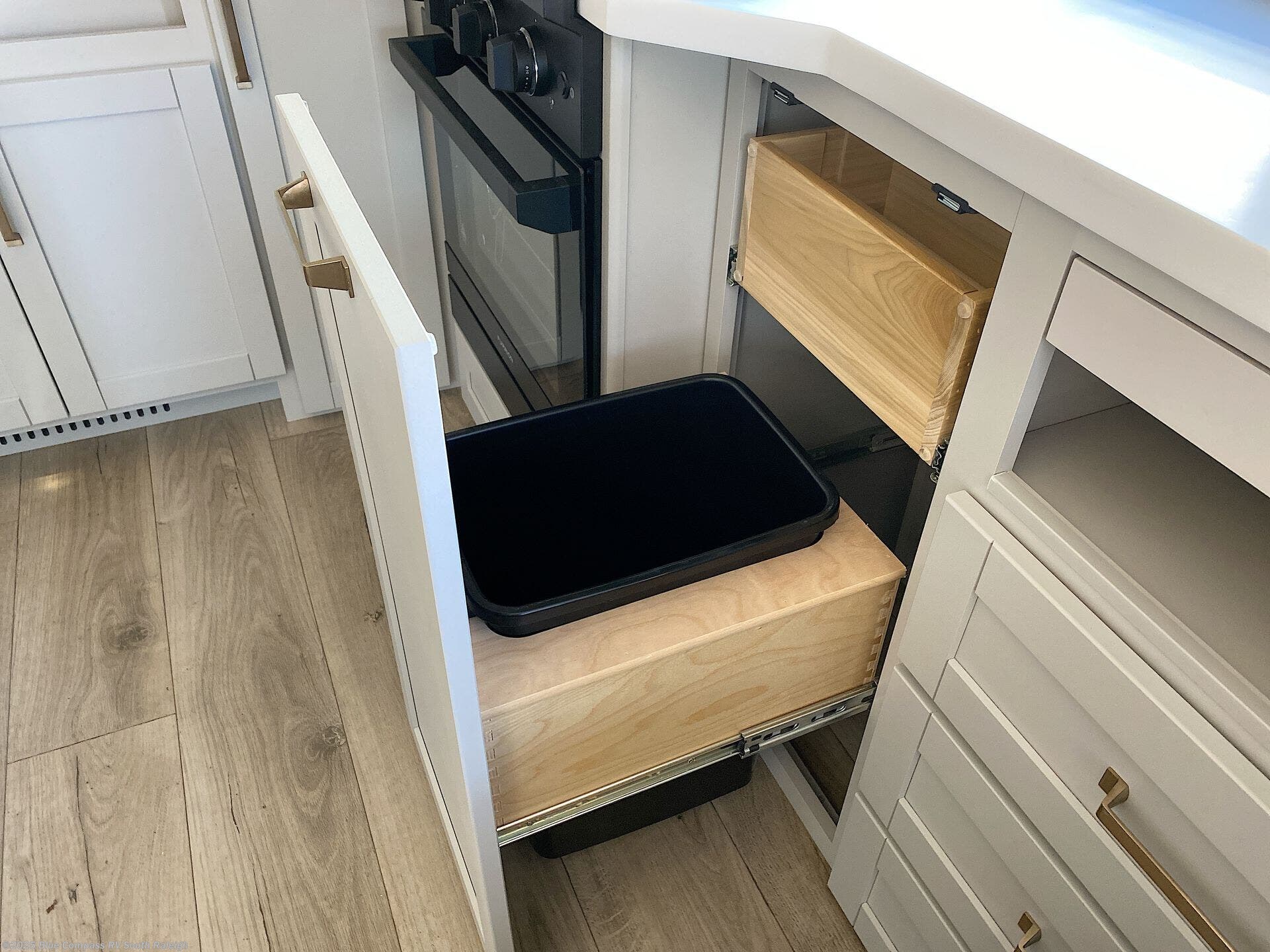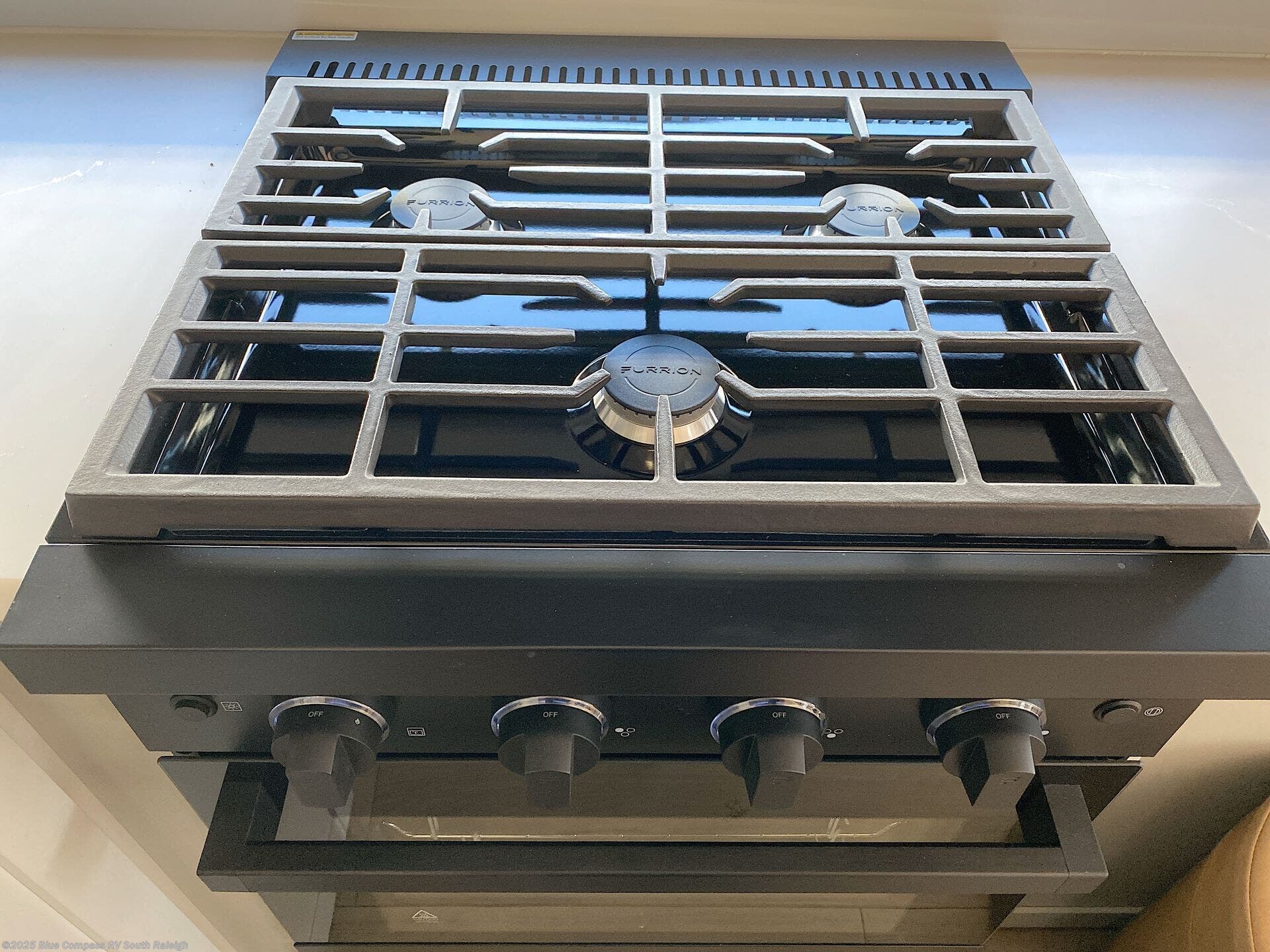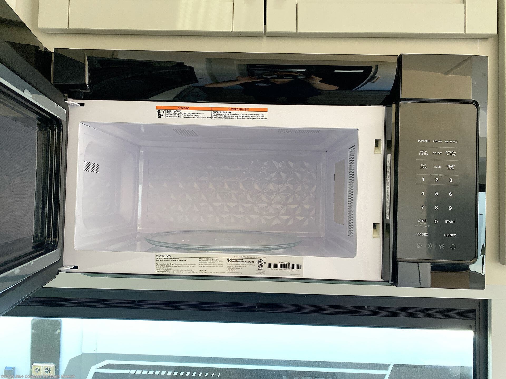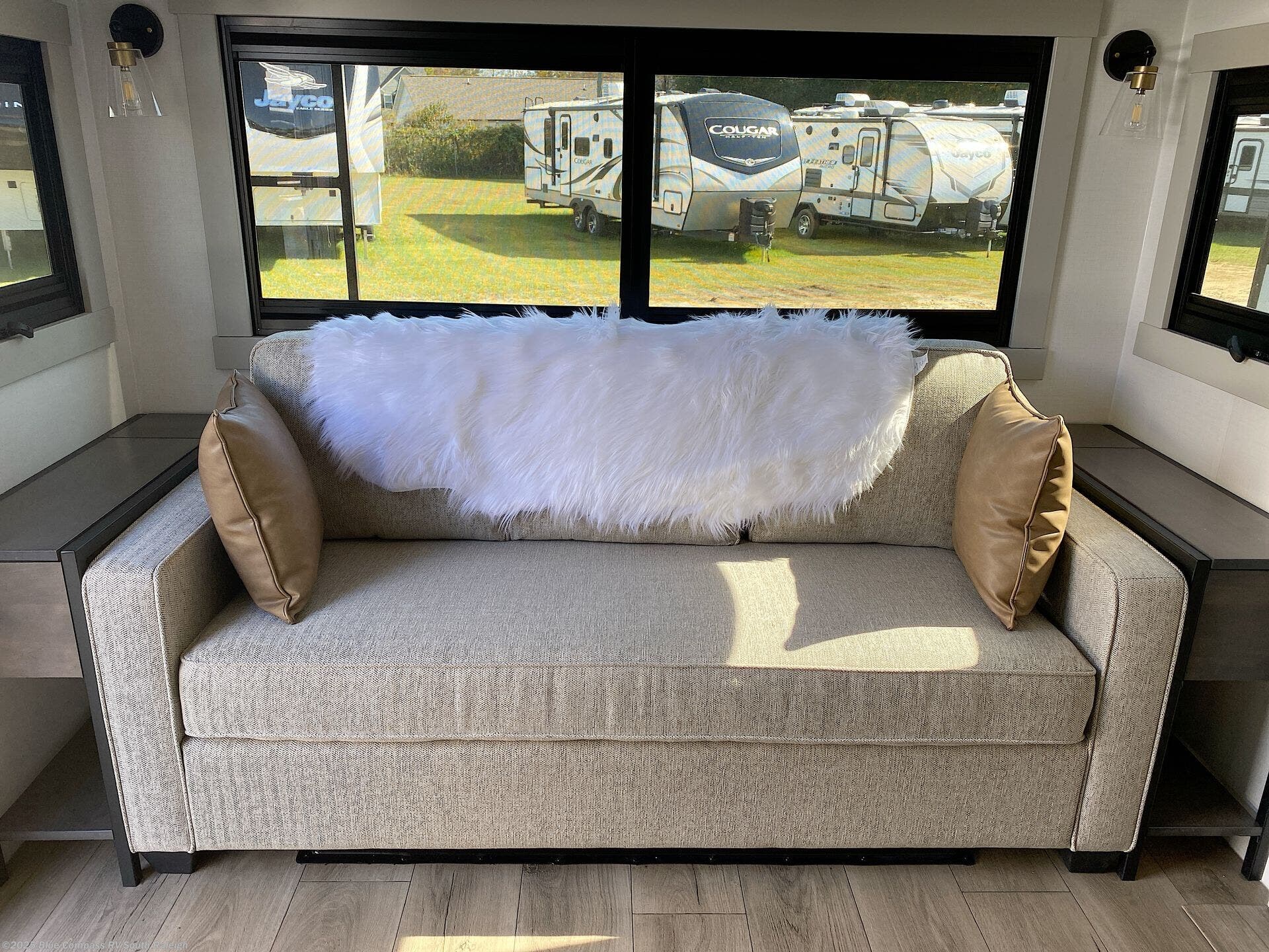 You'll love every minute spent in this luxury fifth wheel! Your crew can get comfortable in the rear living room on the 72" tri-fold sofa that converts to a 62" x 70" bed, or on the theater seating within the slide out. There is also a sliding dining table and a TV with swivel so everyone can have a good view of the movie. A full kitchen, complete with a cooktop, 30" residential microwave, and 16 cu. ft. refrigerator will let you cook and store food, and there is a handy trash bin with a Stow N' Go paper towel holder for easy clean up. The full bath will let you freshen up before heading to bed in the front private bedroom!