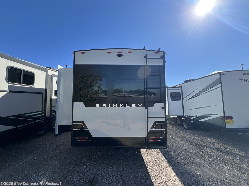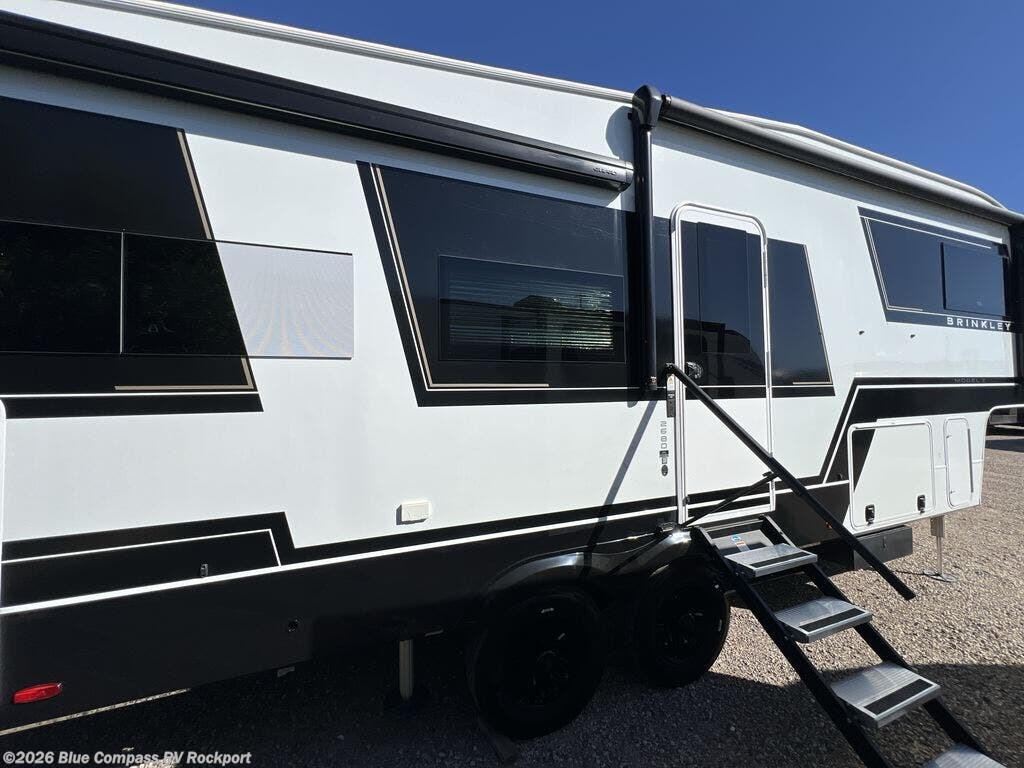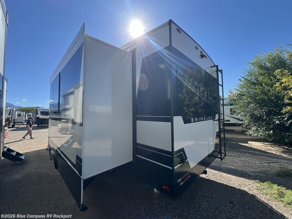 The Brinkley mid-profile Model Z fifth wheels bring you clean lines and an upscale look with plenty of style and exciting new features like the industry first brass plumbing connections. These units also feature an automotive grade front cap, plenty of exterior storage, dual exterior hot and cold showers, and wide stance leveling jacks for easy set up. Residential frameless windows provide a clean look and beautiful views, and ample electrical outlets and USB/USB-C outlets allow all of your electronics and appliances to easily be used and charged.