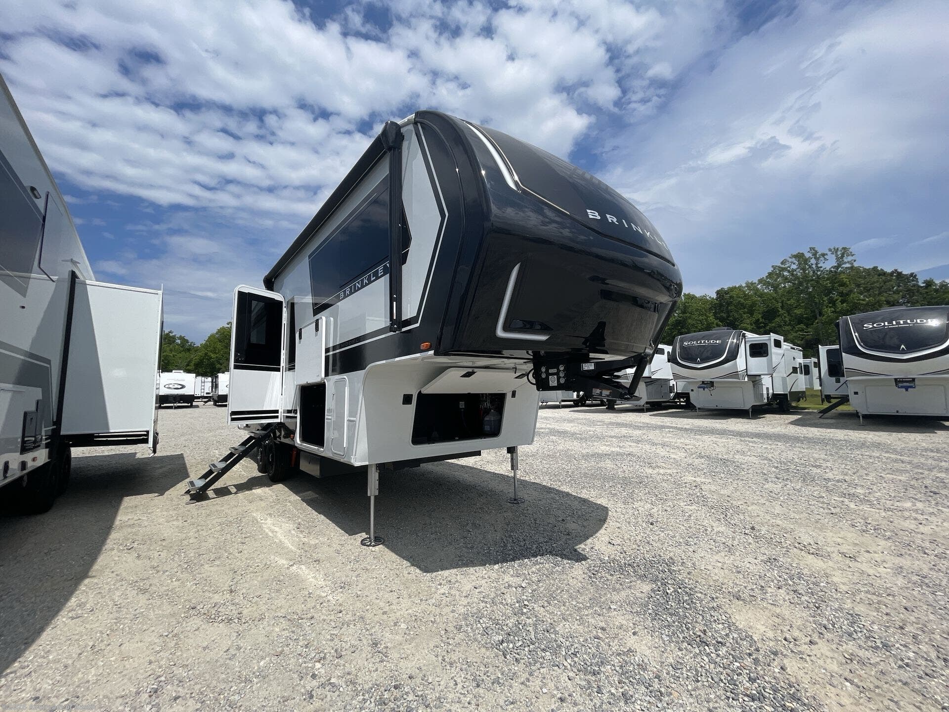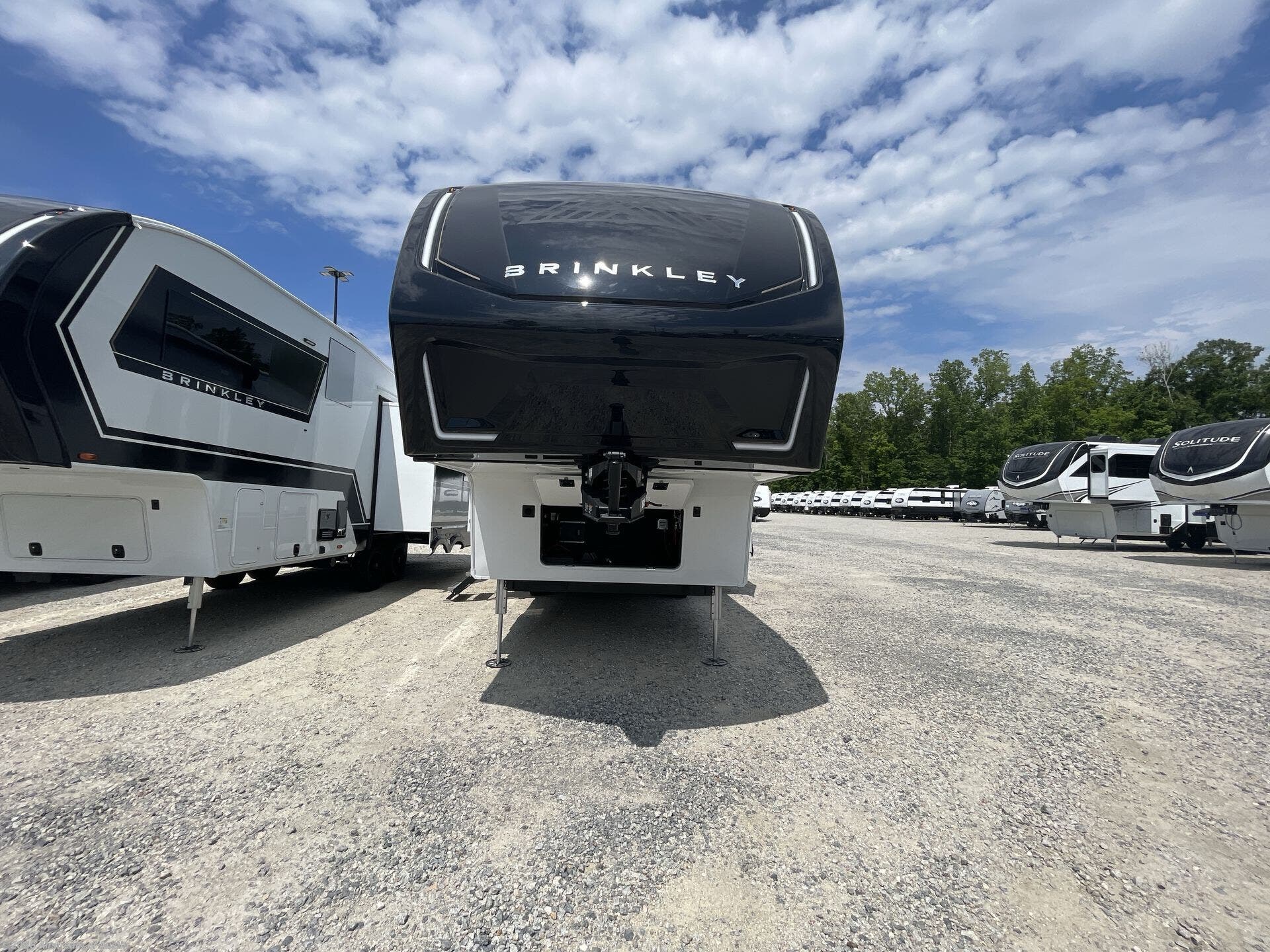 The Brinkley mid-profile Model Z fifth wheels bring you clean lines and an upscale look with plenty of style and exciting new features like the industry first brass plumbing connections. These units also feature an automotive grade front cap, plenty of exterior storage, dual exterior hot and cold showers, and wide stance leveling jacks for easy set up. Residential frameless windows provide a clean look and beautiful views, and ample electrical outlets and USB/USB-C outlets allow all of your electronics and appliances to easily be used and charged.