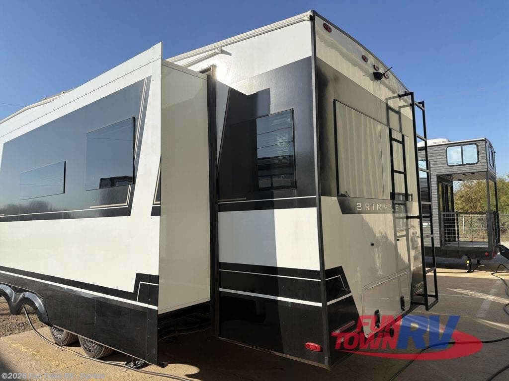 The Brinkley mid-profile Model Z fifth wheels bring you clean lines and an upscale look with plenty of style and exciting new features like the industry first brass plumbing connections. These units also feature an automotive grade front cap, plenty of exterior storage, dual exterior hot and cold showers, and wide stance leveling jacks for easy set up. Residential frameless windows provide a clean look and beautiful views, and ample electrical outlets and 6 USB/USB-C outlets allow all of your electronics and appliances to easily be used and charged.