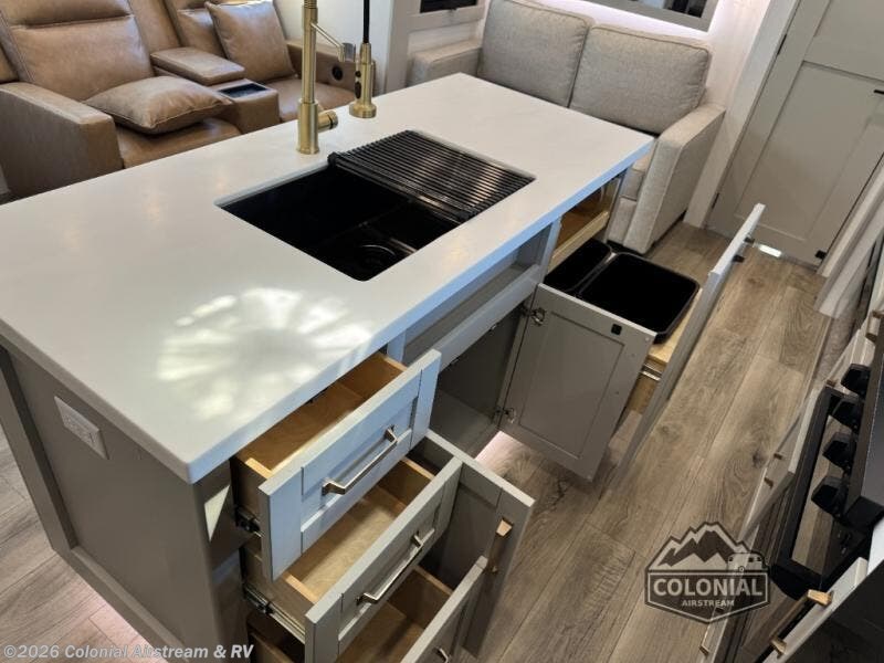 The Brinkley mid-profile Model Z fifth wheels bring you clean lines and an upscale look with plenty of style and exciting new features like the industry first brass plumbing connections. These units also feature an automotive grade front cap, plenty of exterior storage, exterior hot and cold showers, and wide stance leveling jacks for easy set up. Residential frameless windows provide a clean look and beautiful views, and ample electrical outlets and 6 USB/USB-C outlets allow all of your electronics and appliances to easily be used and charged.