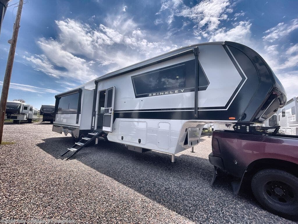 The Brinkley mid-profile Model Z fifth wheels bring you clean lines and an upscale look with plenty of style and exciting new features like the industry first brass plumbing connections. These units also feature an automotive grade front cap, plenty of exterior storage, exterior hot and cold showers, and wide stance leveling jacks for easy set up. Residential frameless windows provide a clean look and beautiful views, and ample electrical outlets and 6 USB/USB-C outlets allow all of your electronics and appliances to easily be used and charged.