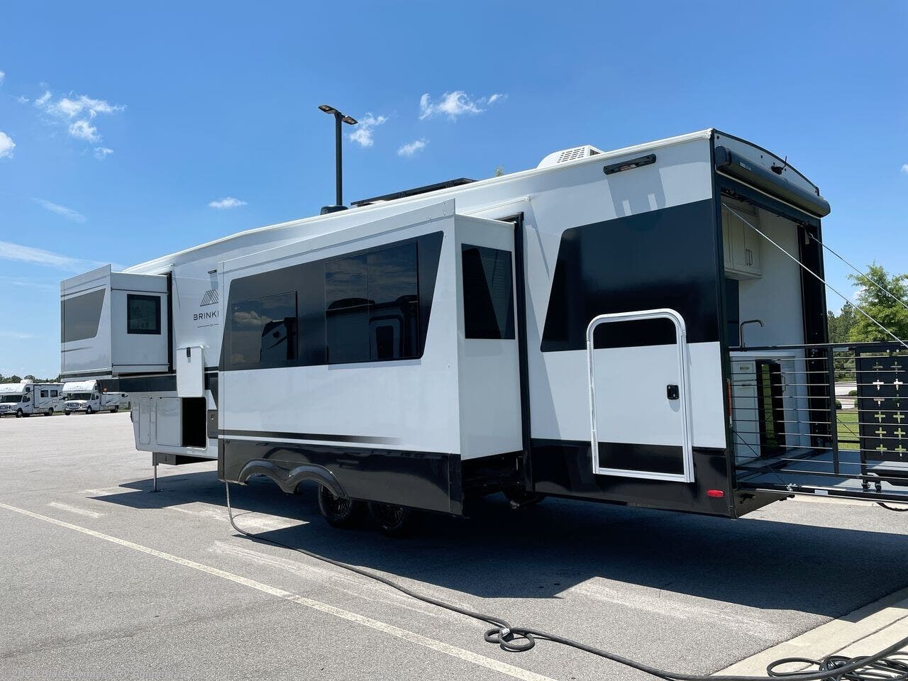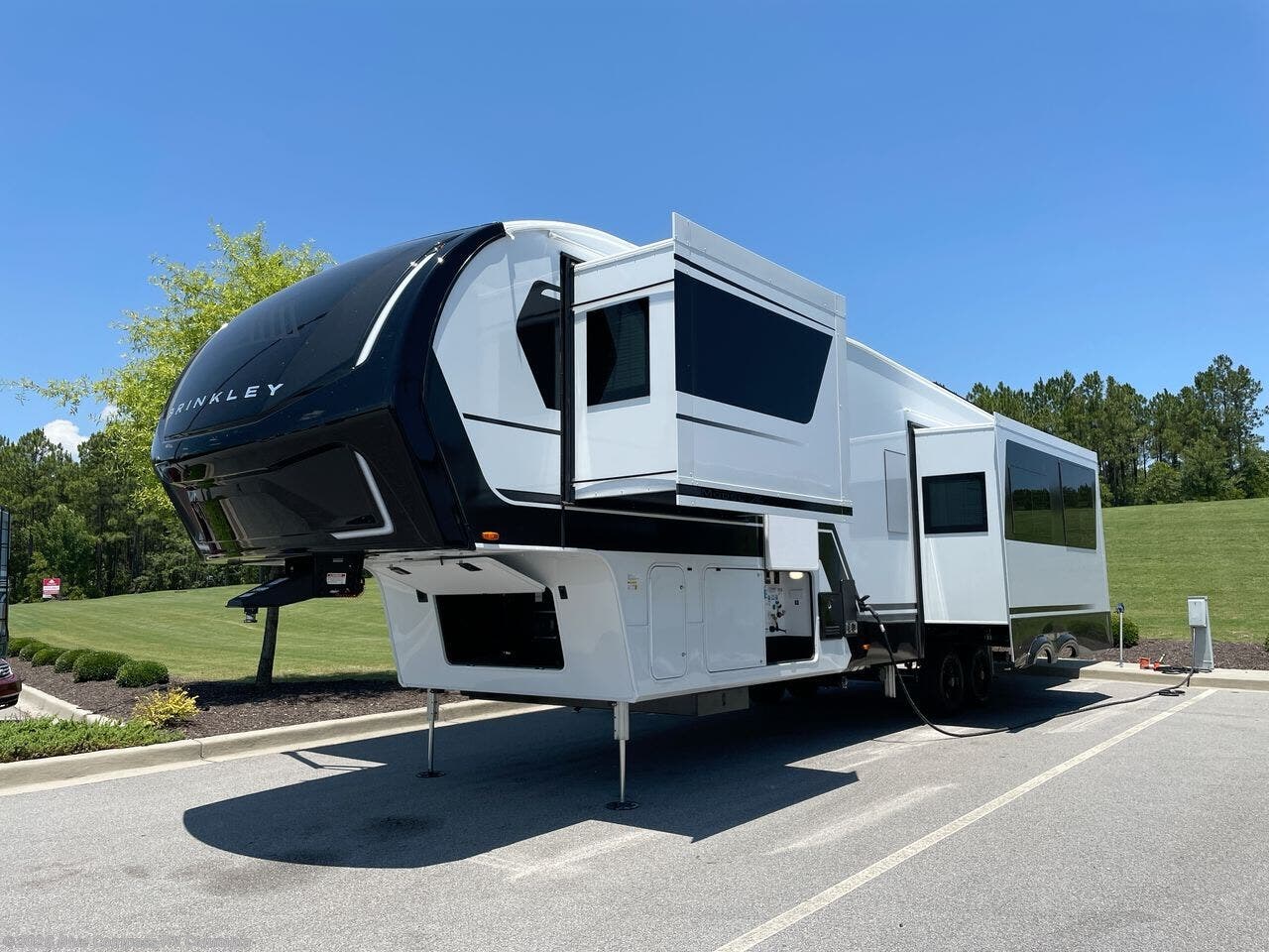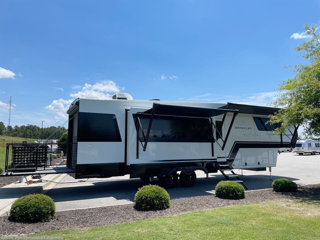 The Brinkley mid-profile Model Z fifth wheels bring you clean lines and an upscale look with plenty of style and exciting new features like the industry first brass plumbing connections. These units also feature an automotive grade front cap, plenty of exterior storage, exterior hot and cold showers, and wide stance leveling jacks for easy set up. Residential frameless windows provide a clean look and beautiful views, and ample electrical outlets and 6 USB/USB-C outlets allow all of your electronics and appliances to easily be used and charged.