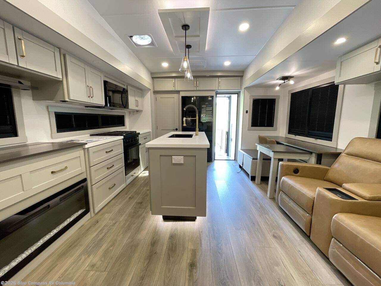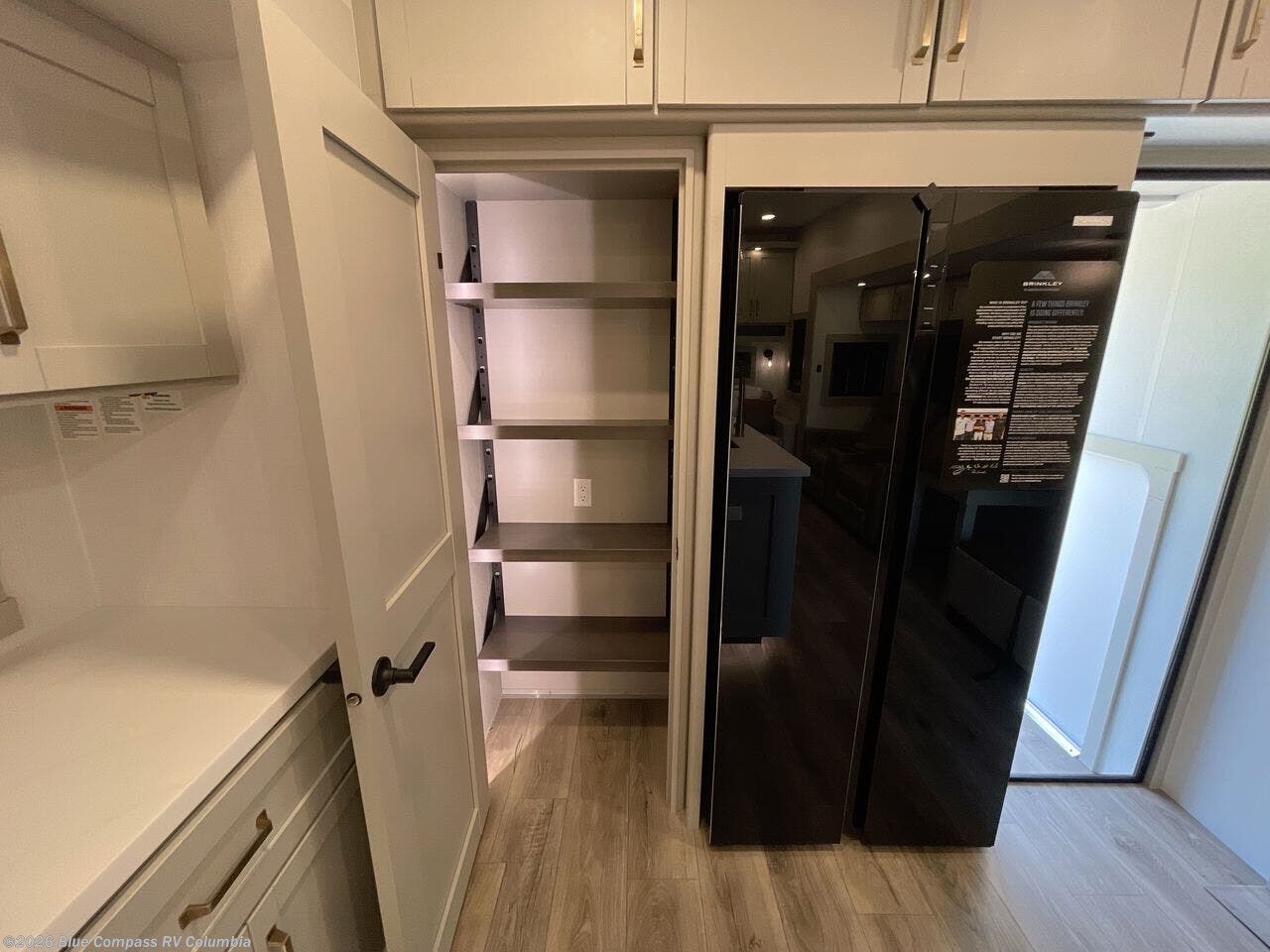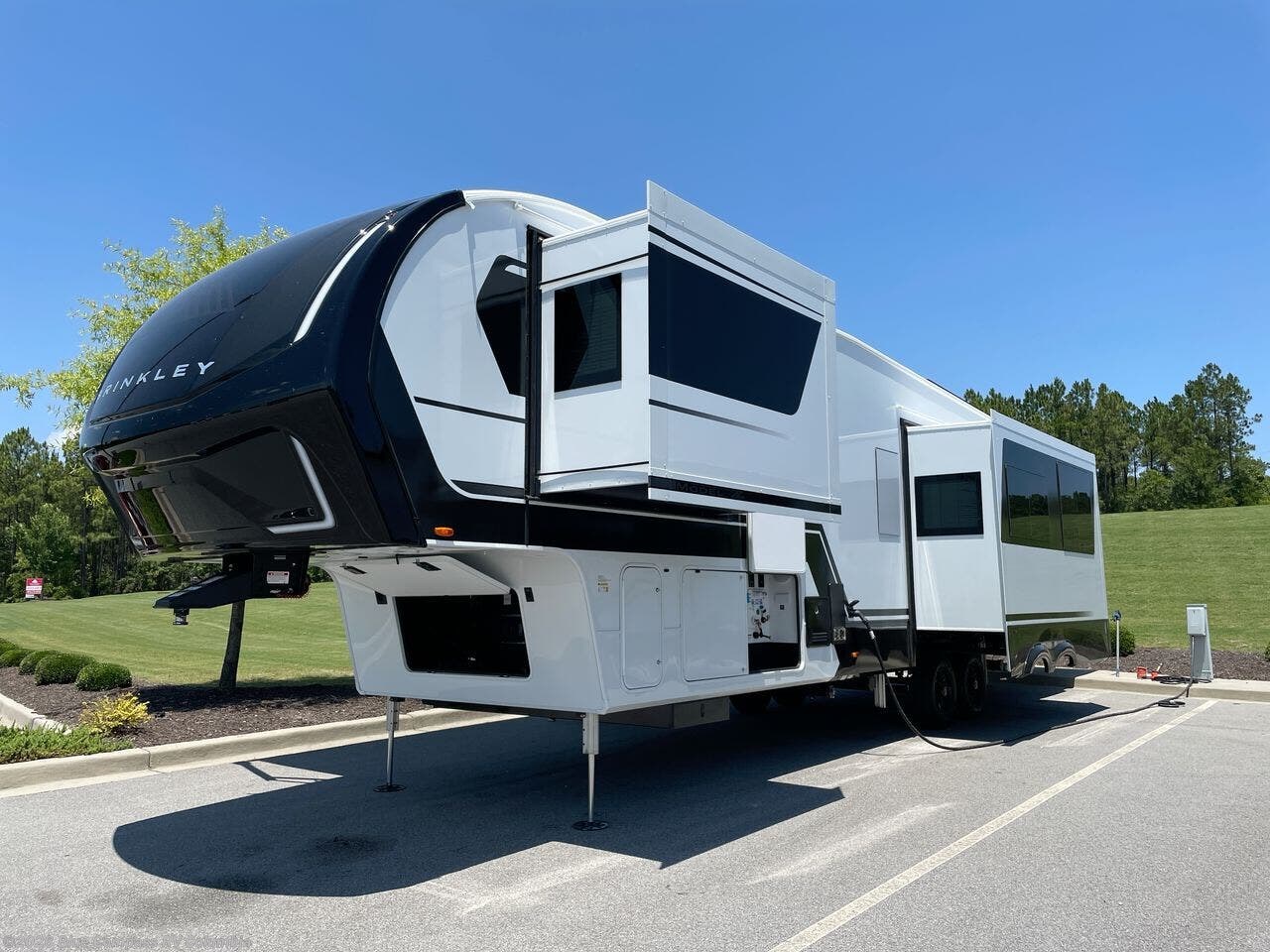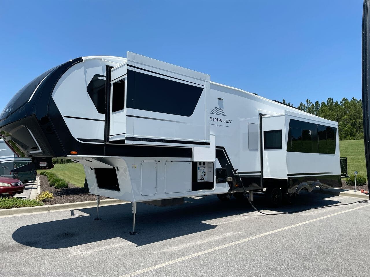 The Brinkley mid-profile Model Z fifth wheels bring you clean lines and an upscale look with plenty of style and exciting new features like the industry first brass plumbing connections. These units also feature an automotive grade front cap, plenty of exterior storage, exterior hot and cold showers, and wide stance leveling jacks for easy set up. Residential frameless windows provide a clean look and beautiful views, and ample electrical outlets and 6 USB/USB-C outlets allow all of your electronics and appliances to easily be used and charged.