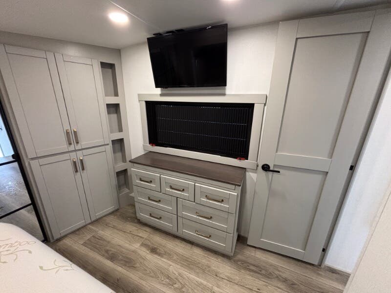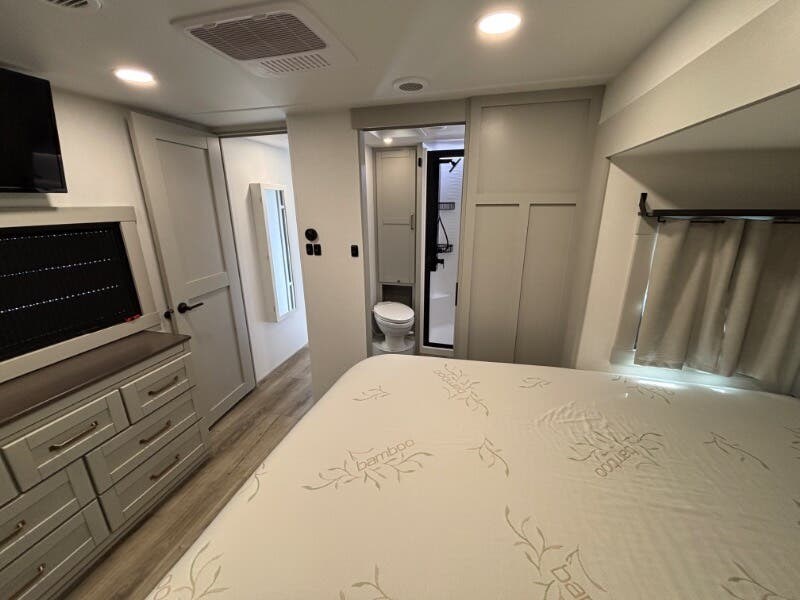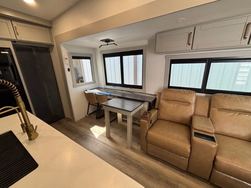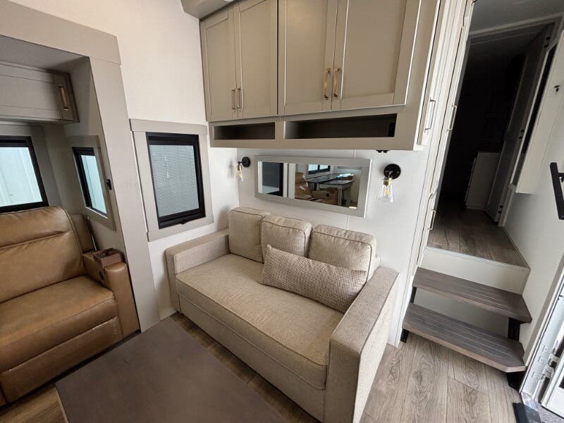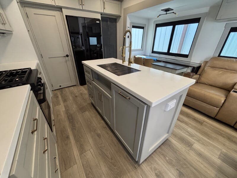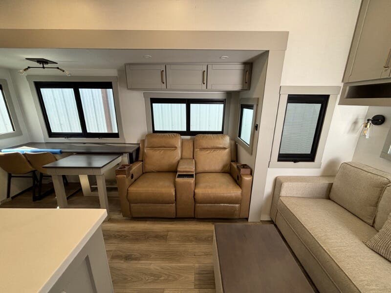 The 2025 Brinkley RV Model Z is a luxurious mid-size fifth wheel designed for those who seek comfort and versatility on the road. This model offers an impressive range of features to enhance your traveling experience. Exterior Features: - Under Coach Ground LED Lighting - Motion Sensor LED Scare Light ?? - Two Power Awnings with LED Lights - Pet Security Tether for your furry companions ?? - Telescoping Grab Handle for easy access - Keyless Entry for convenience - Floating Lighted Entry Steps - Double Deep Shoe Storage for organization Living Spaces: - Dimmable LED Lighting for ambiance - Square Euro Frameless Windows with Integrated Screens and Shades - Entertainment Center with Fireplace Spaceheater - Wall Hugger Theater Seating for relaxation - Tri-Fold Sofa - Maxxair Fan for ventilation Model 3515 Flex Space: - Separate Entry for flexibility - Office / Mud Room / Laundry Room - Adjustable Height Desk - Washer Dryer Prep for laundry needs Model 3610 Flex Space: - Sofa Bed plus Trundle Bed and Flip Bunk - Pullout Office Desk for working remotely - 50-inch Smart TV for entertainment ?? Dining: - Floating or Removable Table with Table Silverware Drawer - Premium Cabinetry with Soft Close Doors and Drawers - 7-foot Tall Pantry with Appliance Outlet - Dual Pullout Trash Bins for convenience - Pet Feeder with Removable Bowls ?? - Mood Lighting on Soffit and Island Base - Solid Surface Countertops with Tile Backsplash - Farmhouse Sink with Roller Cover - 12v 16cf Refrigerator and 30-inch Residential Microwave - Maxxair Fan with Rain Sensor - Outdoor Cooking Package for alfresco meals Electronics: - Systems Center operated by Smart-Command App - Backup Camera Wireless Monitor for safety - TPMS Wireless Display for tire monitoring - USB and USBC High Speed Charging ports - Winegard Air 360+ Antenna with WiFi Booster - 50-inch Smart TV plus Outdoor Tuned Speakers for entertainment - Rockford Fosgate Bluetooth Stereo for superior sound ?? Sleeping Quarters: - Bedroom Dimmable Lights for a relaxing atmosphere - Choice between Queen Bed (60x80) or King Bed (70x80) with 9-inch Memory Foam Mattress - Comforter and 5-Pillow Package included - Bedside Shelves and Outlets with USB and USBC - 32-inch Smart TV in the bedroom - Dual Sconce Reading Lights - Underbed Storage with Motion Lighting and Drawers - Dresser Drawers and Walk-In Closet with LED Lighting - Mirrored Sliding Doors with Washer Dryer Prep Bathroom: - 79.5-inch High Ceiling for spaciousness - Recessed Backlit Medicine Cabinet - Oversized Linen Closet - Solid Surface Lavatory Top with Black Tuff Coat Stainless Steel Sink - Sliding Glass Shower Door with Neon COB/Dotless Shower Lighting - Residential Shower System with multiple sprayers and Shower Seat Prep ?? - Porcelain Toilet for comfort - Maxxair Fan with Rain Sensor Mechanicals and Build: - Dual Group 27 Battery Box with 370w Solar Panel (740w Ready) - 50-Amp MPPT Solar Controller, Inverter Prep, and Lithium Ready - 5.5k Generator Prep with Two 30# LP Bottles - 35k High Capacity Furnace and multiple AC units - Brass Plumbing Fittings with Tankless On Demand Hot Water - Two Outdoor Showers with Hot Cold options - CURT Helux King Pin and Monotube Chassis with CURT Touring Coil Suspension System - Heavy Duty Axles, 8000# Leaf Springs, ABS Brakes - 17.5-inch Aluminum Luxury Wheels with H-Rated 16-Ply Tires - Counteract Tire Balancing Beads and Banded Tire Pressure Monitoring System - 2-inch Receiver Hitch with Reinforced Walkable Roof - Backup Camera Wireless Monitor and Six Point One Touch Leveling - Heated Insulated Storage with Motion Sense Light - Storage Compartment Receptacles with Baggage Slam Latch Doors The Brinkley RV Model Z truly stands out with its attention to detail, numerous features, and flexibility for diverse travel needs. Whether you're on the road full-time or just for the weekend, this fifth wheel is equipped to deliver both comfort and adventure.