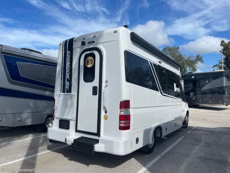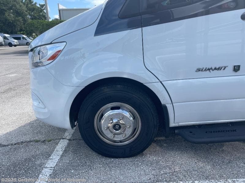 Each one of these Chinook RV Summit Class B+ diesel motorhomes are powered by a Mercedes-Benz Sprinter chassis with a 4 cylinder twin-turbo diesel engine and 9-speed transmission to power your adventures. You'll appreciate the Driver Convenience Package and safety features that include collision warning, a lane keeping system, and side-wind stabilization for a smooth drive. There is also a 4-point leveling system and a Smart Plug with a detachable 30 Amp power cord when you're ready to set up camp. Inside, the stylish interior includes soft touch, padded vinyl finishing, solid surface countertops, shower, and porcelain toilet, plus many more comforts!
