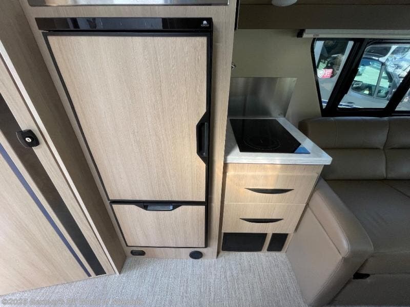 Hit the road in true luxury with this motorhome! The separated bathroom makes it convenient for one to use the private toilet and sink while another cleans up in the 32" x 29" shower. There is also a wardrobe to keep your towels close by. This model includes a powered single sofa and a booth dinette for seating and sleeping space. You can prepare delicious home cooked meals with a single induction cooktop which can be removed for exterior cooking, a Norcold/Thetford 6.2 cu. ft. electric refrigerator to store any leftovers, and microwave to heat them up.