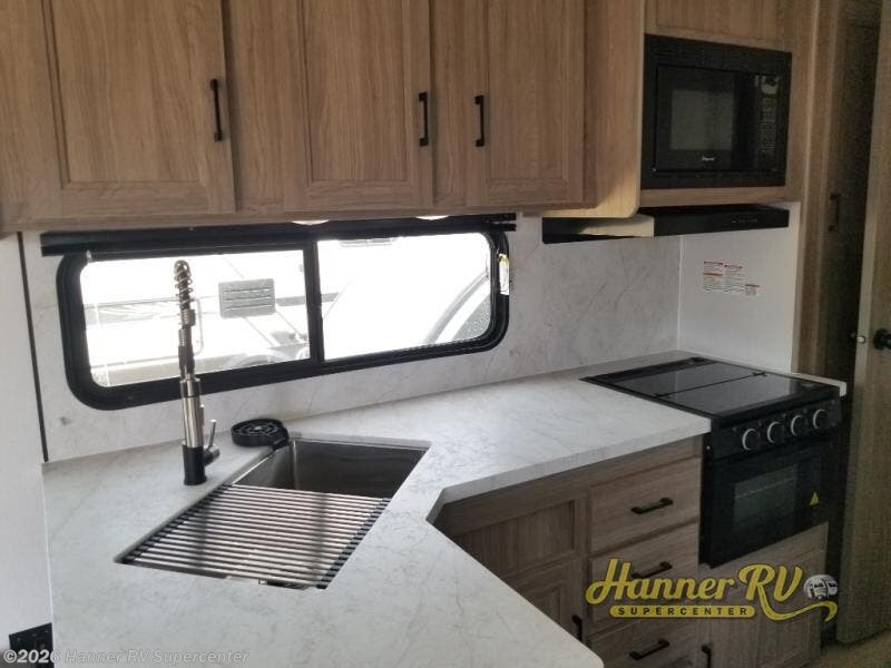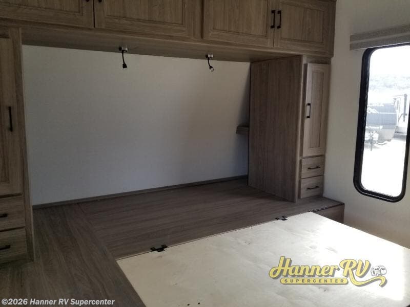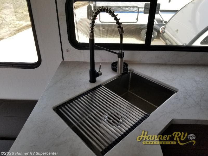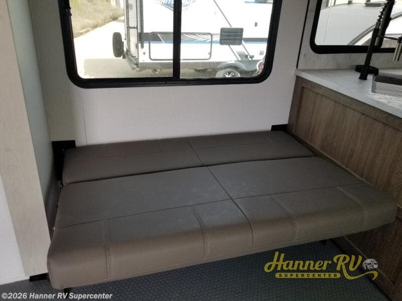 Looking for a spacious travel trailer that you can carry your toys to and from the off-road park and stay overnight in comfort? Well this might just fit the bill! You will appreciate the 15' 7" cargo space for all your toys, and the large slide out with a flip-up slide floor door will provide extra interior space. The chef of the family or group can prepare dinner on the three burner cooktop or use the microwave, and the double entry bath includes plenty of counter space that will come in handy when you're getting ready each day. This trailer also includes dual entry doors; one into the garage area and one into the front master bedroom with a king bed for your convenience. You will also find a rear pull down screen, pull-down roller night shades to be able to sleep in late, and a solar package to help you stay off-grid.