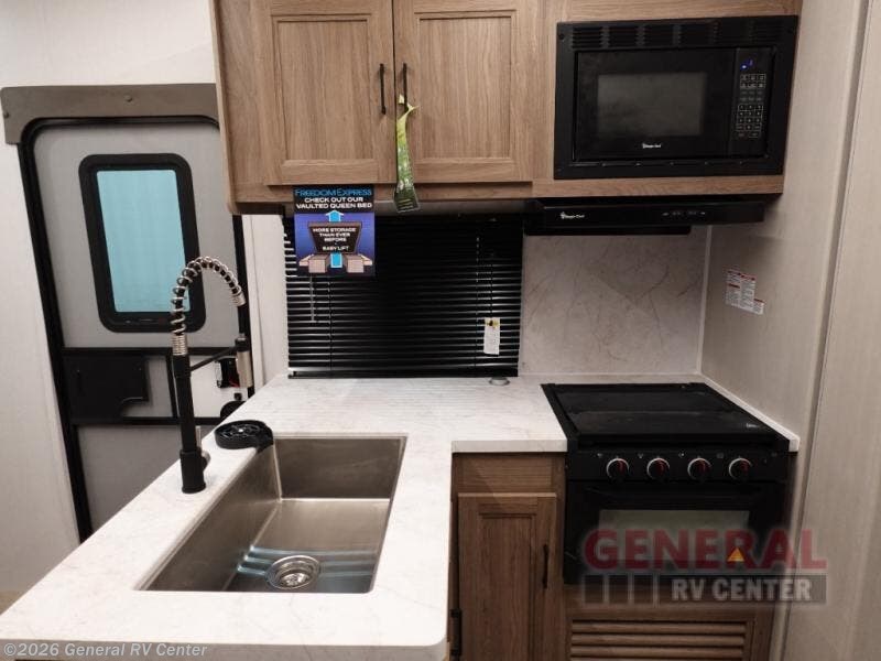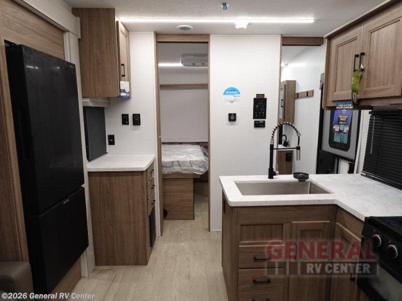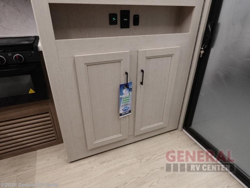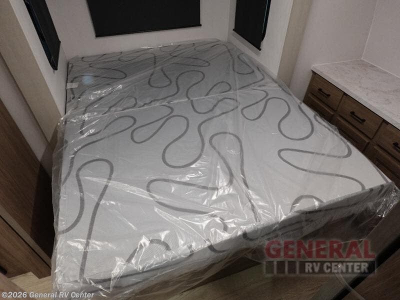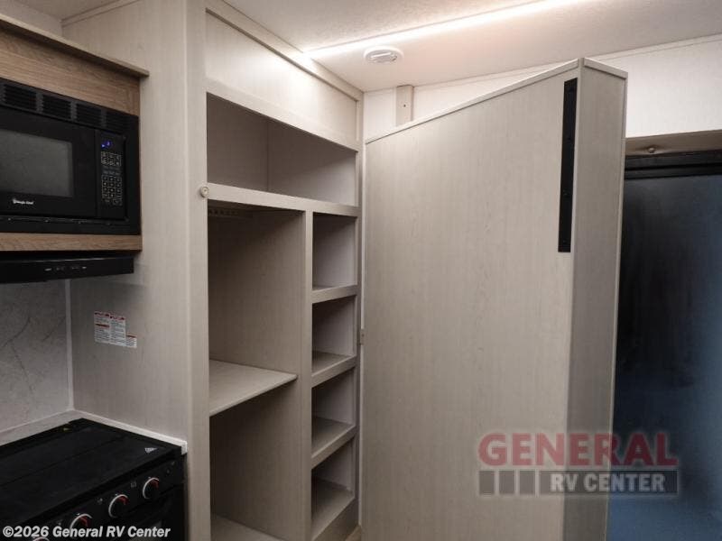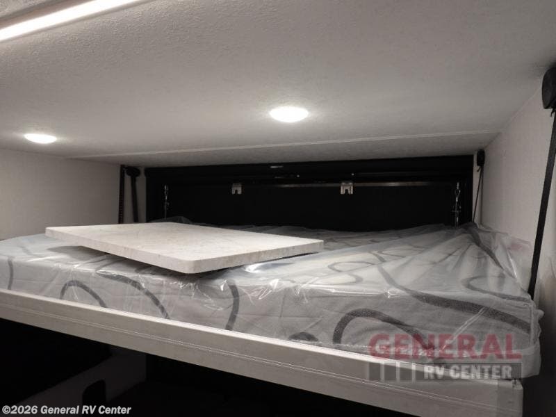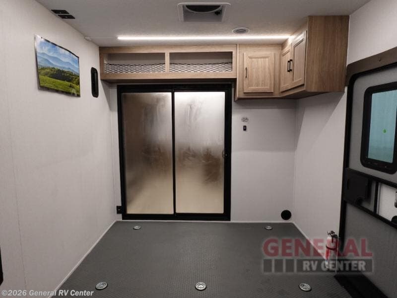 Looking for 13' of toy parking space, and sleeping space for six? You are going to love this model! You will appreciate the large cargo area for all your toys, and the extra sleeping space for family and friends with the roll over sofas converted and the overhead queen bed lift dropped down in the garage area. And the queen bed slide in the front master bedroom will be perfect for the owners. The chef of the family or group can prepare dinner on the three burner cooktop or use the microwave, and the double entry bath is conveniently located just inside the main side entry and includes a nice size shower, vanity with a sink and an overhead medicine cabinet. This toy hauler also includes dual entry/exit doors with the second one into the garage area. You will also find a rear pull down screen in the garage, pull-down roller night shades to be able to sleep in late, and a solar package to help you stay off-grid.