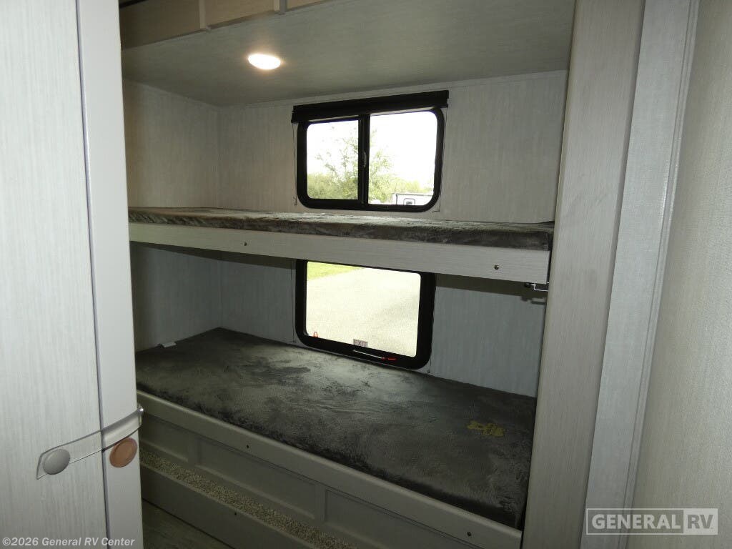 Experience the perfect blend of comfort and adventure with the 2025 Coachmen Apex Ultra-Lite 241BHS. This travel trailer is your ideal companion for family getaways, offering a spacious and thoughtfully designed interior that comfortably sleeps up to six. At the heart of this RV is a cozy center kitchen, equipped with a three-burner cooktop and a mid-size electric refrigerator, making meal preparation a breeze. Enjoy your culinary creations at the booth dinette, which easily converts into an extra sleeping space, perfect for additional guests or family members. The Apex Ultra-Lite 241BHS features a welcoming center living area, complete with a flat-screen TV setup, ensuring entertainment for everyone. The rear of the trailer houses a convenient bath with a 30x36 shower, providing a refreshing retreat after a day of exploration. The bunkhouse design includes two flip-up bunks, offering both flexibility and comfort for younger travelers. Up front, a queen bed with super storage and dual wardrobes ensures you have ample space for all your belongings. With its powered retractable awning, two slides, and nitrogen-filled radial tires, this RV is ready for any adventure. Its lightweight design and robust construction make it easy to tow, while the 50-gallon fresh water capacity ensures you can stay off the grid longer. Visit your nearest General RV dealership to explore this fantastic model and start your journey today!