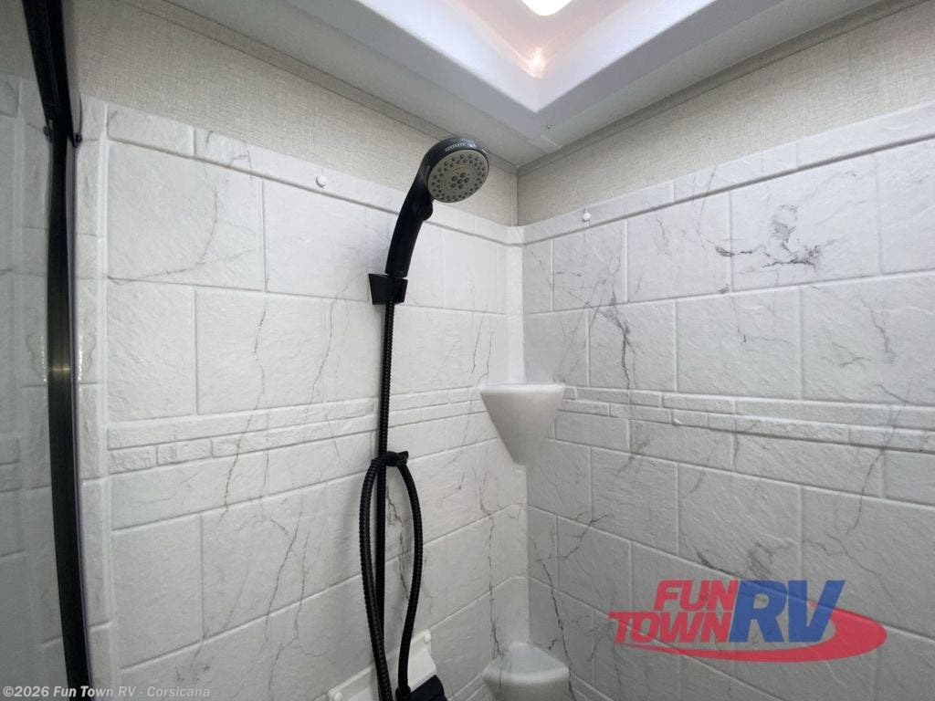 Step outside and enjoy the fresh air on our covered patio, complete with a refrigerator and optional L-shaped sofa, which is the perfect place to relax and unwind after a long day of adventure. Inside, the kitchen/living room area will make you feel an at-home experience, featuring overhead cabinets, an entertainment center, theater seating, a free-spanning table, a kitchen island, a microwave, a refrigerator, and a pantry. Perfect for cooking up a storm, entertaining friends and family, or simply relaxing and enjoying the comforts of home. The full bathroom is a spacious oasis, complete with a shower with a seat, a linen closet, and more. Plus, with a front bedroom featuring a king bed, dresser, washer and dryer prep, and a large wardrobe, you'll have the perfect place to rest and recharge after a long day of adventure. With two entry/exit doors and a massive 20’ awning, you'll have easy access to the RV and plenty of shade and protection from the weather.