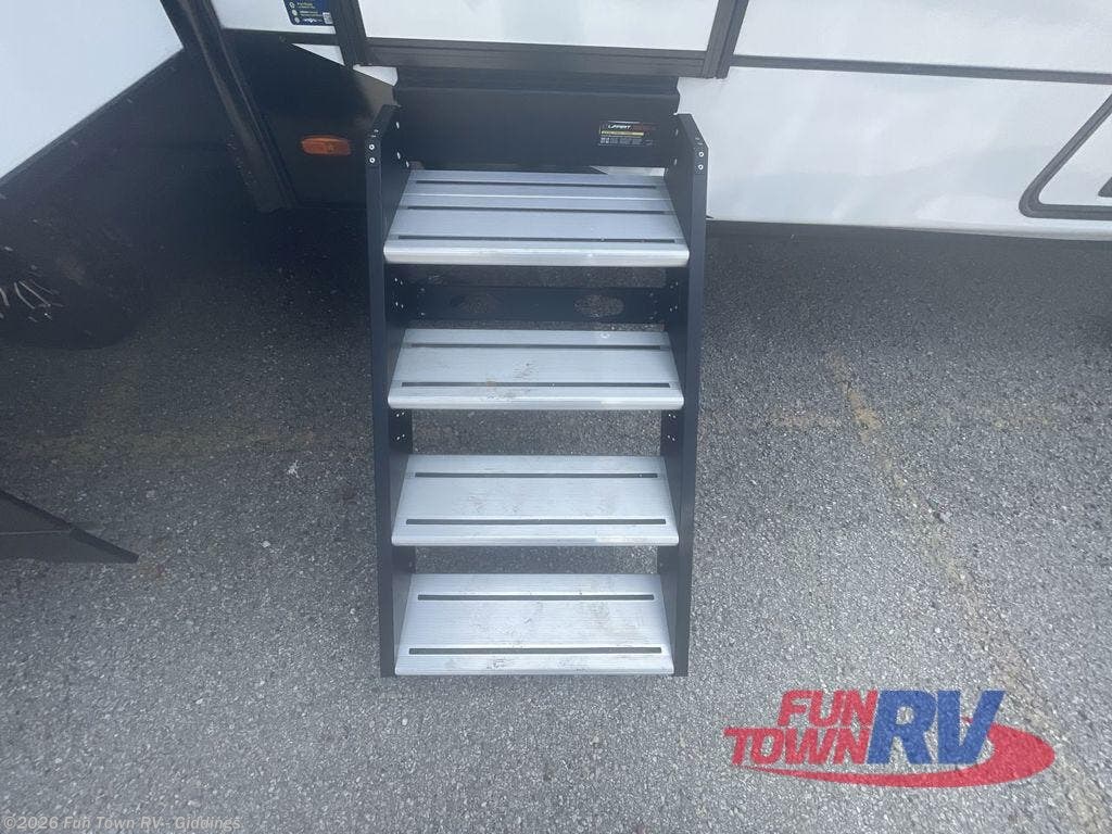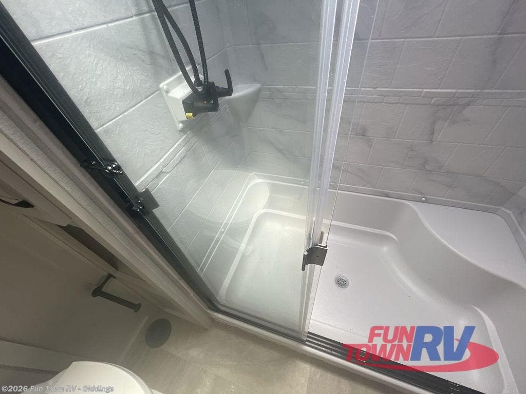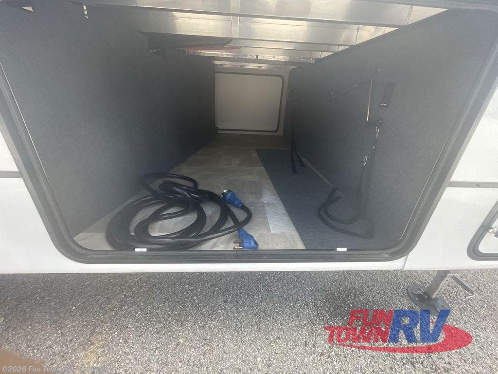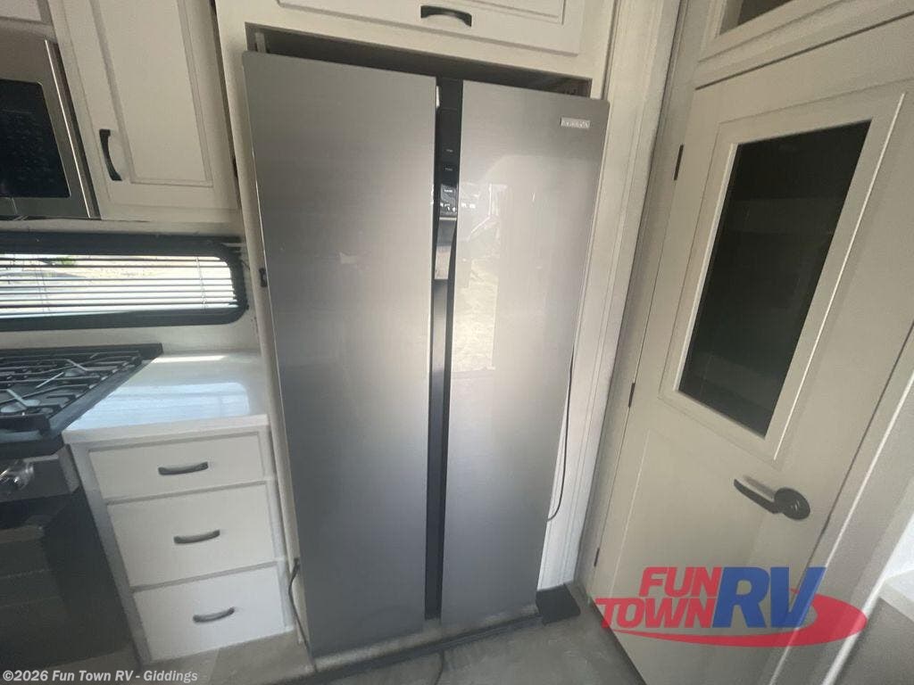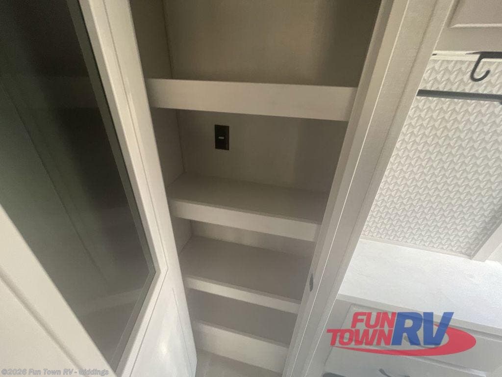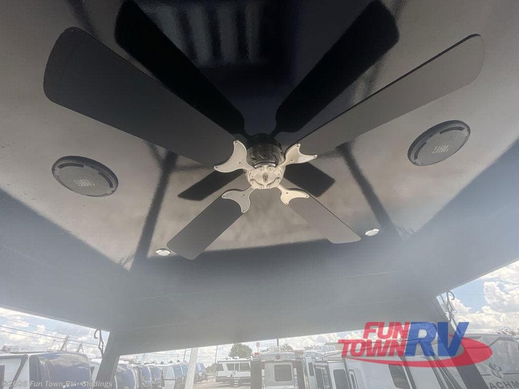 Step outside and enjoy the fresh air on our covered patio, complete with a refrigerator and optional L-shaped sofa, which is the perfect place to relax and unwind after a long day of adventure. Inside, the kitchen/living room area will make you feel an at-home experience, featuring overhead cabinets, an entertainment center, theater seating, a free-spanning table, a kitchen island, a microwave, a refrigerator, and a pantry. Perfect for cooking up a storm, entertaining friends and family, or simply relaxing and enjoying the comforts of home. The full bathroom is a spacious oasis, complete with a shower with a seat, a linen closet, and more. Plus, with a front bedroom featuring a king bed, dresser, washer and dryer prep, and a large wardrobe, you'll have the perfect place to rest and recharge after a long day of adventure. With two entry/exit doors and a massive 20’ awning, you'll have easy access to the RV and plenty of shade and protection from the weather.