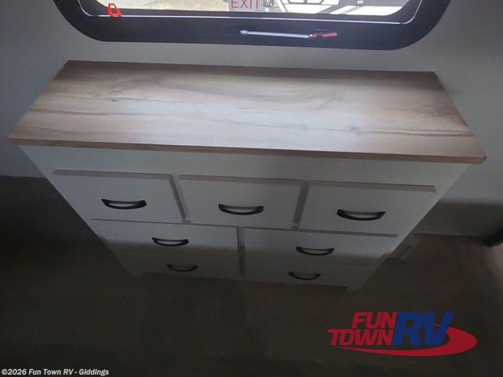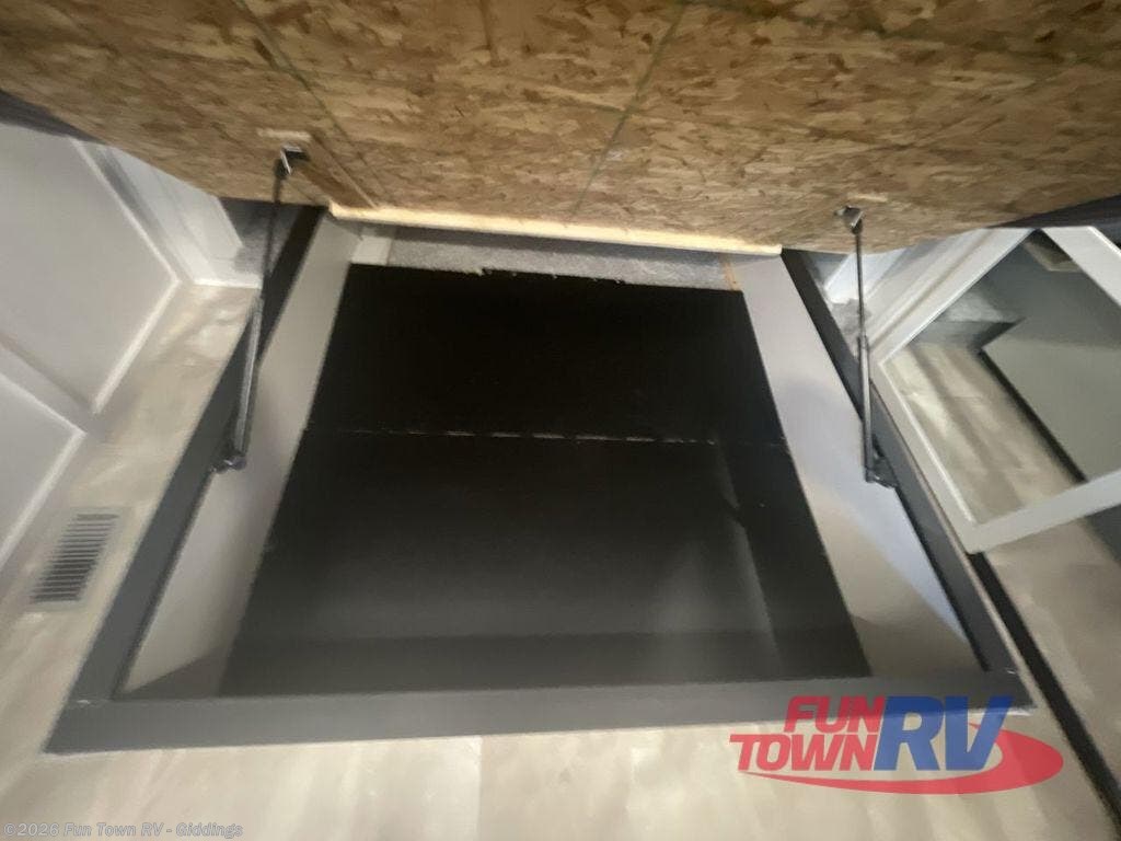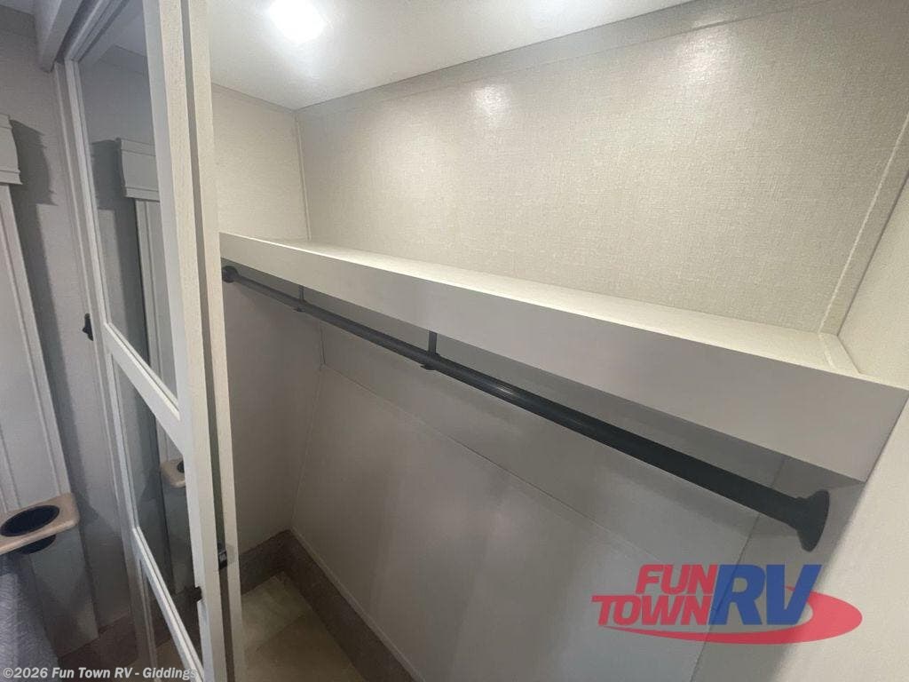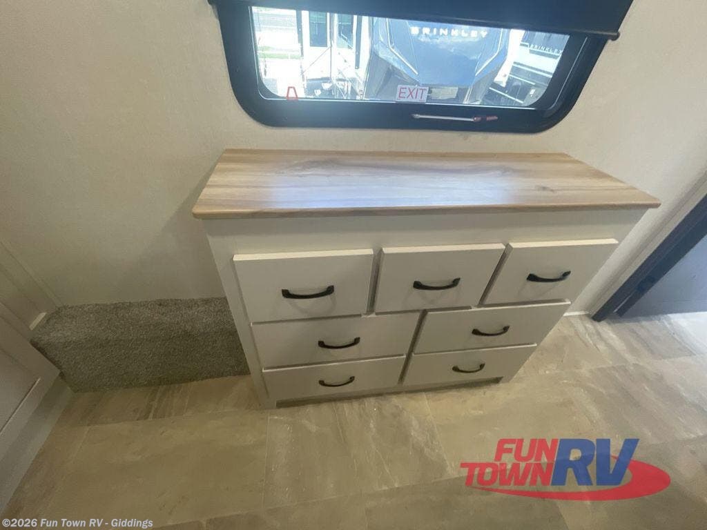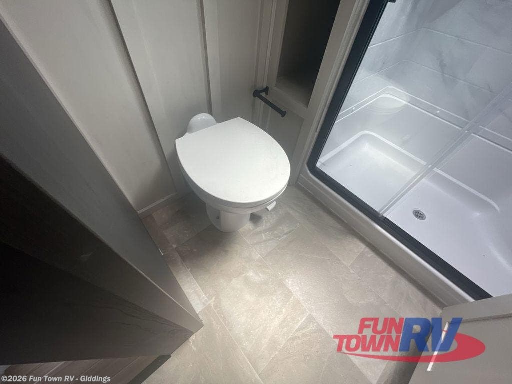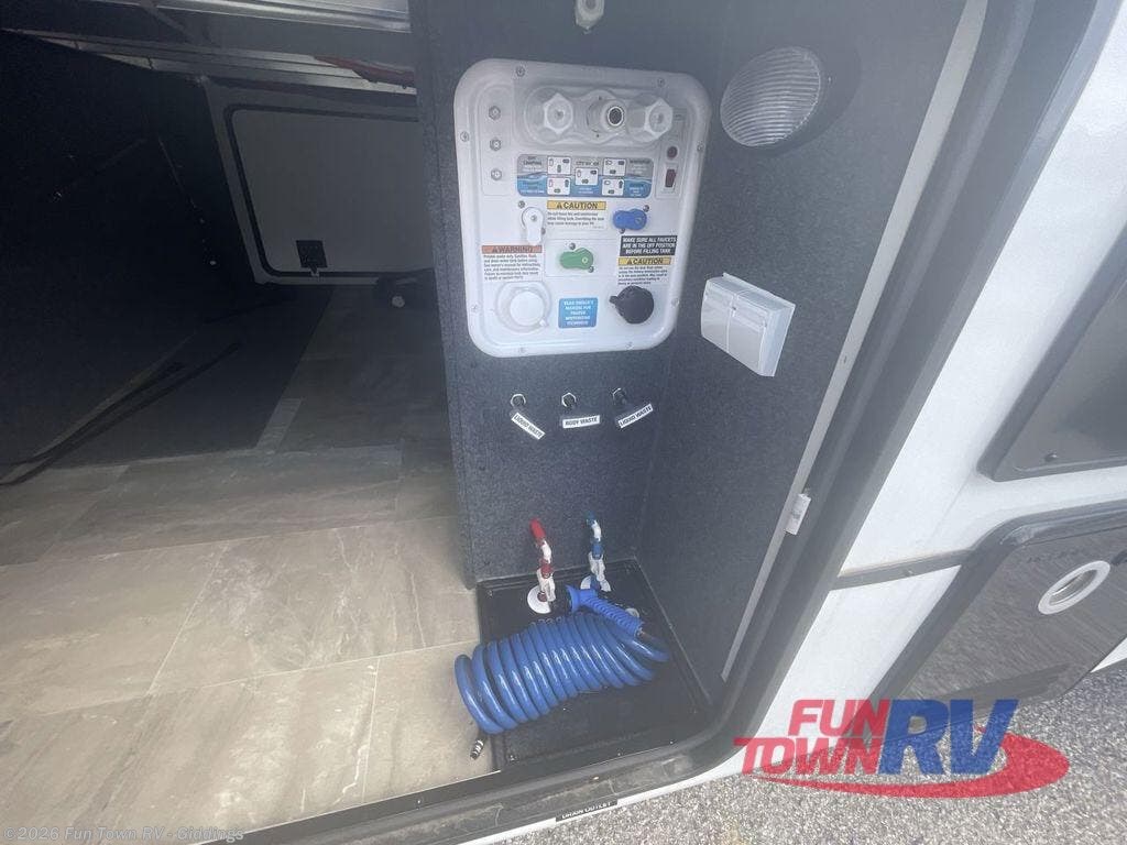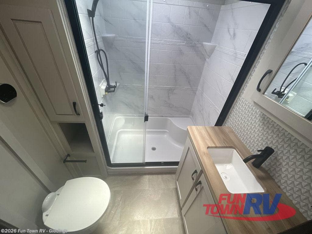 Step outside and enjoy the fresh air on our covered patio, complete with a refrigerator and optional L-shaped sofa, which is the perfect place to relax and unwind after a long day of adventure. Inside, the kitchen/living room area will make you feel an at-home experience, featuring overhead cabinets, an entertainment center, theater seating, a free-spanning table, a kitchen island, a microwave, a refrigerator, and a pantry. Perfect for cooking up a storm, entertaining friends and family, or simply relaxing and enjoying the comforts of home. The full bathroom is a spacious oasis, complete with a shower with a seat, a linen closet, and more. Plus, with a front bedroom featuring a king bed, dresser, washer and dryer prep, and a large wardrobe, you'll have the perfect place to rest and recharge after a long day of adventure. With two entry/exit doors and a massive 20’ awning, you'll have easy access to the RV and plenty of shade and protection from the weather.